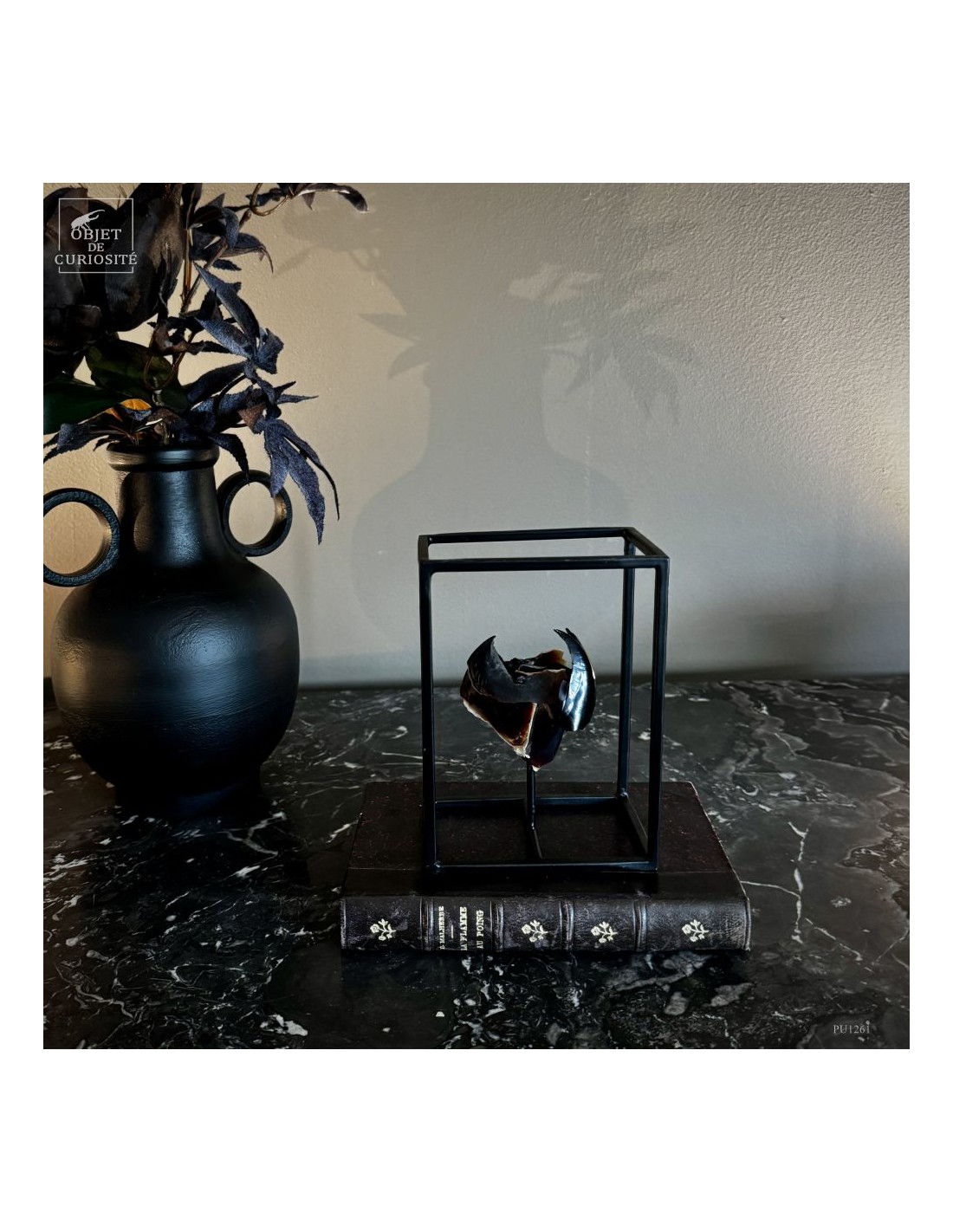Displayed here in a metal cage, this anatomical piece becomes a fascinating natural curiosity.