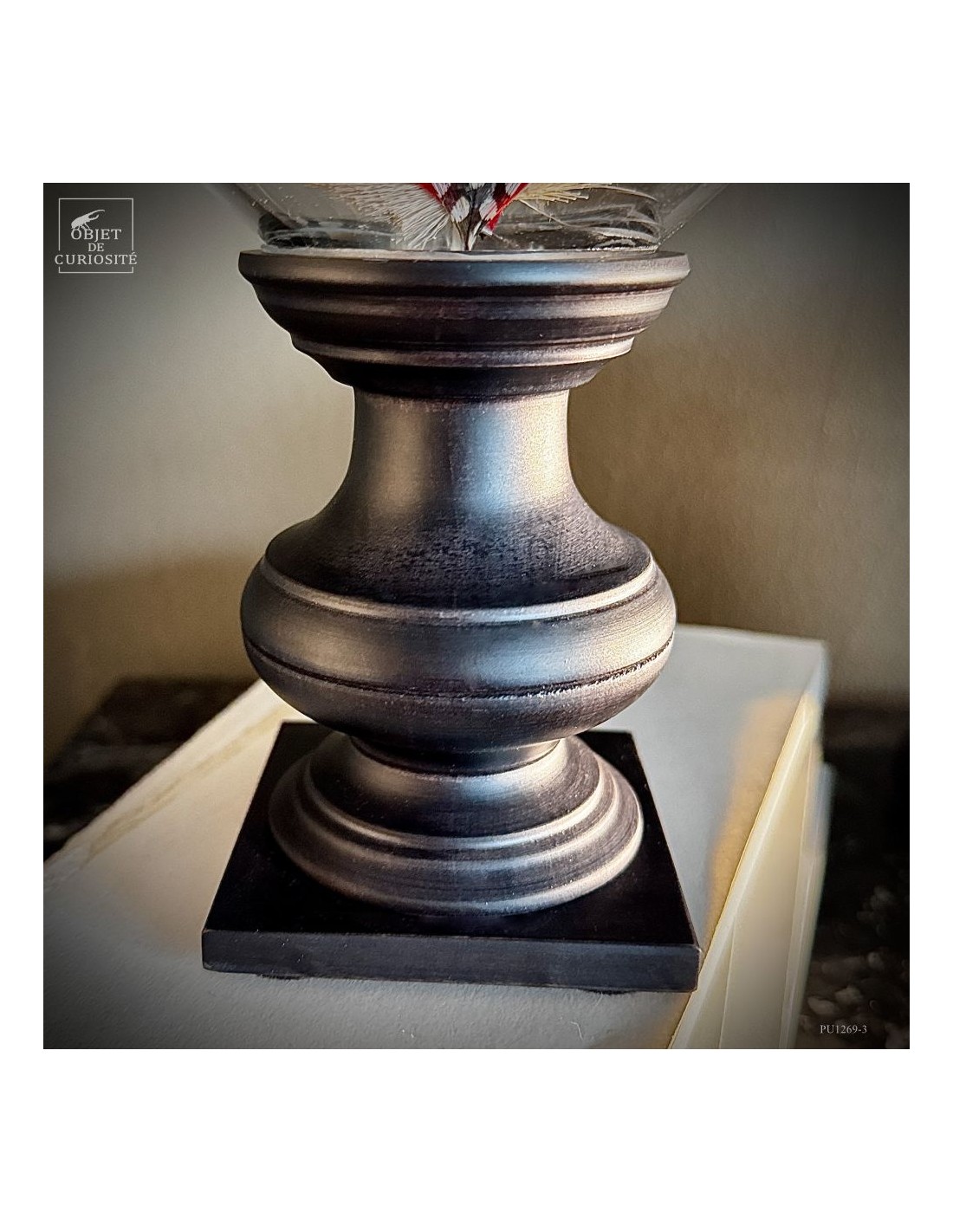 Displayed under an ovoid glass dome, these pieces are the meeting point between fashion craftsmanship and decorative curiosity — a poetic nod to an era when elegance was worn right up to the top of one’s head.