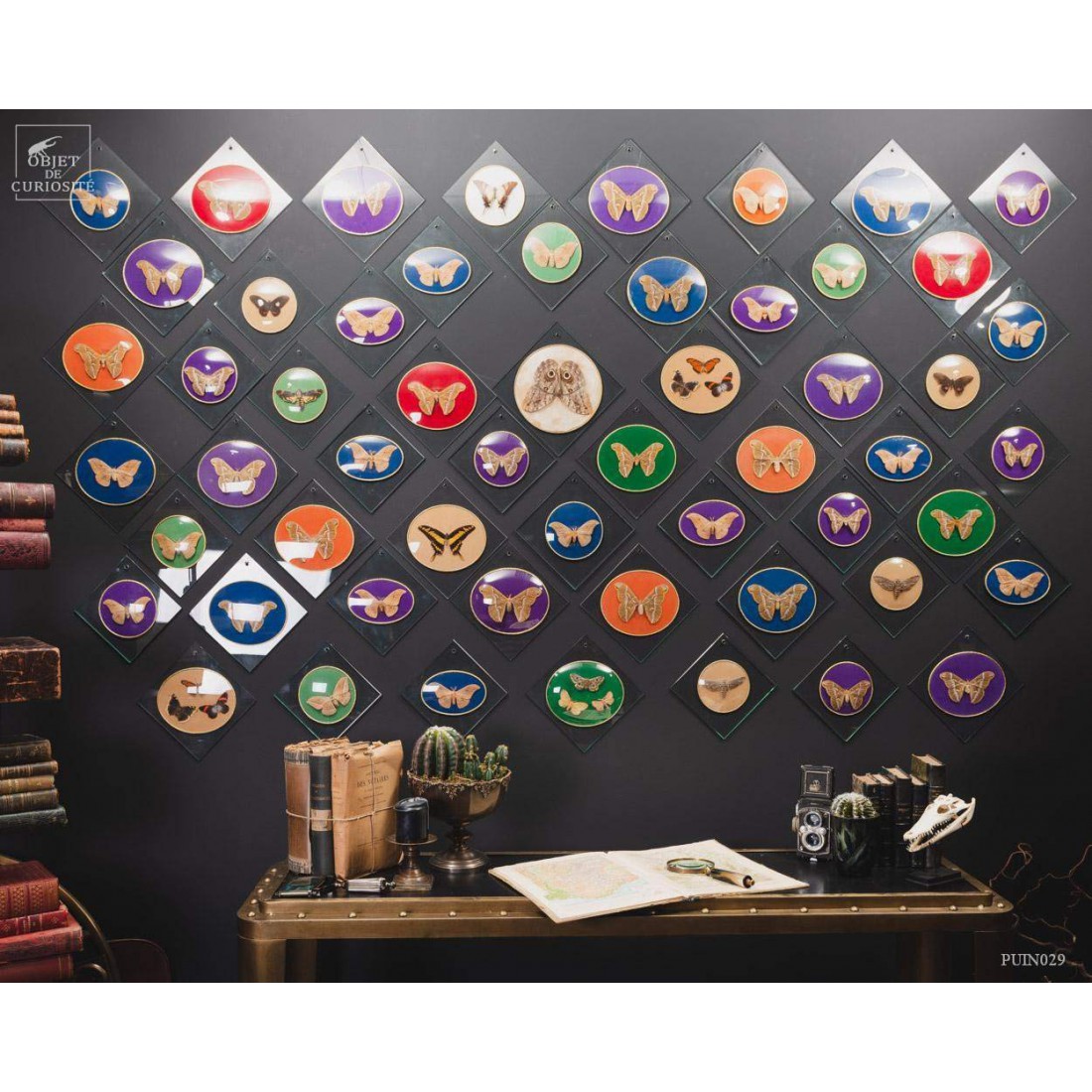 Between 1970 and 1978, an Italian entomologist of Torino, passionate about framing, transformed part of his butterfly collection into entirely glass frames (convex glass on flat glass). This impressive collection comes in strong colors, emblematic of 50 years ago... But including this collection of 56 frames in a decor today will add a colorful and very graphic touch (more pieces are available, or a smaller selection too).