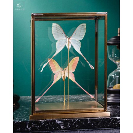 If there are bright colors butterflies, this species come from the Chinese mountains, Actias Dubernardi, proves that colors pastels can be remarkable. As indeed it is a single species: the male being yellow and pink, the female pale green. These very long moths live in the pine tree forests on the height of Yunnan, to Laos.They need 85 days from the egg up to the adult, but the adult lives only 10 days! A short-lived beauty, luckily, easy to breed.