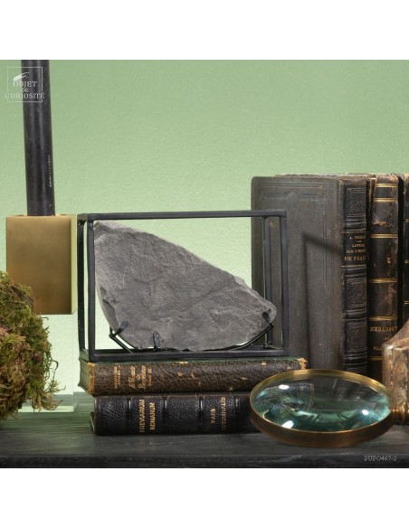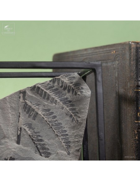 This fossil PECOPTERIS POLYMORPHA, dating back to the Carboniferous about 300 million years ago, was discovered in the mines of Montceau-les-Mines, France. These mines, formerly dedicated to coal mining, have preserved exceptional remains of ancient flora due to favorable geological conditions. PECOPTERIS POLYMORPHA belongs to a genus of ferns characteristic of this period, highlighting the abundance of plant life in swampy environments. Interesting contrast between the past of plant life and the modernity of its display in a rectangular wire cage. Part of a collection of the 70s, identified at that time.