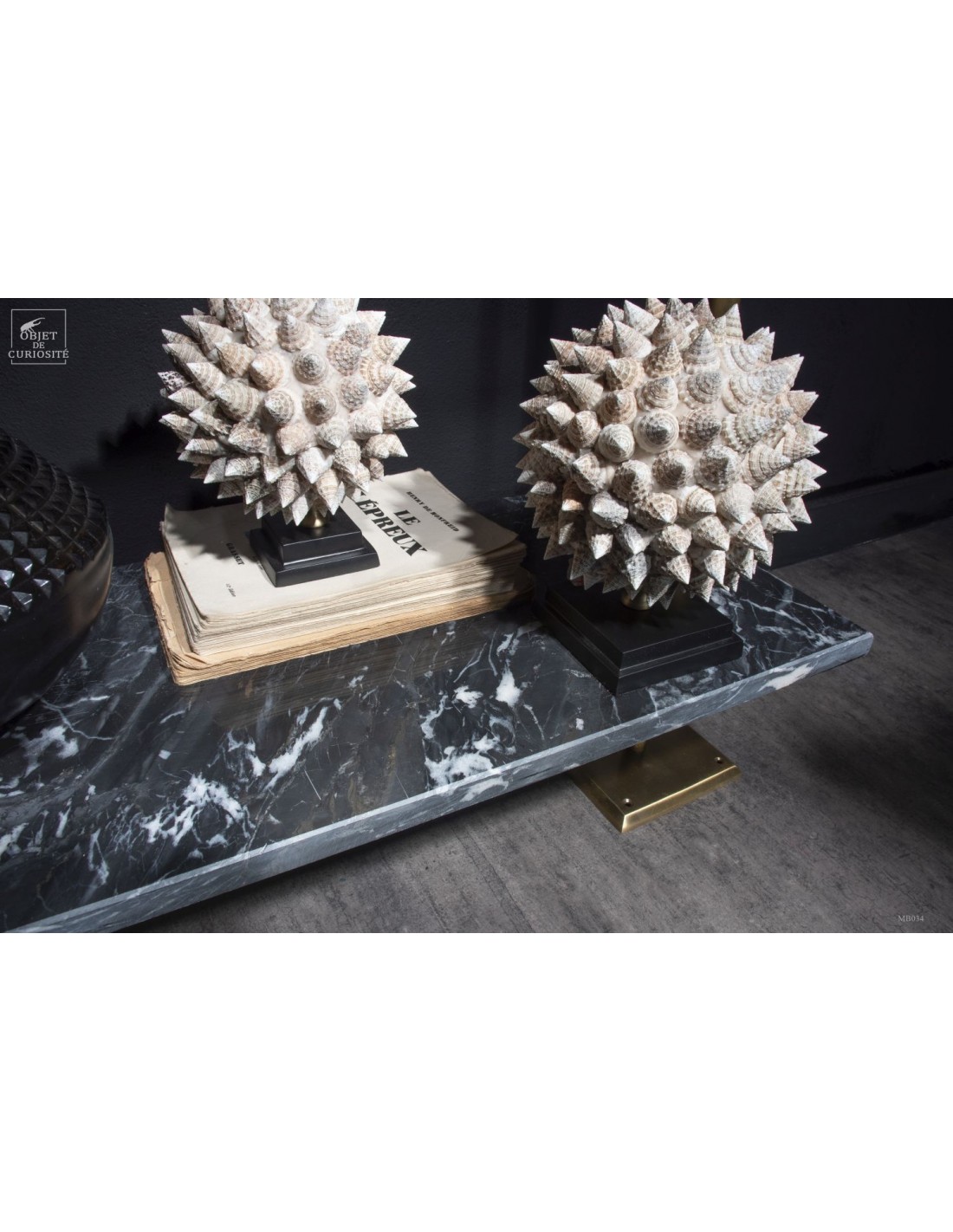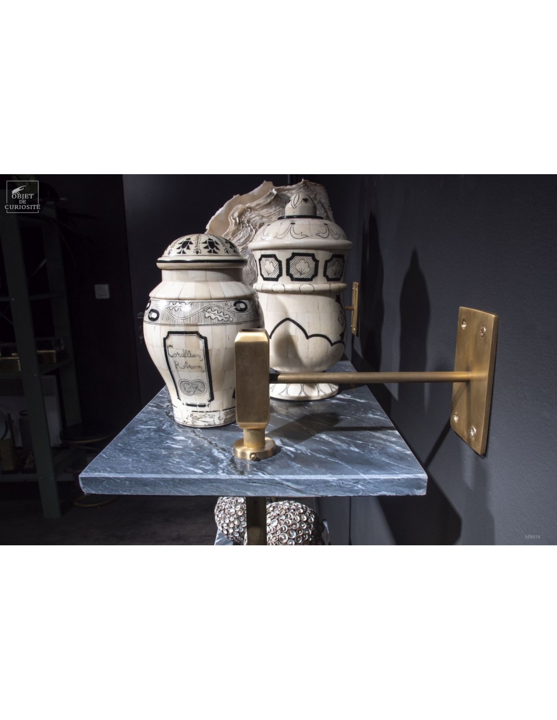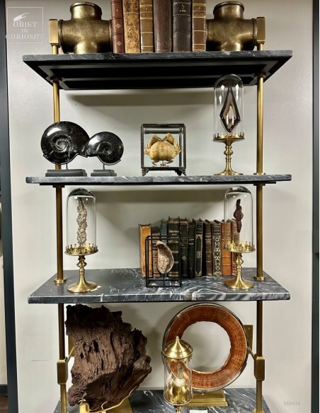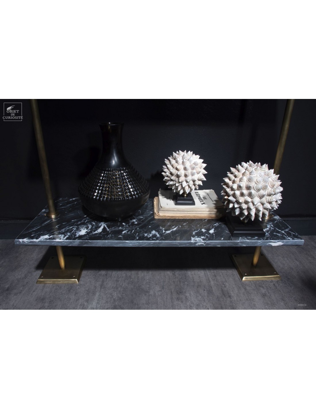 Black and white marble with antic brass. The very simple line of this adjustable library keeps it elegant and discrete. Each marble shelf is 76cm Long X 28cm large, and can be adjusted every 5cm according to the size of the treasures you want to display. The only limit in total height will be the ceiling: why not a library of 5 meters high? Or starting above a counter?
