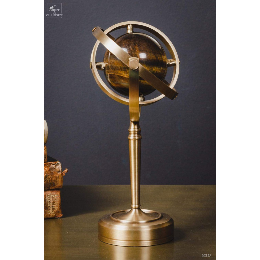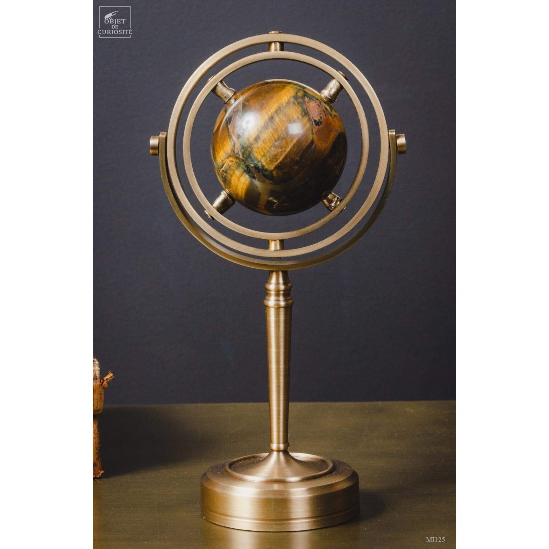 Tiger Eye ball, on spinning brass stand