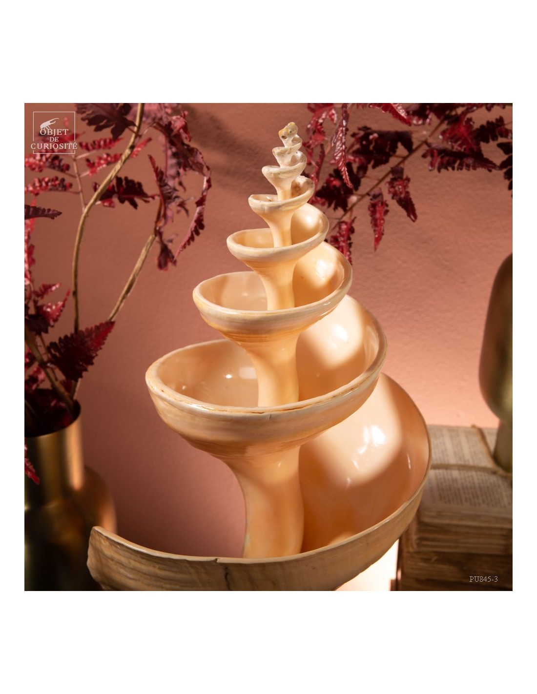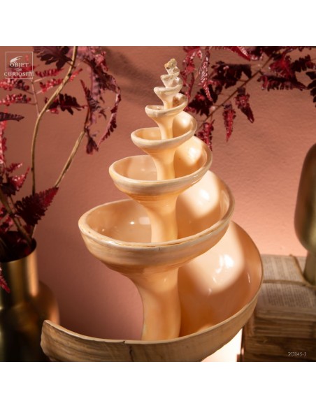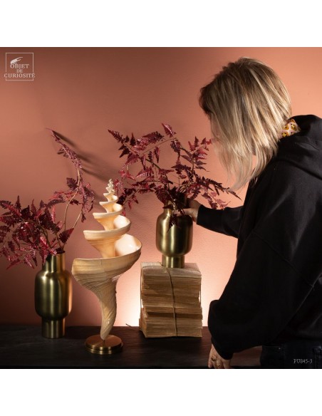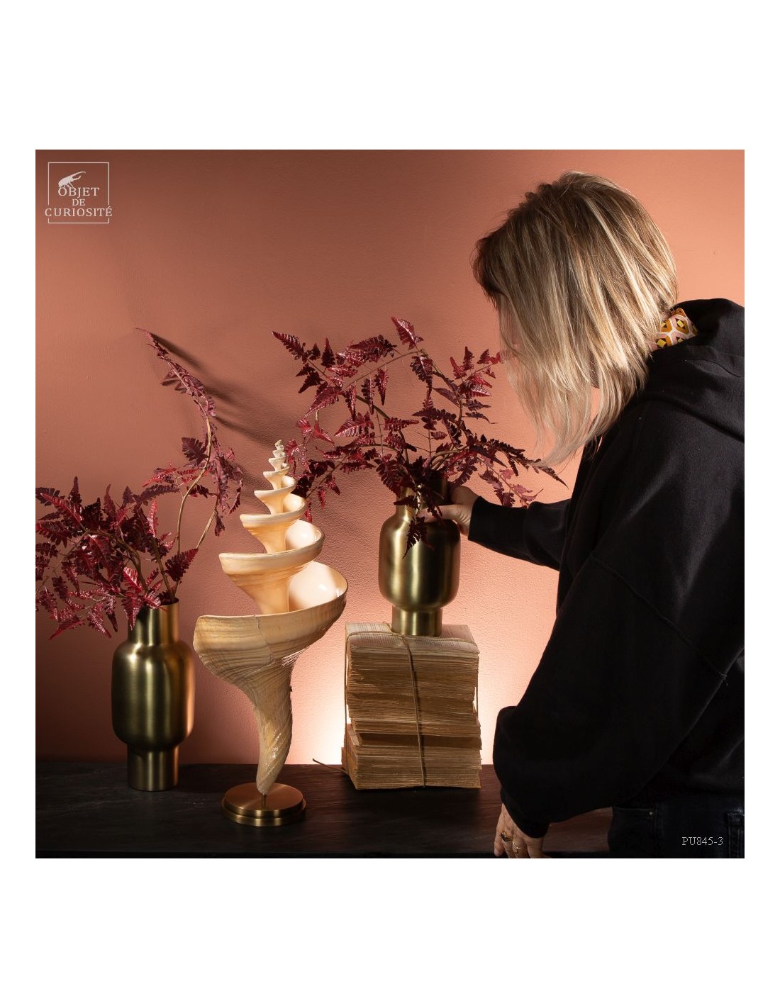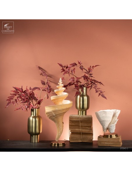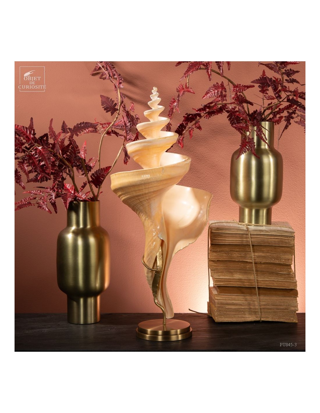 Both natural and man made, this shape was obtained by cutting a part of the shell of a Syrinx Aruanus shell, largest shell in one part of the world. It is the biggest "snail" on earth, more exactly underwater! This enormous marine gastropod (up to 18Kg) has a completely yellow body. This spiral is the natural form of this shell, but here it has been highlighted. Rare work.