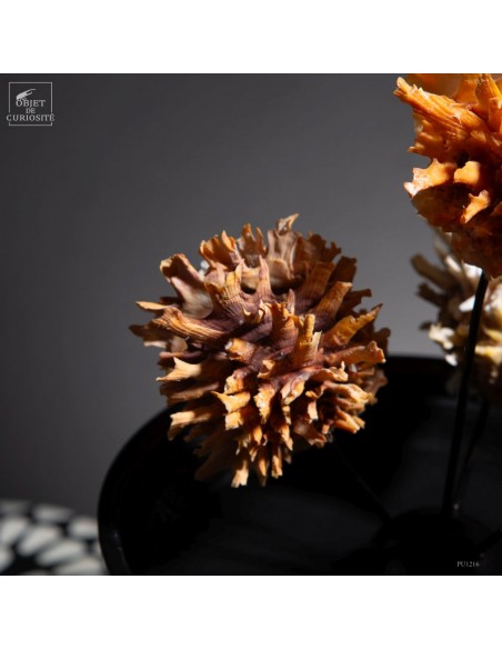Our unique presentation, under a bubble glass dome, highlights these four Chama shells arranged like a marine bridal bouquet.