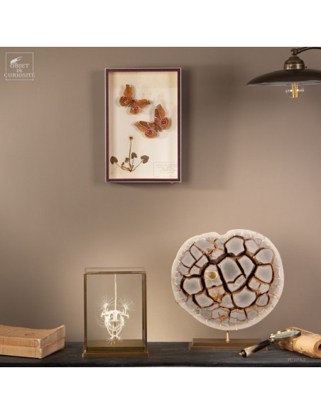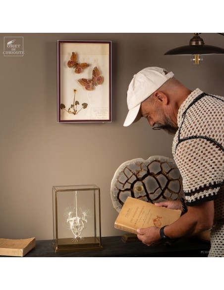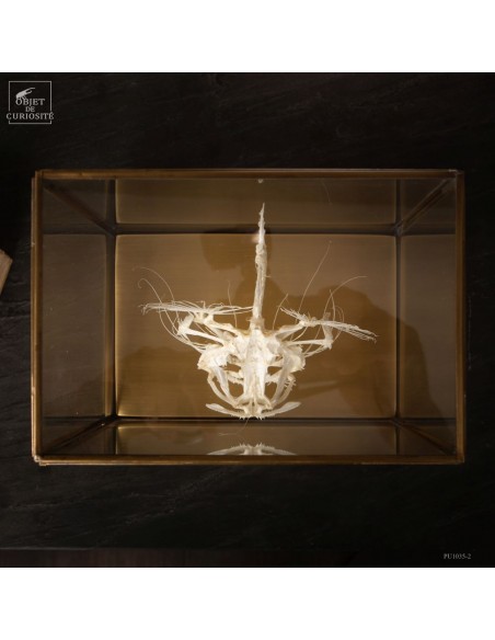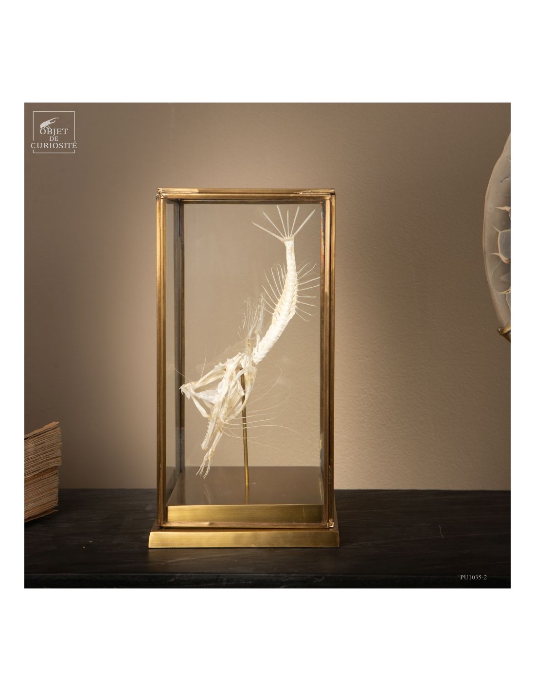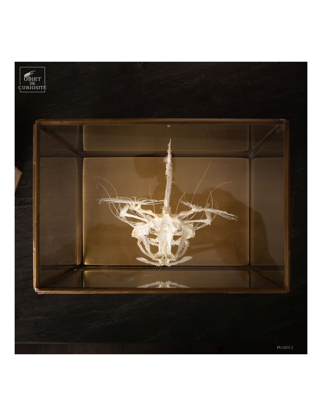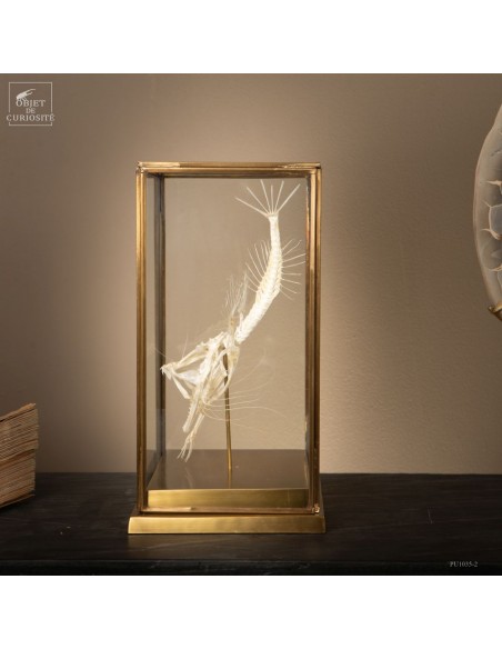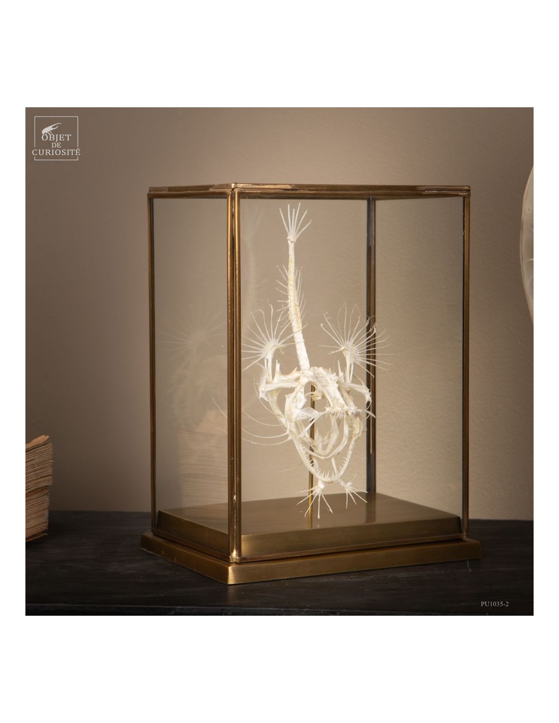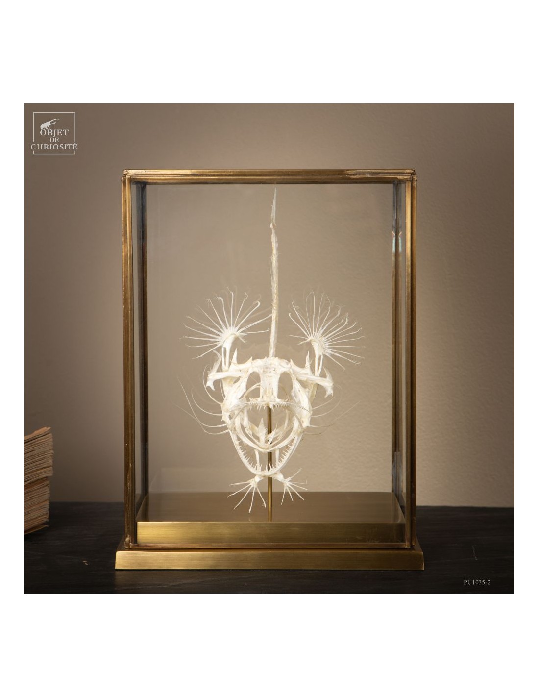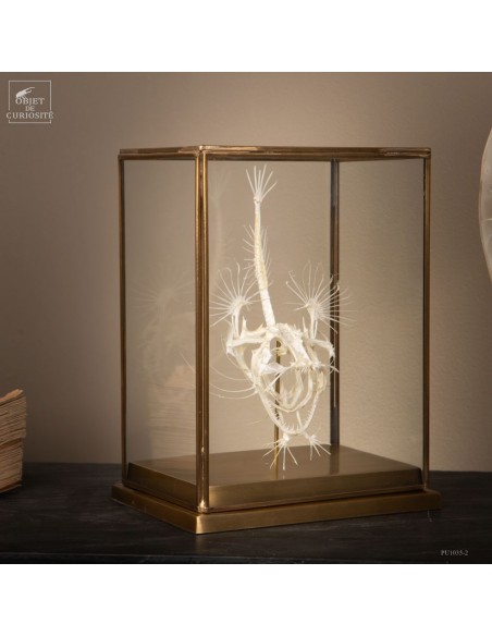 Housed in a rectangular glass dome on a brass base, this piece is a cross between marine biology and anatomical sculpture — as much about deep-sea adaptation as it is about ethereal beauty.