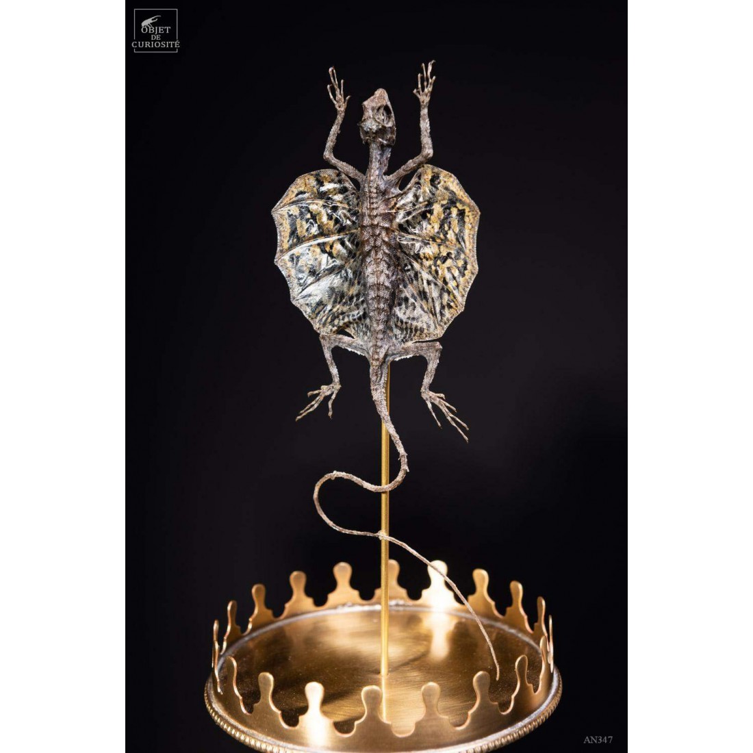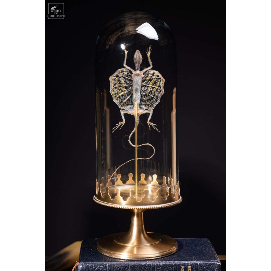 Flying lizard under glass with brass base