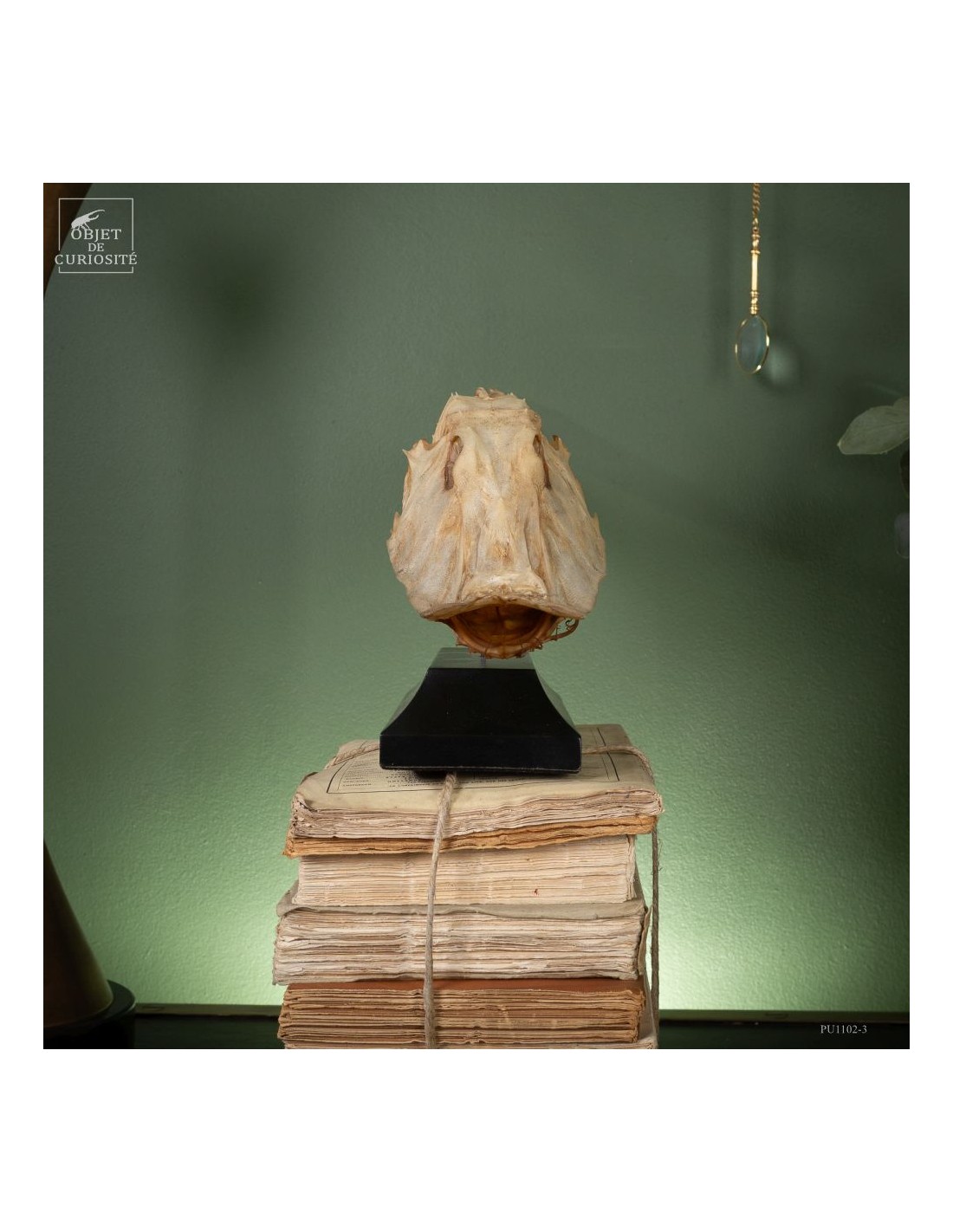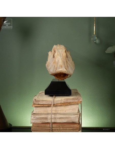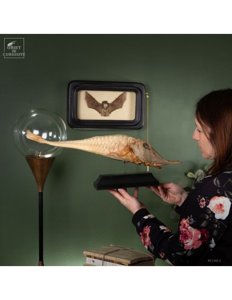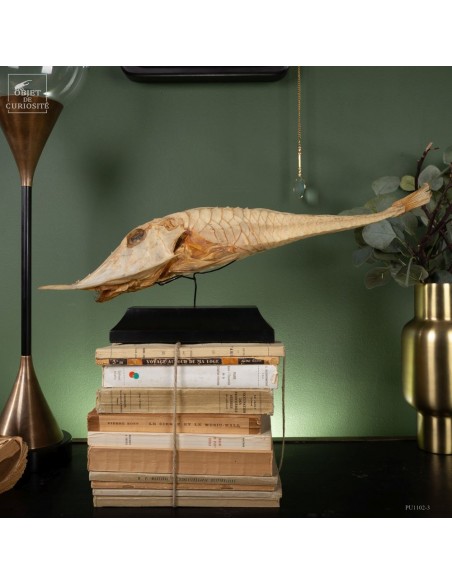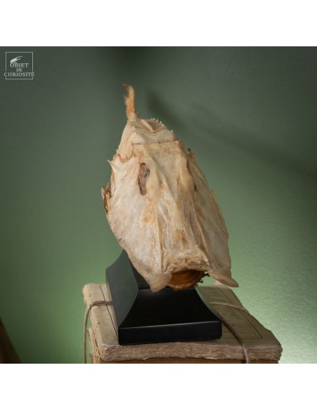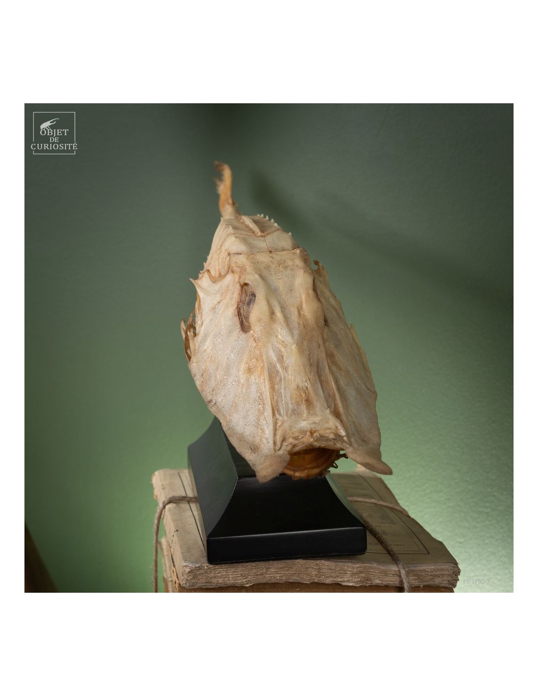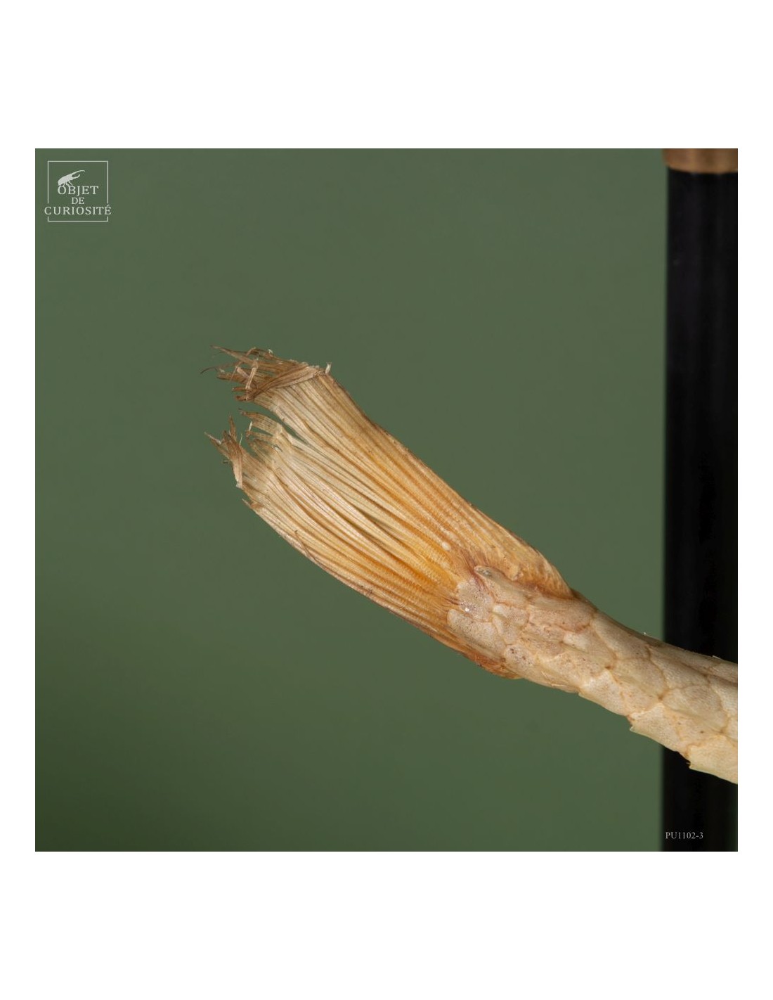 This fish is huge, looking almost like a crocodile: bony scales, eyes perched at the top of the skull: PERISTEDION sp. , the African armored searobin. At least it is larger than the bony searobins that can sometimes be found in the Mediterranean beyond 50 meters deep. It comes from the Philippines, and should therefore be a Peristedion orientale, but it was determined that their maximum size was 40cm, and this one exceeds 50cm. So would that be a record? That’s how far we are in our research.