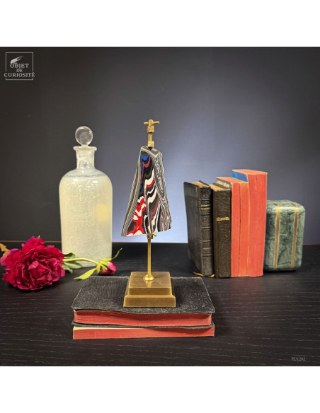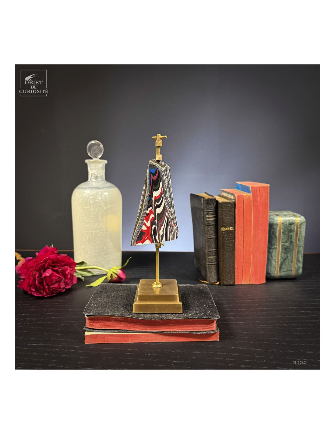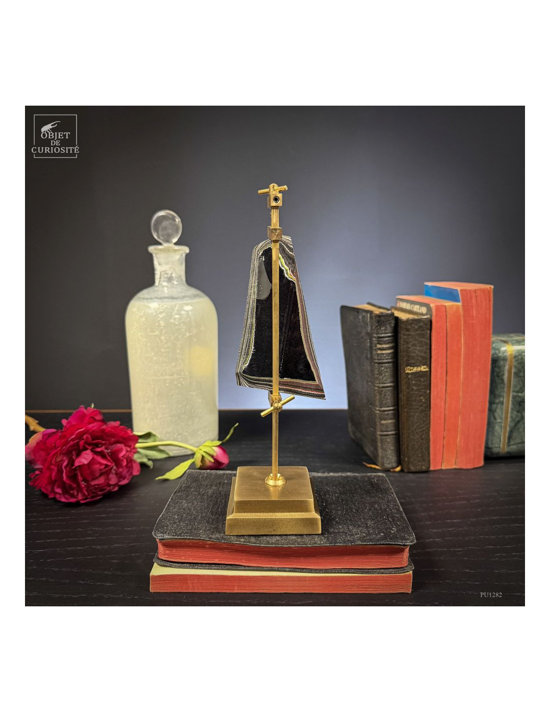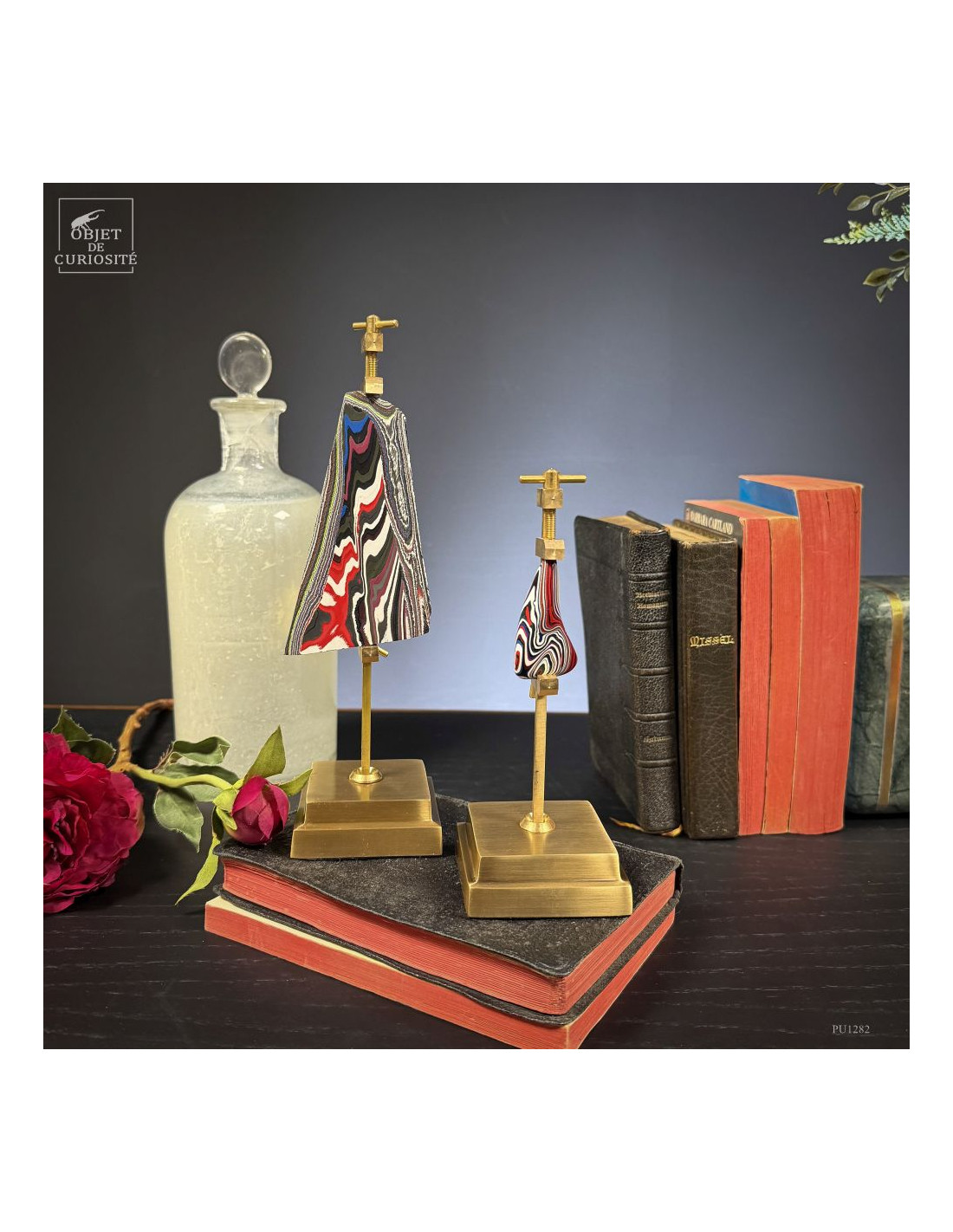 Jeepite is not a rockl. But it’s a real curiosity. And beautiful too! The story: on the manufacturing lines of the Jeep Wrangler in Ohio, USA, the carcasses are painted on a cart that then goes through an oven. Since the car body paints are fired at 70 degrees celsius. And the same cart will again go to the oven with another car, perhaps of a different color, and so on for weeks. After several months, the cart is finally cleaned because hundreds of cars have received a color. This part therefore comes from a pipe or from the back of the cart: overspray of paint. By working it asymmetrically, we bring out all these colors.