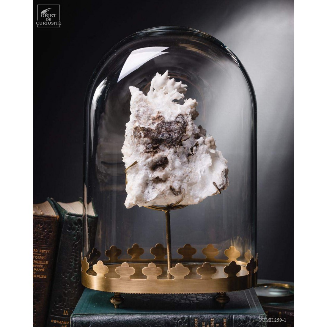 White aragonite (3.4kg) in oval glass