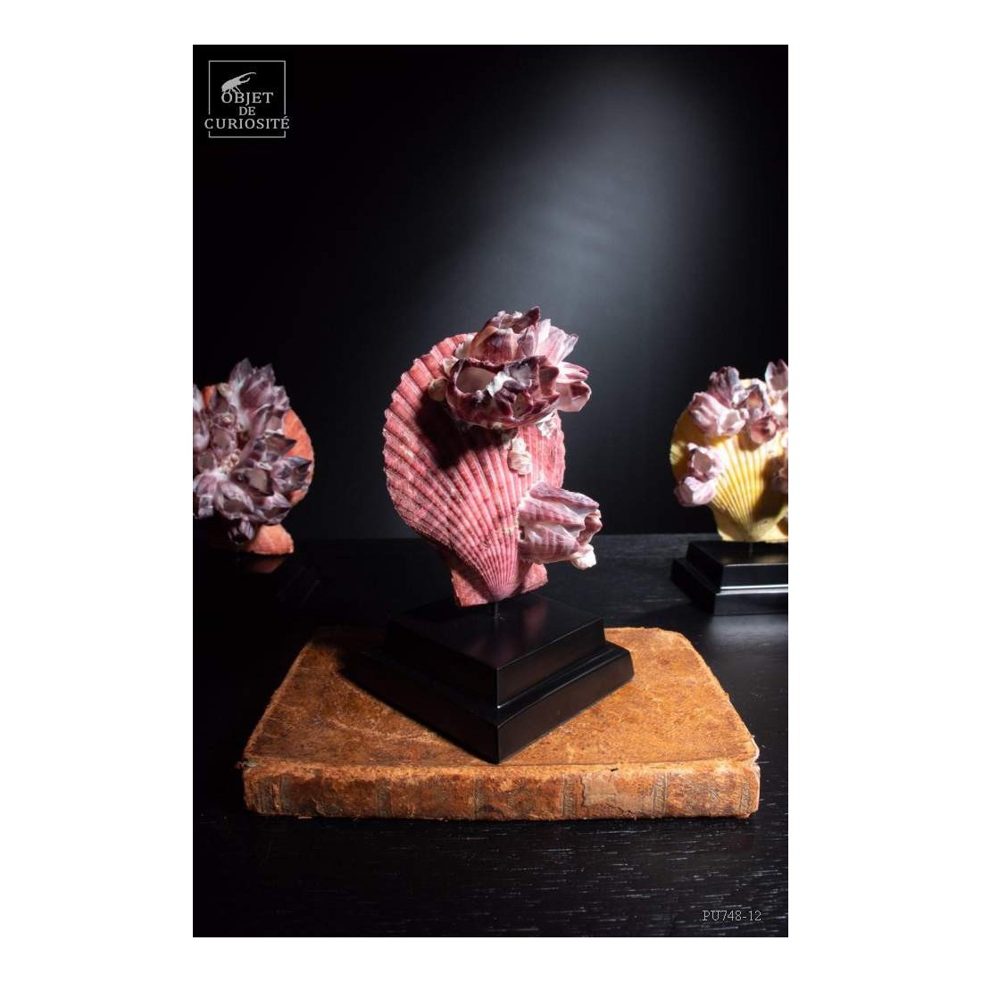 If this sea shell is purple yellow, it's because under the sea in the Philippines you would discover exactly the same color: we never paint anything! But we selected only the Pecten that became the house of some purple Balanus.