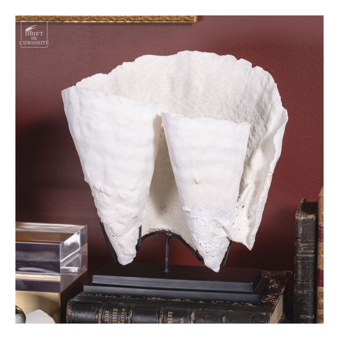 Coral Turbinaria Reniformis from the Solomon Islands. The common name of this coral is "cup coral". Its skeleton is like large white waves rolled up on the edges. Polyps only spread at night to feed on plankton. Under the sea, its color is a beautiful shade of yellow, sometimes green. This coral comes with its own CITES number (Washington Convention).