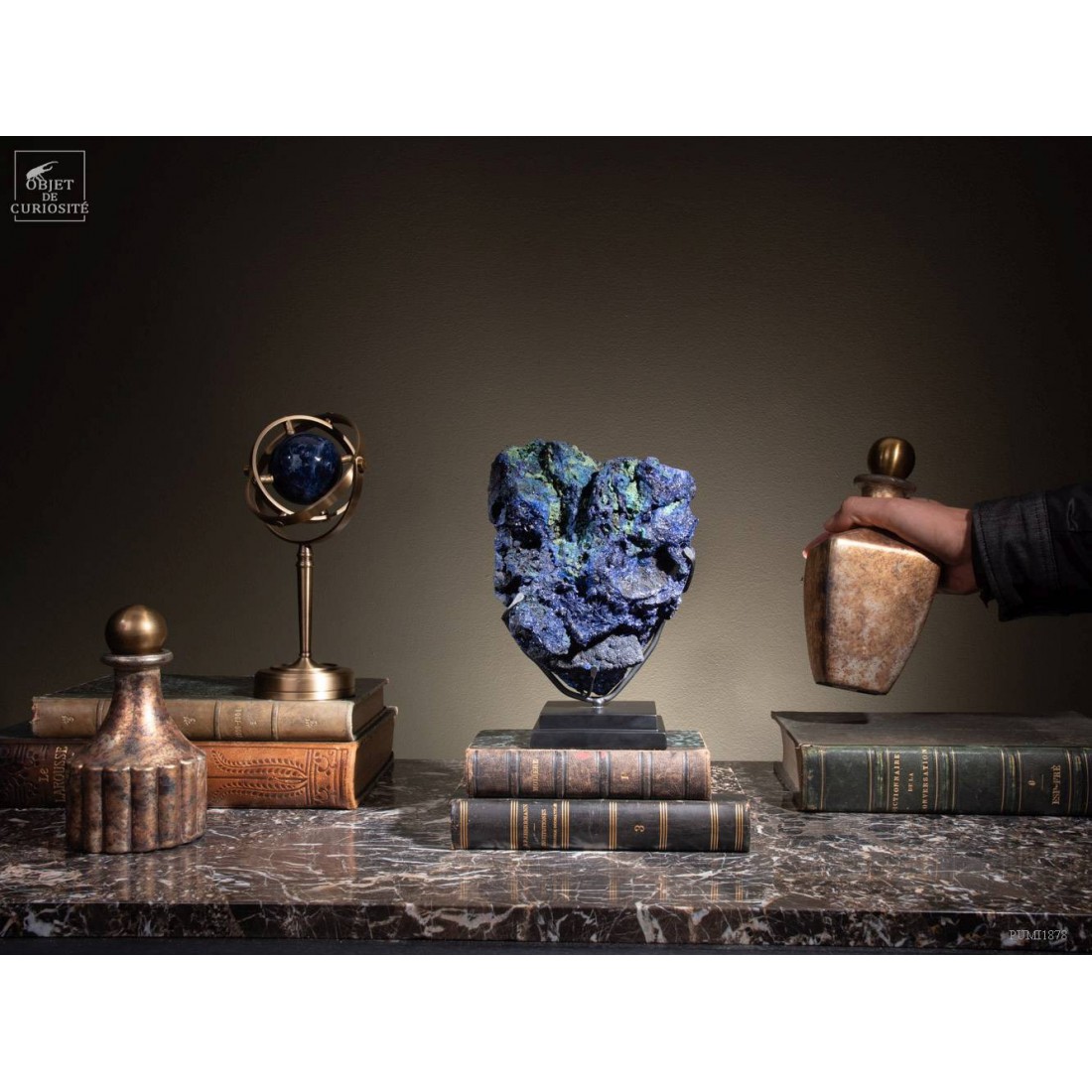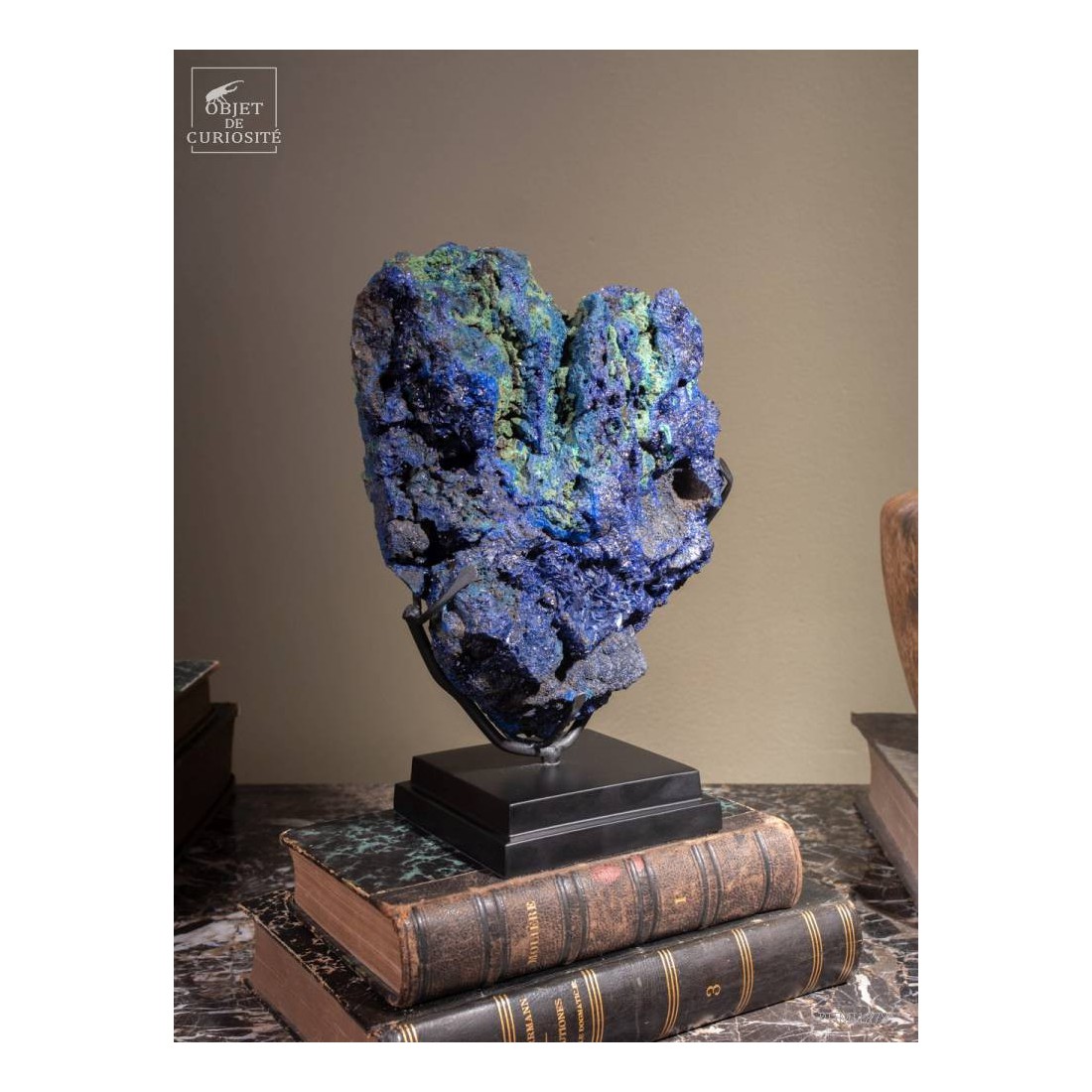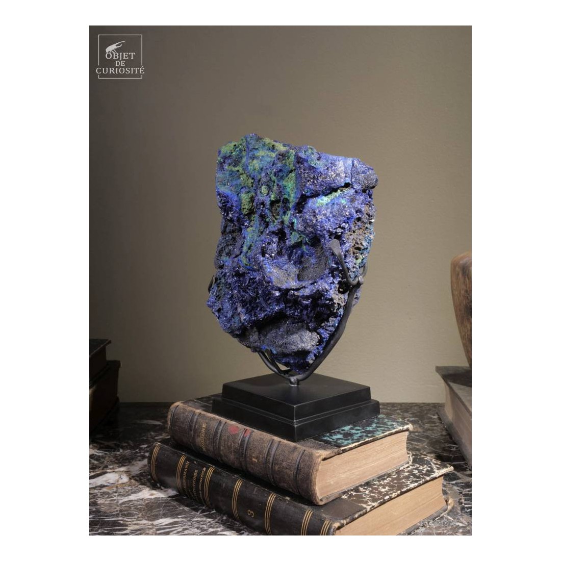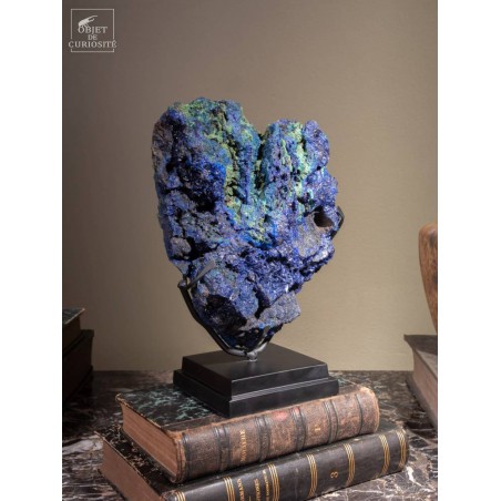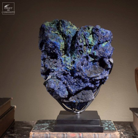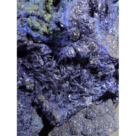 Two bright colors highlighted : those 2 minerals are often found together nearby some copper veins. In fact this incredibly blue Azurit is a copper carbonate, and can evolve in green Malachite in some cases. This 2015 founding in Laos has great colors. Those 2 have been used as pigments for the paintings since the 27th century before J.C., by the Egyptians!
