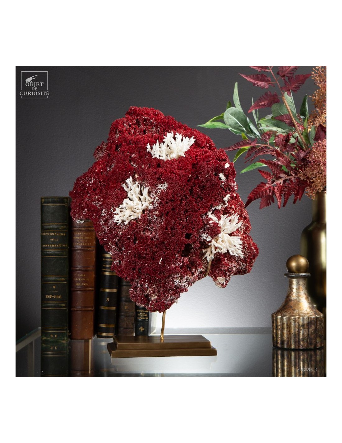 This great red color is natural. But under the sea you would not notice it, as it look like a field of white flowers: the polyps (small animals) living in each pipe of this incredible coral-city . Only the skeleton reveals such a great color. Supplied with its own Cites Number as it is a protected species. All our items are perfectly legal to trade. One of a kind.
