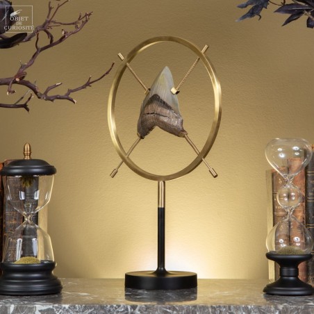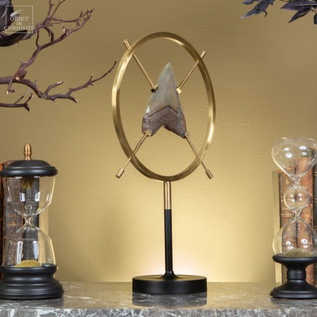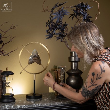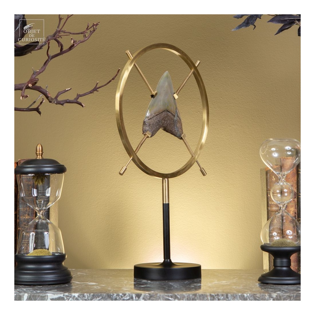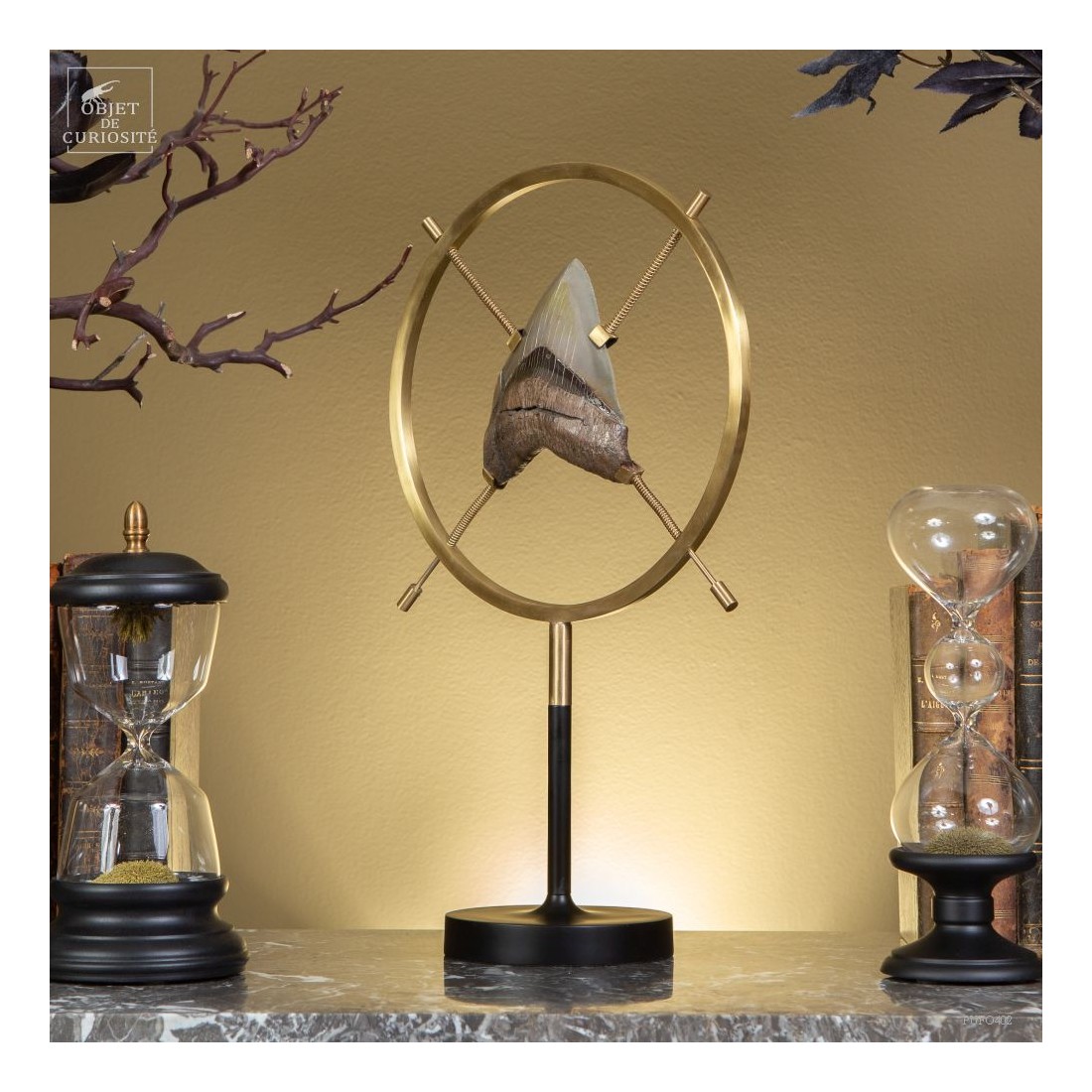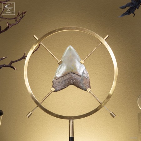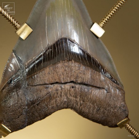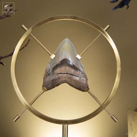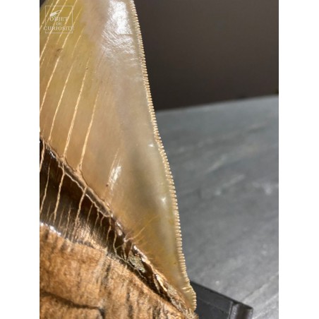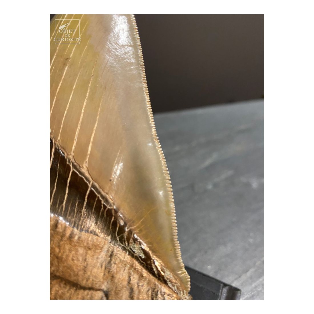 Of this giant of the seas we know only the teeth. But what teeth! It is particularly large: 13,5cm (from the tip to the base of the root). This fossil discovered in South Carolina in the USA is between 25 and 2.5 million years old. It belonged to a giant shark: the Odontus Megalodon which could measure up to 16 meters long. Like all sharks, its skeleton was made of only cartilage, and the only part we can hold in our hands is the teeth. And, incredible: it’s still sharp.