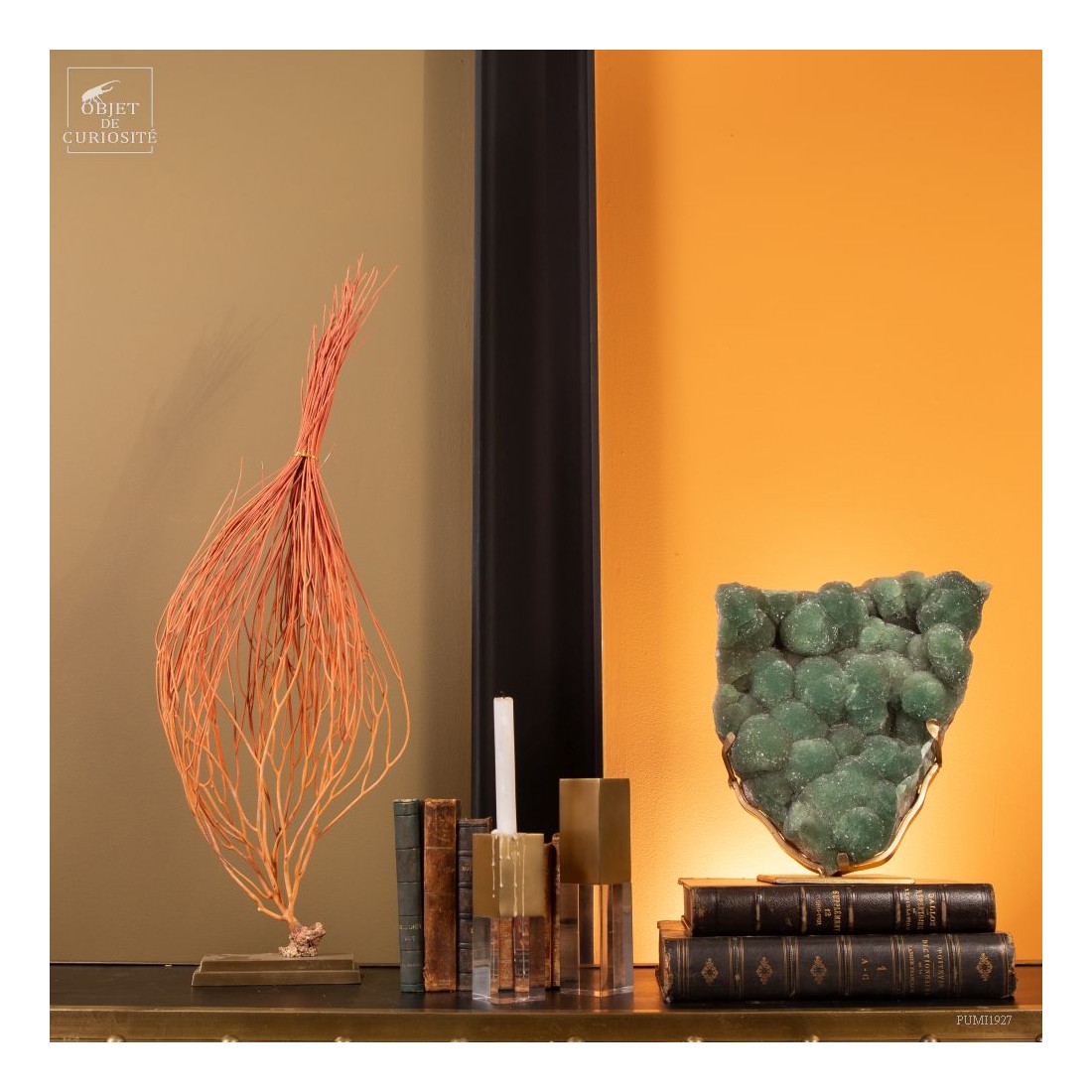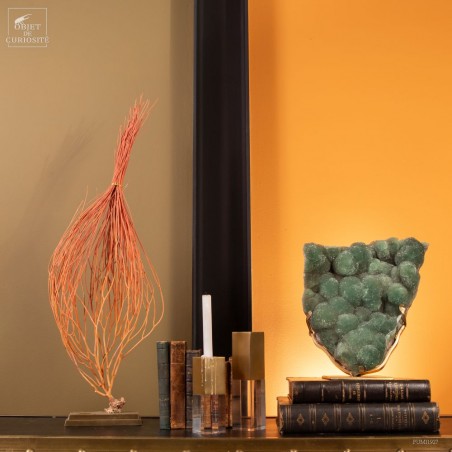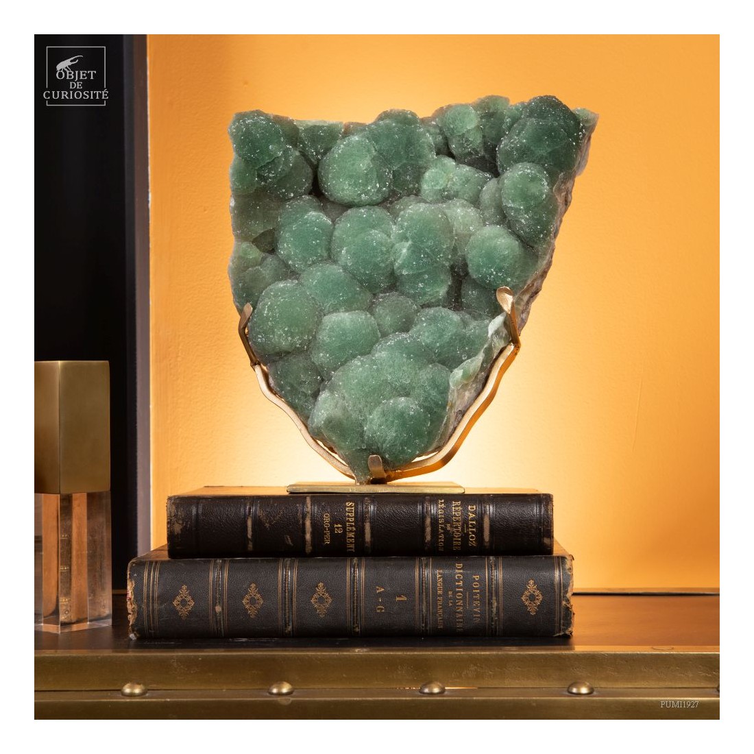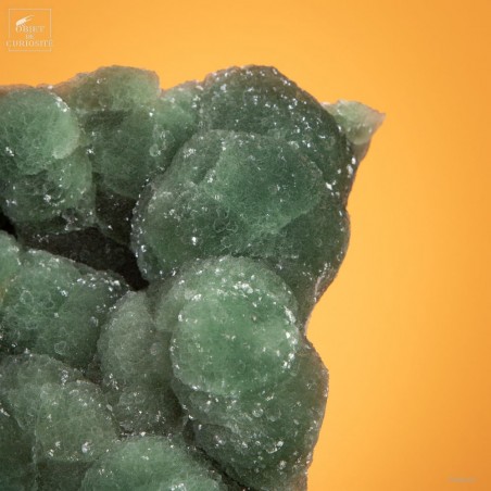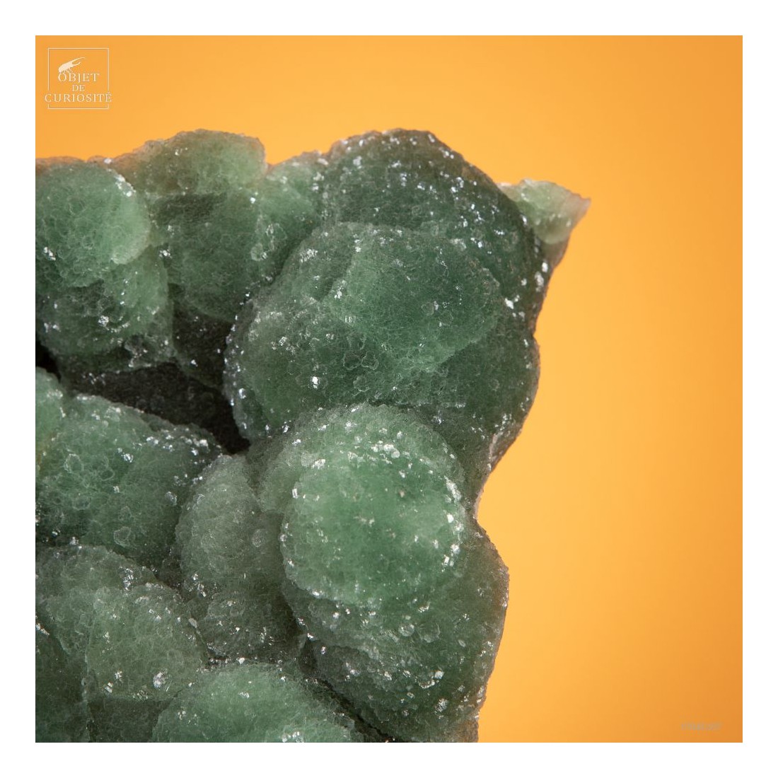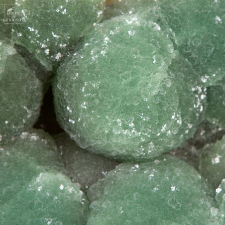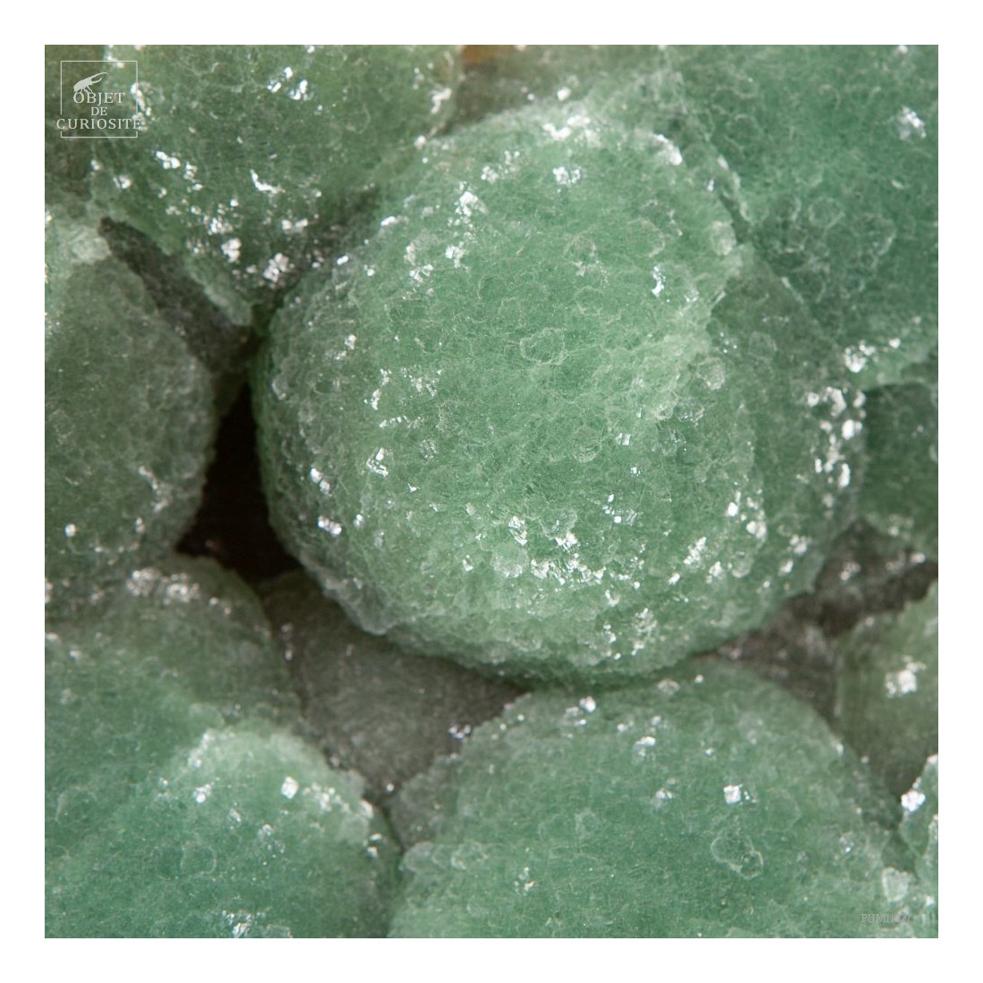A discovery made in 2015: a super green Fluorite from Jiangxi Province in China. This stone revealed that incredible color after a serious cleaning to remove the layer of druzy crystals that covered the Fluorite since a few thousands years. The crystal balls look almost like a frozen mint sweet. This spherical shape (Botryoidal Fluorite) as been the Hot Thing among the world of mineralogy in 2015!
