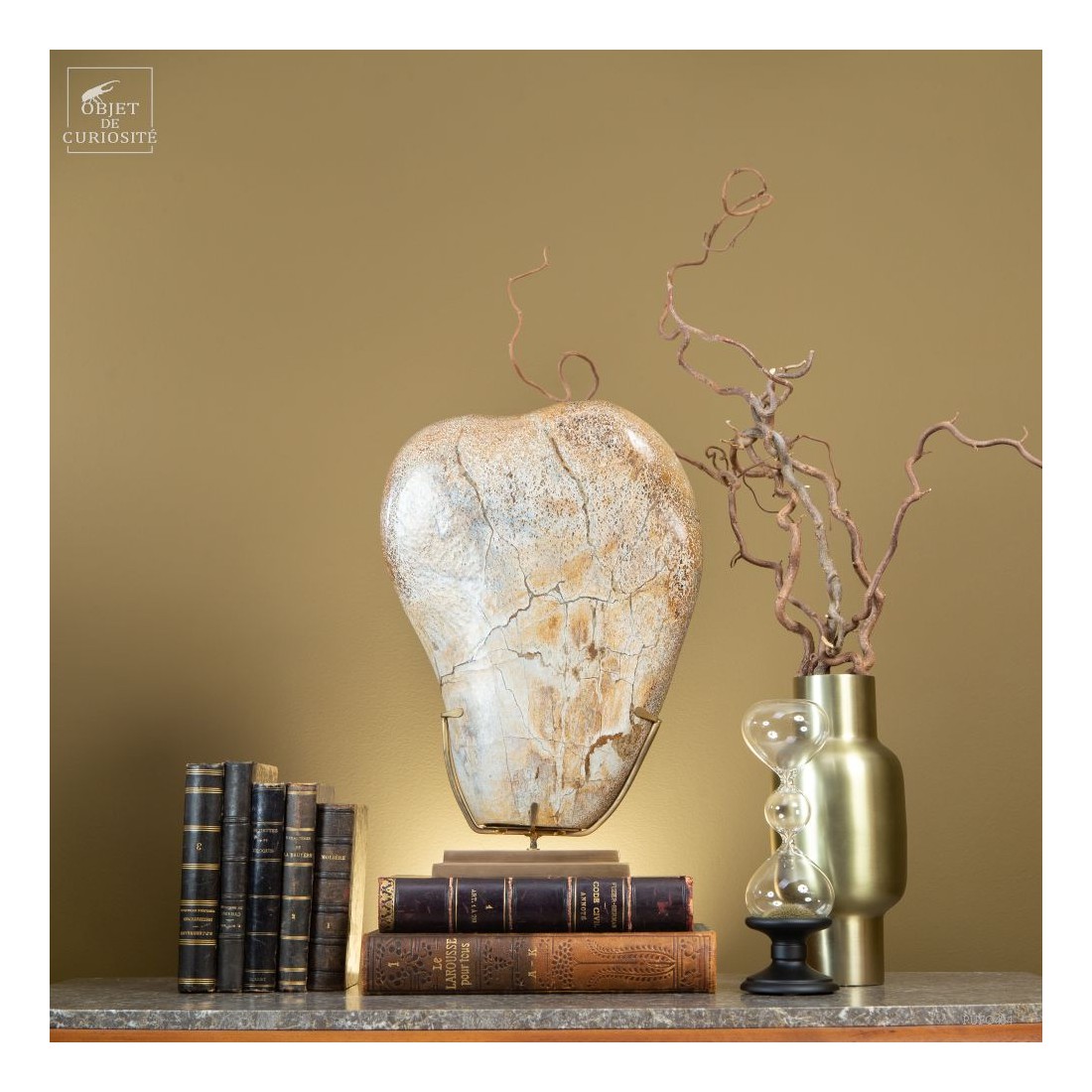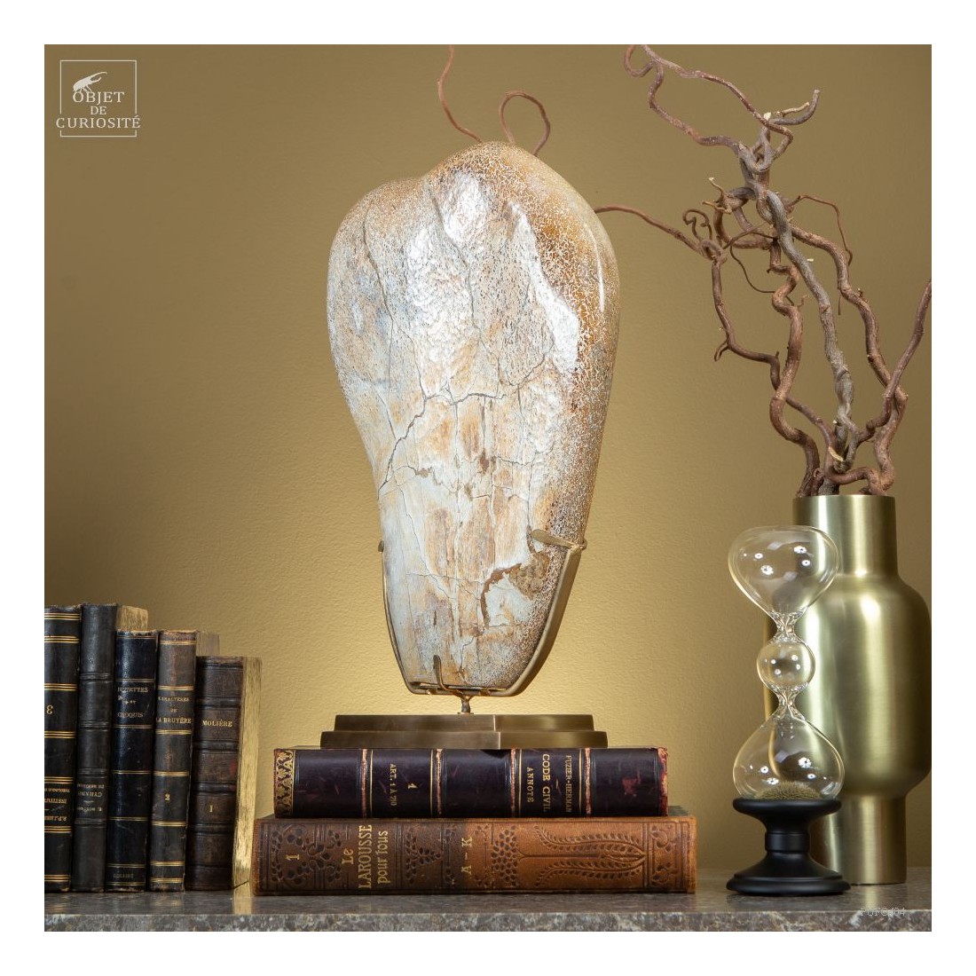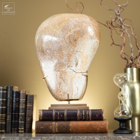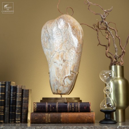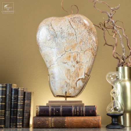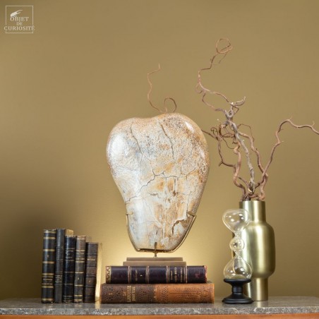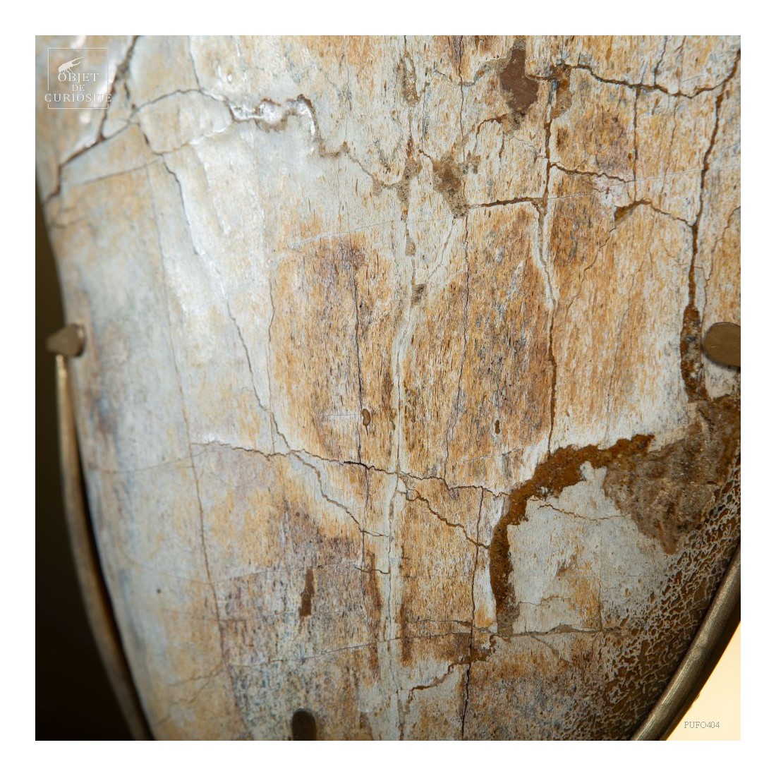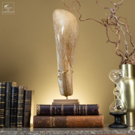 This species was described in 2001 by New York and Malagasy paleontologists in the Mahajanga basin. It is a Titanausore, therefore of the family of giants such as the Diplodocus. This one did not exceed 15 meters long: The Rapetosaurus krausei. A nearly complete juvenile skeleton was discovered. But sometimes bones were very scattered or even broken. This impressive bone is the head of the humerus. It has been polished, which is not the preparation required for a museum, but which makes it so much softer and sensual... Note that can really observe the surface of the bone on a whole face. The biggest bone of the largest dinosaurs that have roamed the earth!