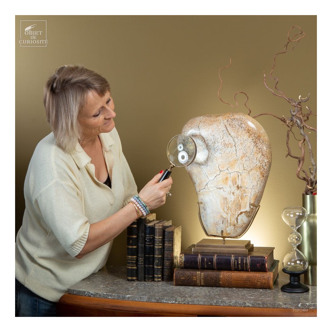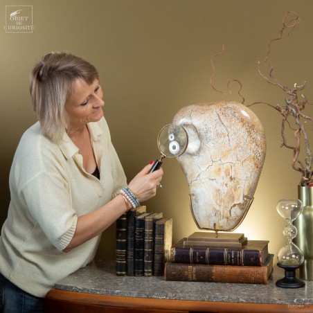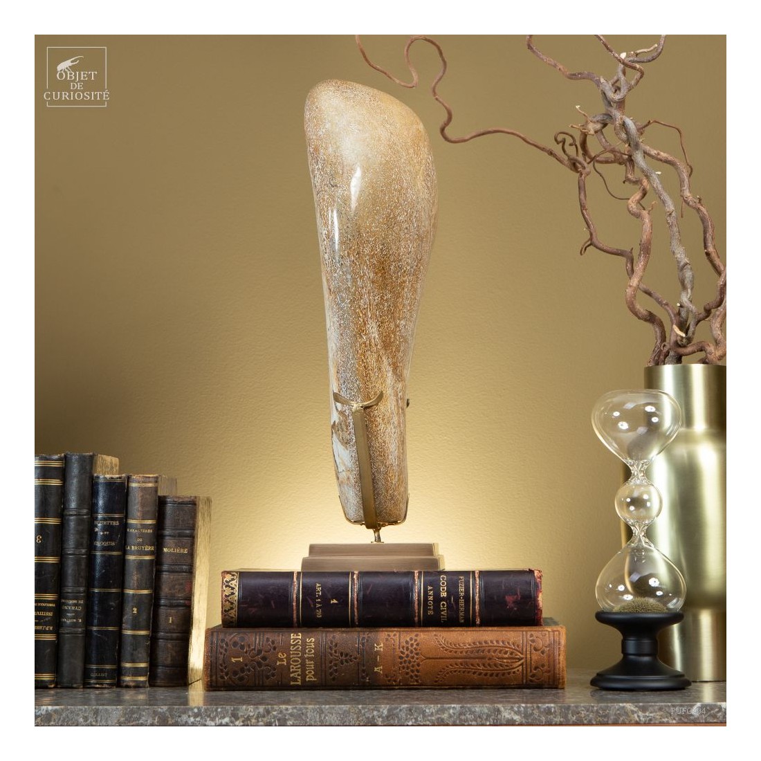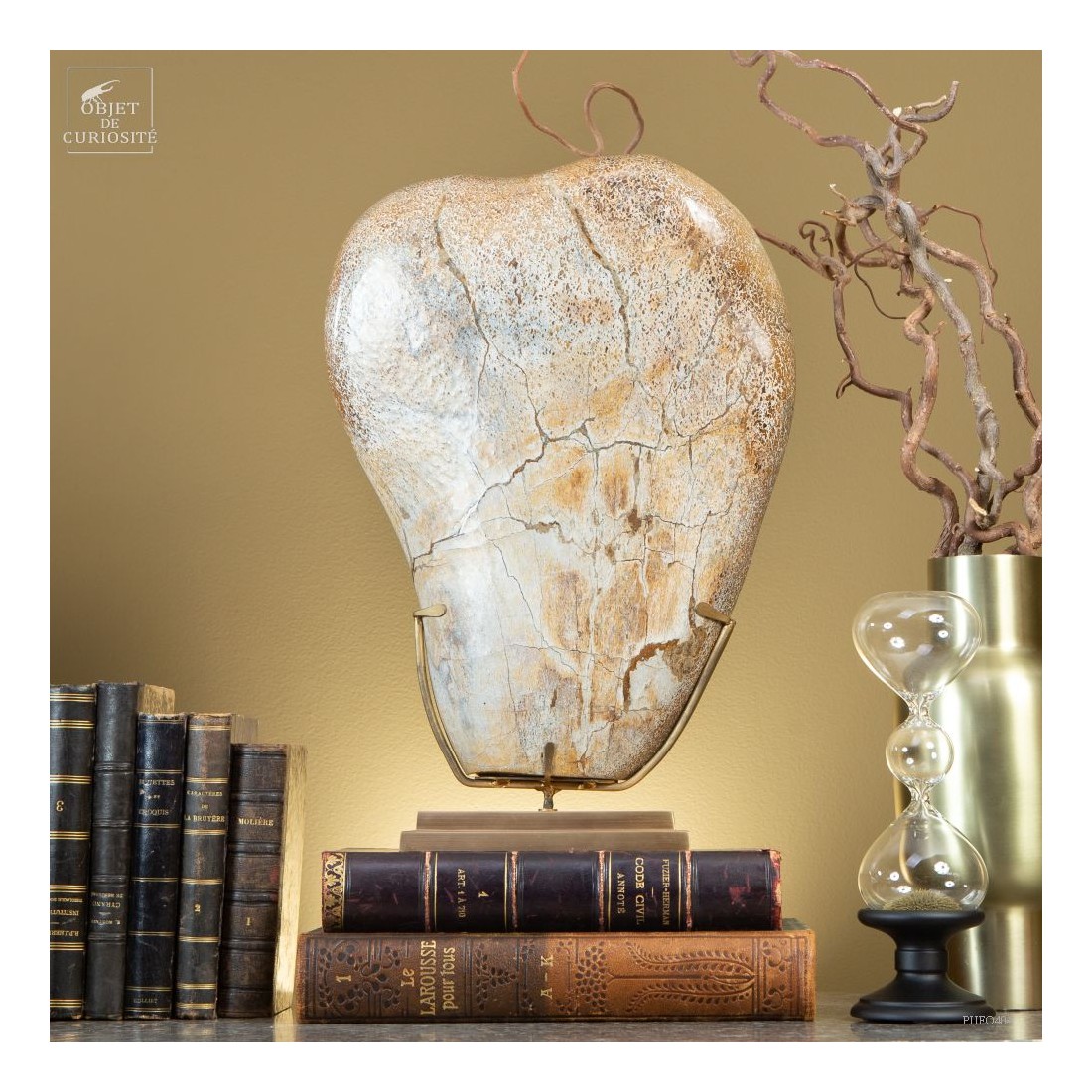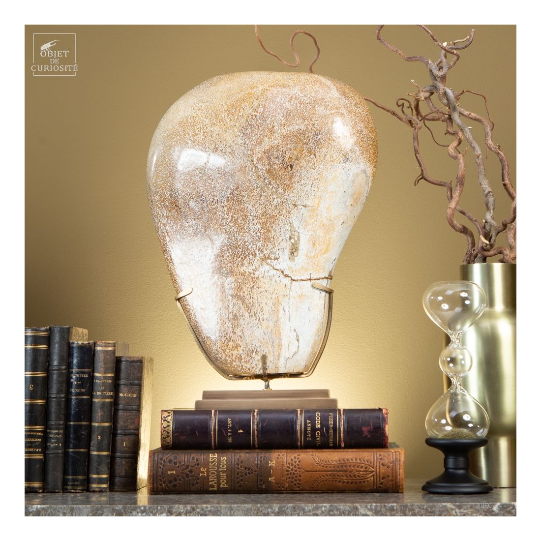 This species was described in 2001 by New York and Malagasy paleontologists in the Mahajanga basin. It is a Titanausore, therefore of the family of giants such as the Diplodocus. This one did not exceed 15 meters long: The Rapetosaurus krausei. A nearly complete juvenile skeleton was discovered. But sometimes bones were very scattered or even broken. This impressive bone is the head of the humerus. It has been polished, which is not the preparation required for a museum, but which makes it so much softer and sensual... Note that can really observe the surface of the bone on a whole face. The biggest bone of the largest dinosaurs that have roamed the earth!