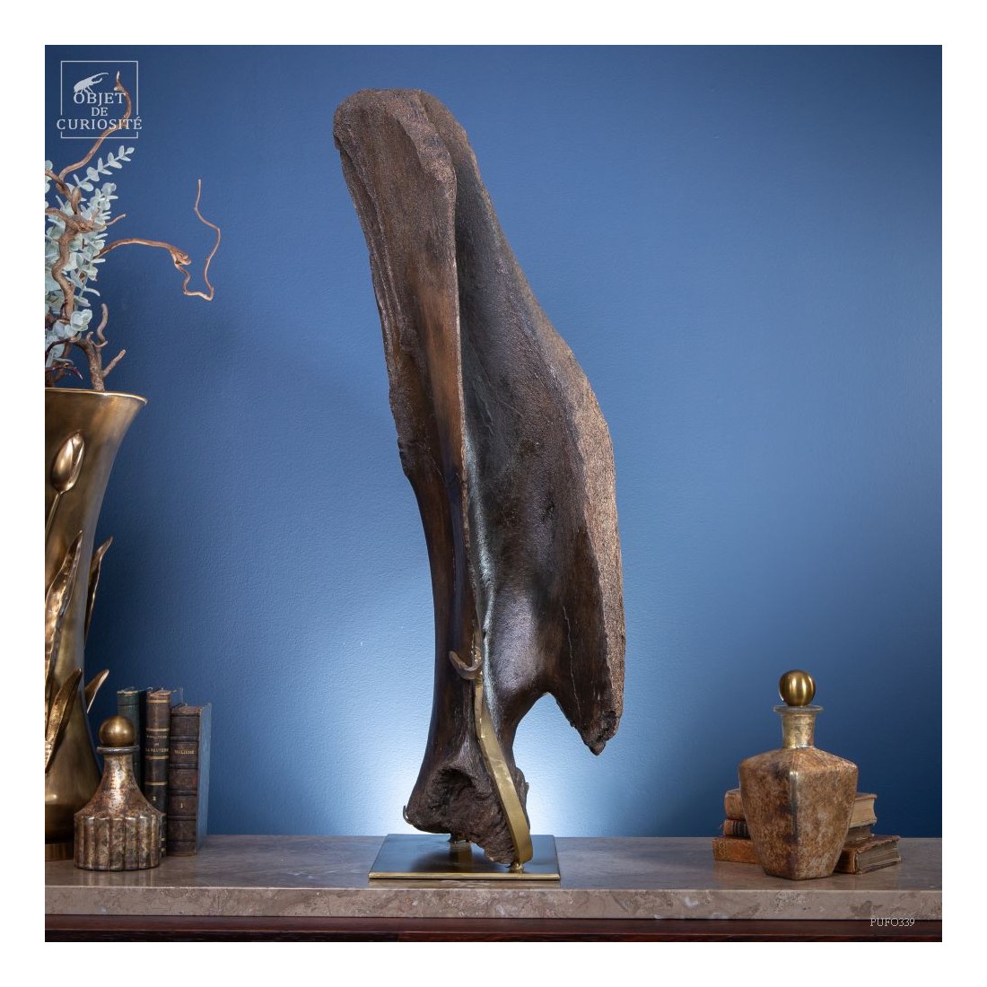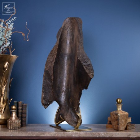Massive and impressive: a scapula of an extinct Mammoth! this natural fan shape has the patina and the strengh of this giant that was roaming through Europe more than 10 000 years ago. This specimen has been found on the banks of the river Wistoka in Poland.
