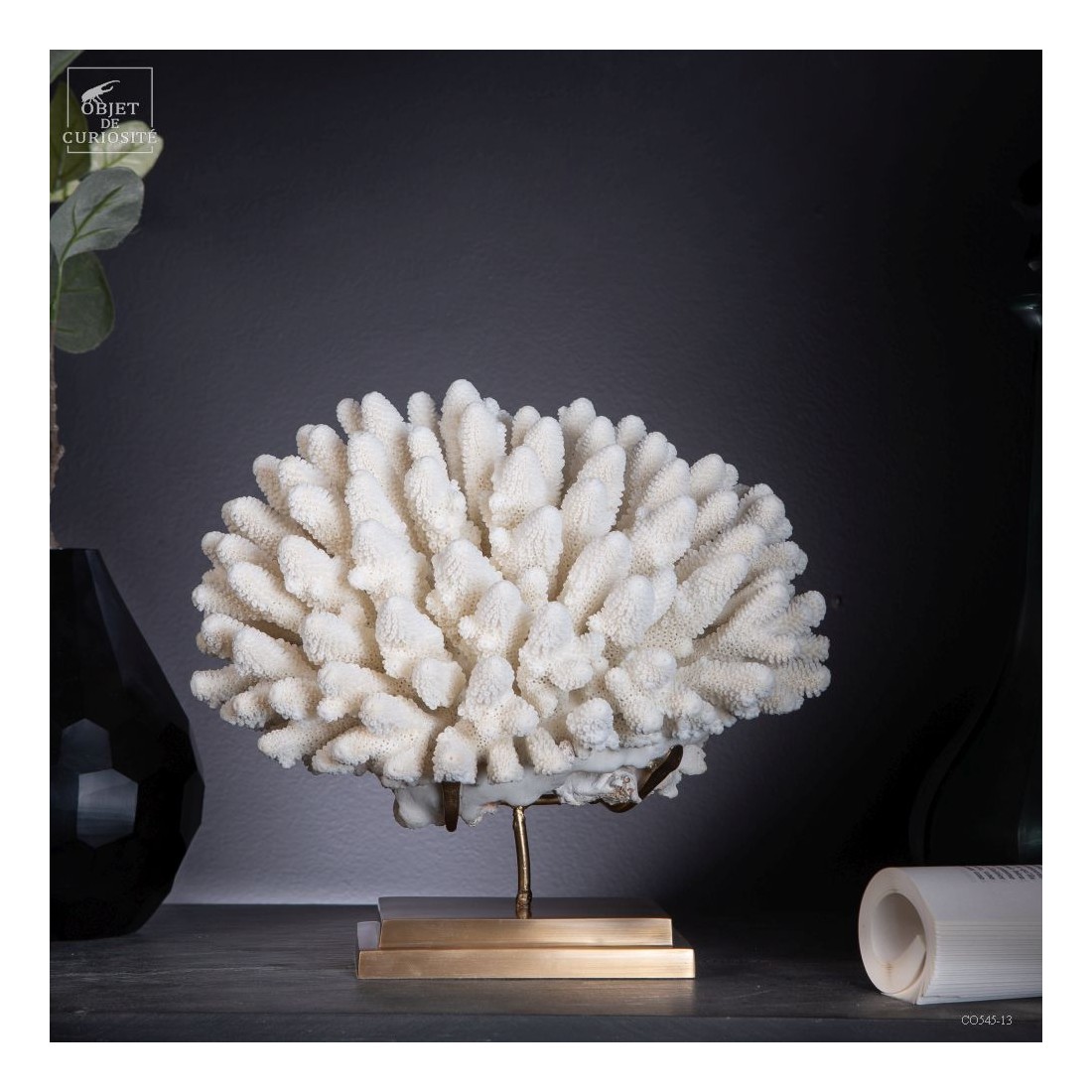 This standing white coral is made of hundreds of fingers looking a bit like a Romanesco cabbage. The Acropora Humilis is a strong coral living close from the surface as it requires the sun light to grow. It needs to be strong, to resist to the waves. Alive it is not a bright colored species, usually off-white, it can also be seen with some light purple polyps. But the details of its skeletton, on a brass base is just amaizing. Delivered with a Cites number, as a protected species.