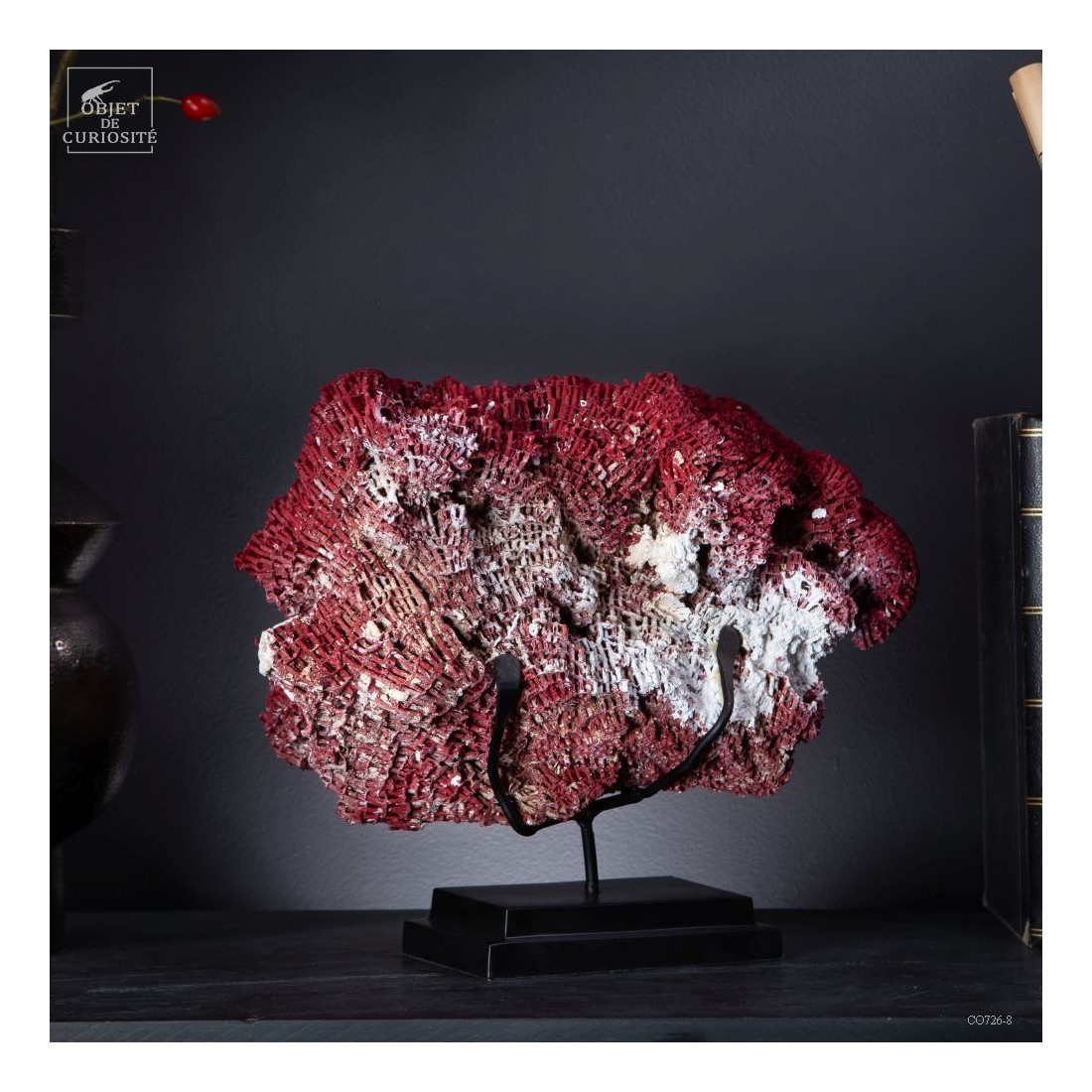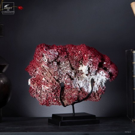 This great red color is natural. But under the sea you would not notice it, as it look like a field of white flowers: the polyps (small animals) living in each pipe of this incredible coral-city . Only the skeleton reveals such a great color. Supplied with its own Cites Number as it is a protected species. All our items are perfectly legal to trade. One of a kind.