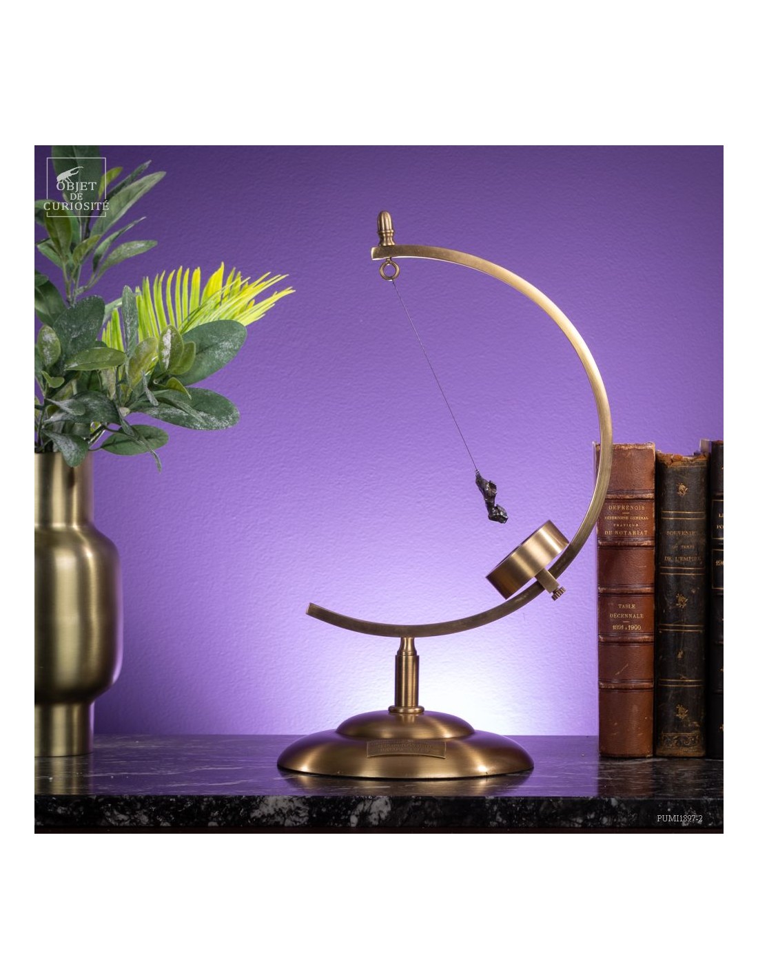We created this brass mechanism to allow this Siderite (meteorite that contains iron) to float in the air. You can grab it and touch this incredible stone that went through the atmosphere.