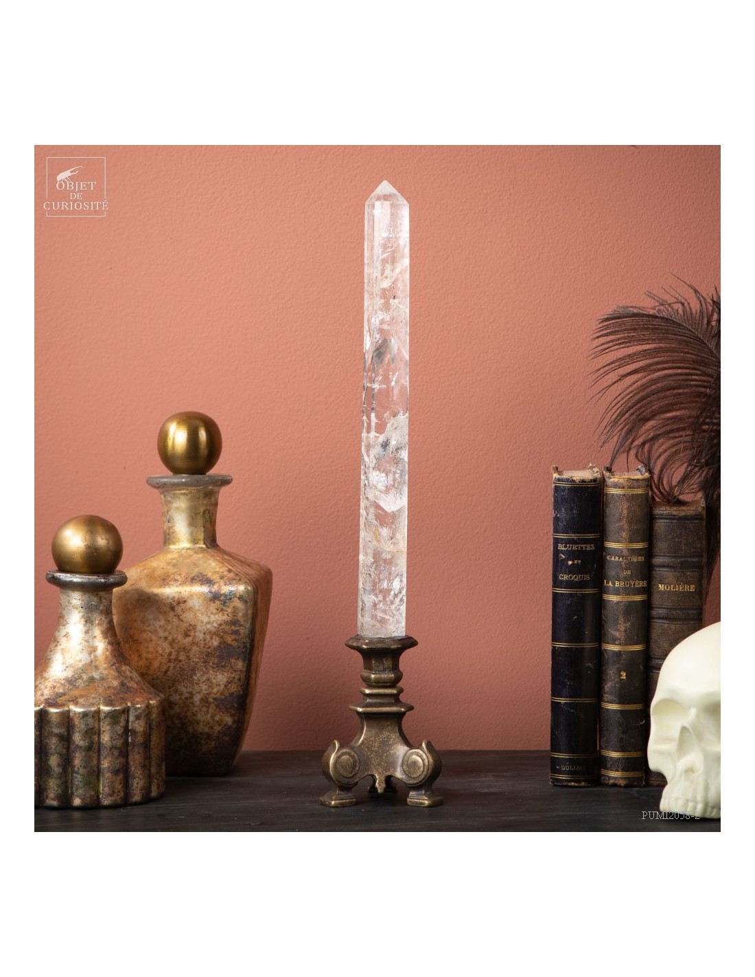 Clear crystal polished quartz from brazil on a solid brass baroque brass stand. 32cm High!