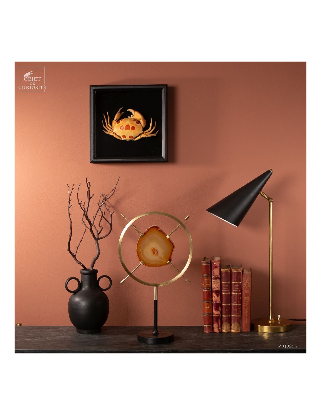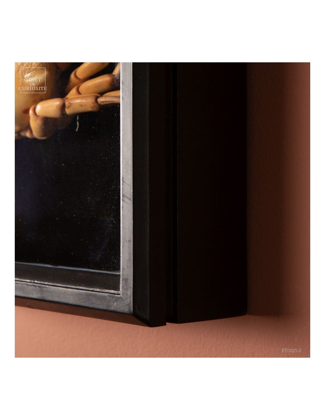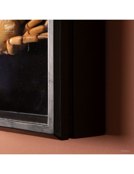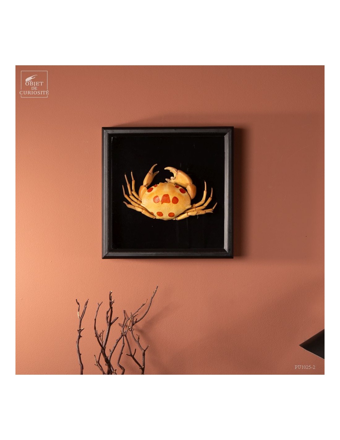 This doted crab is also called slow crab. In fact it is mostly active at night, and it feeds on corals and sea snails. The Carpilius maculatus can be seen in less than 10 meters of depth in the tropical zone of the Indian Ocean: from French Polynesia to Hawaii. Its flesh is known to be toxic to man, but it seems that some Polynesians eat it from time to time. It rests here in a black wall box.