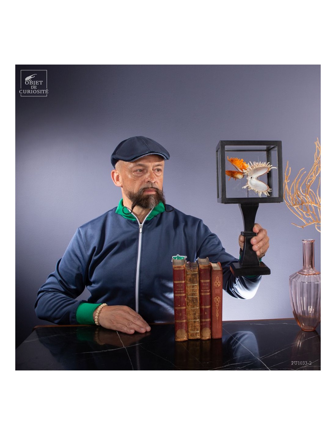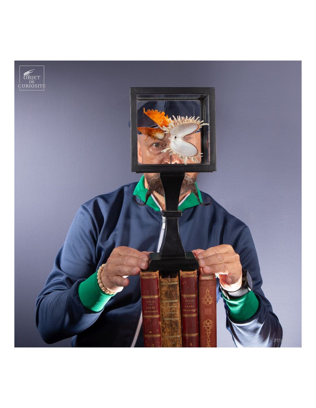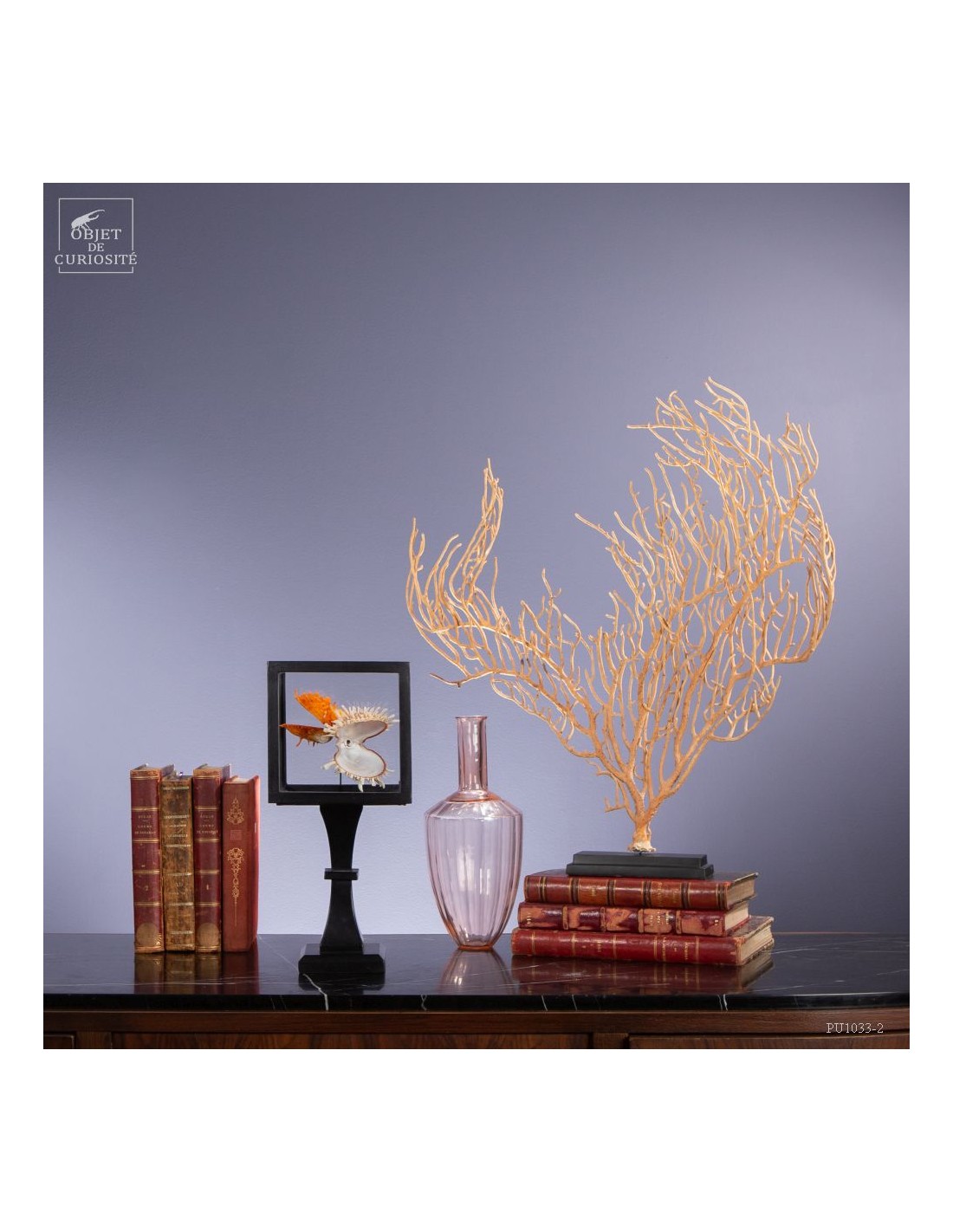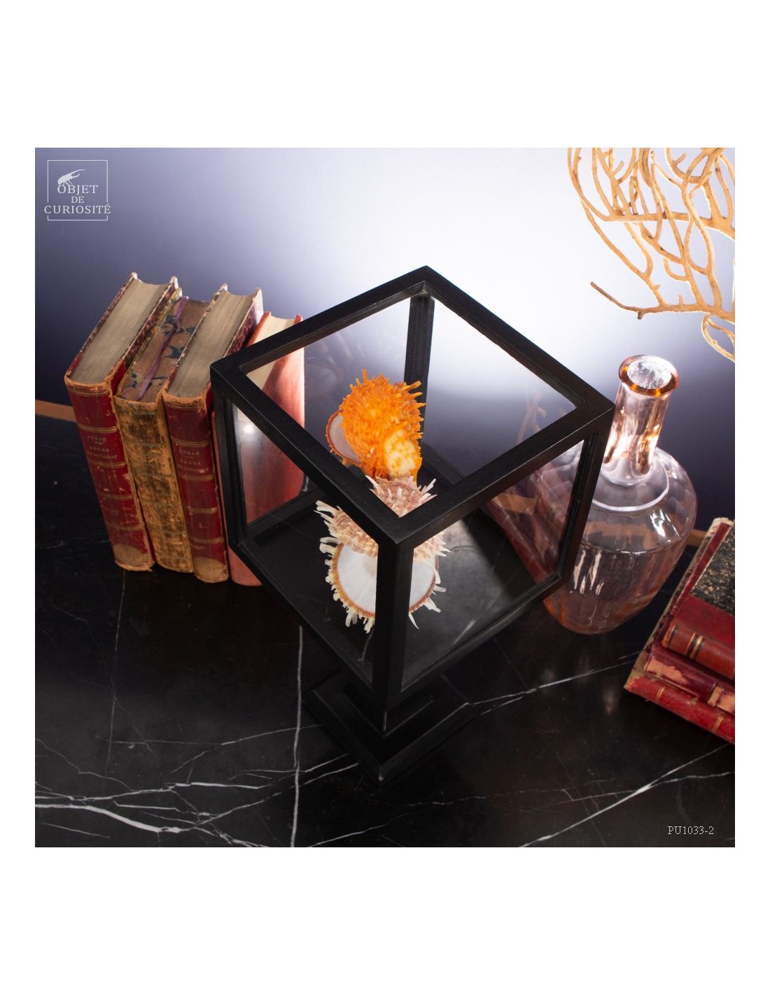 Couple of Spondyle Royal wearing beautiful colors and with large thorns not to be eaten by the starfish... This species does not live in pairs, but these two have grown together, to the point of being "welded" by their shell. It was only in our workshops that they decided to move into this solid mango wood box..