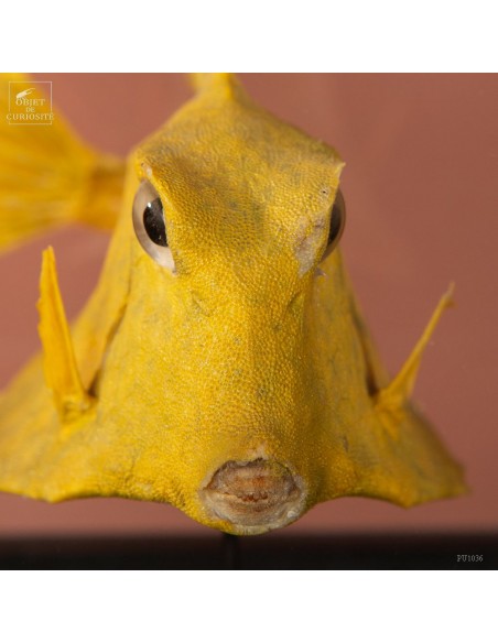 A real armored fish: the boxfish (the family of Ostraciidae) has endowed itself with bone plates that form an exoskeleton. added to that a toxin contained in their body: they have virtually no predators. This fish lived in a reef aquarium of the famous aquarium of Genoa. Once naturalized, it is necessary to restore its original colors, because they fade as soon as he dies.
