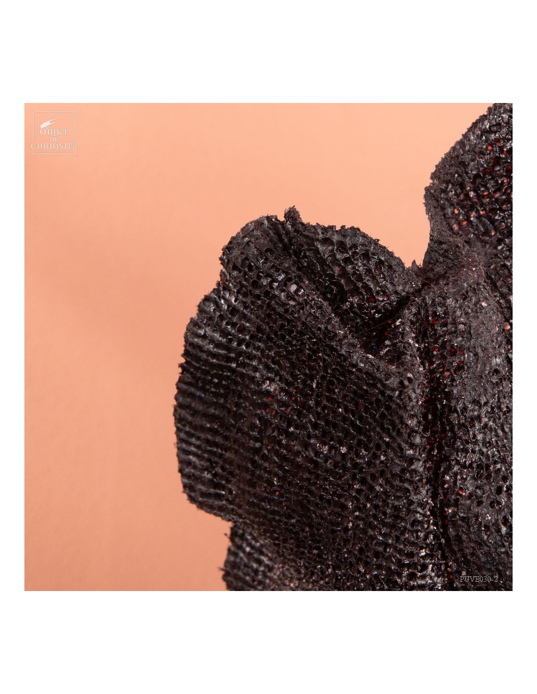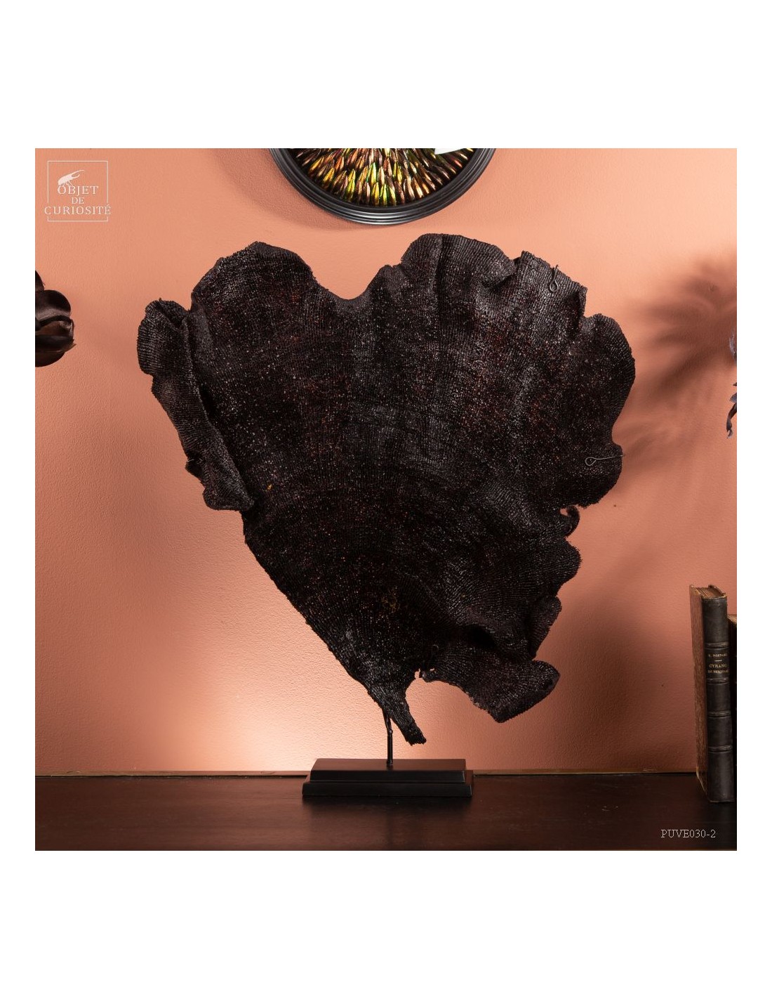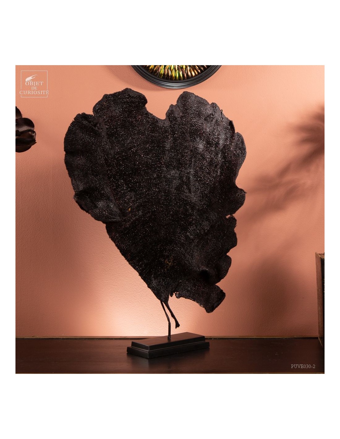 This sponge, which has the flat look of sea fans, has a natural purple color. After a meticulous drying and a stand made to measure, we can propose you this rare curiosity only known by some Indonesian divers.