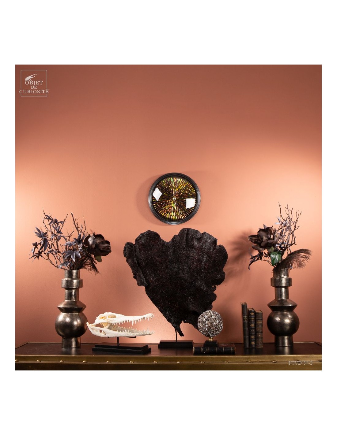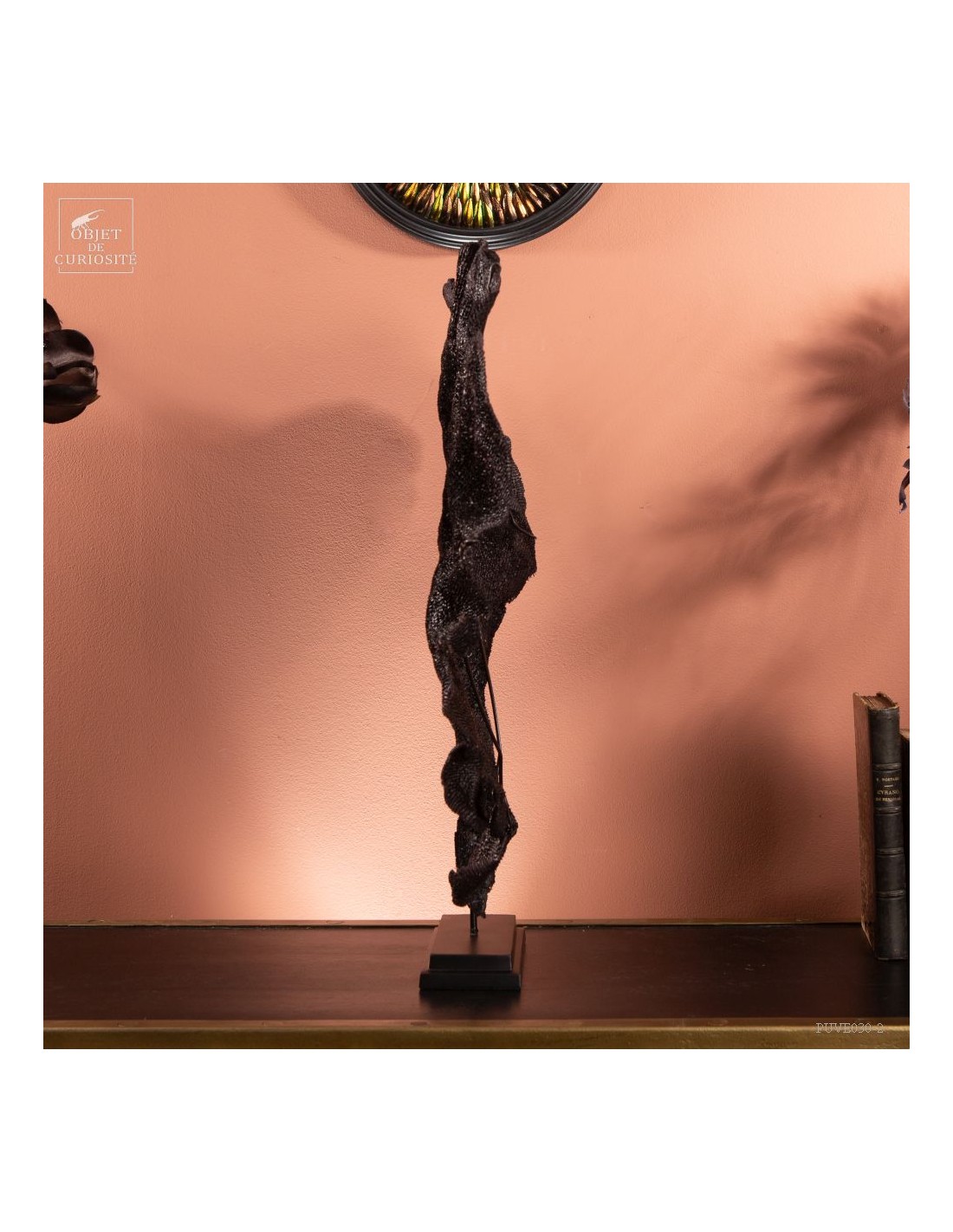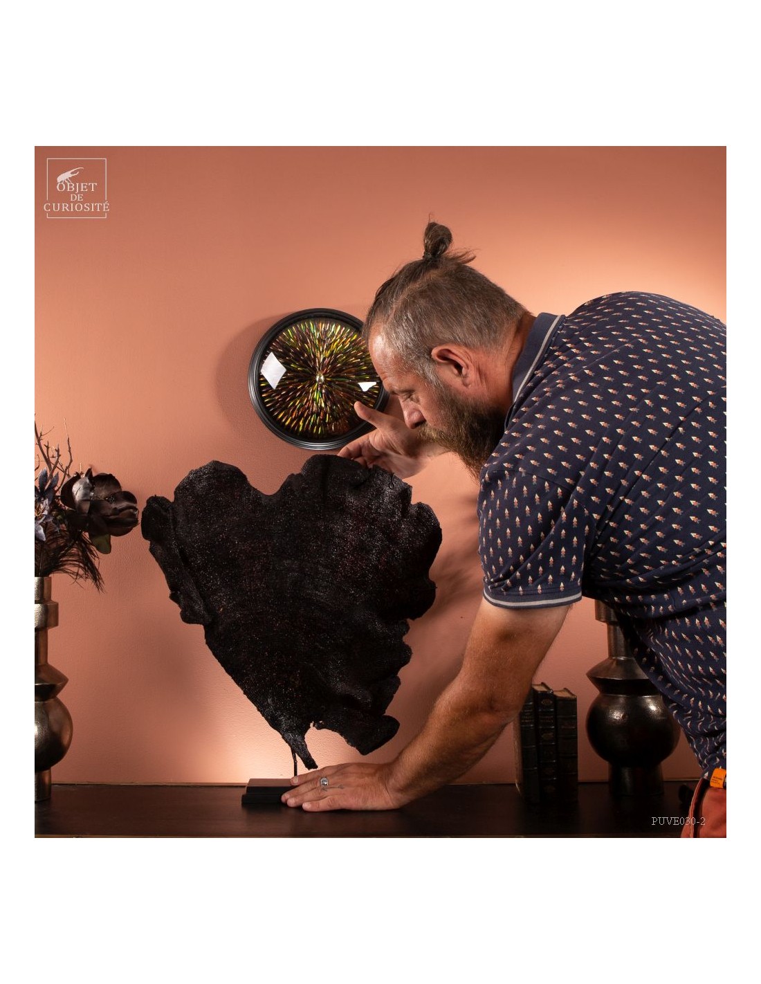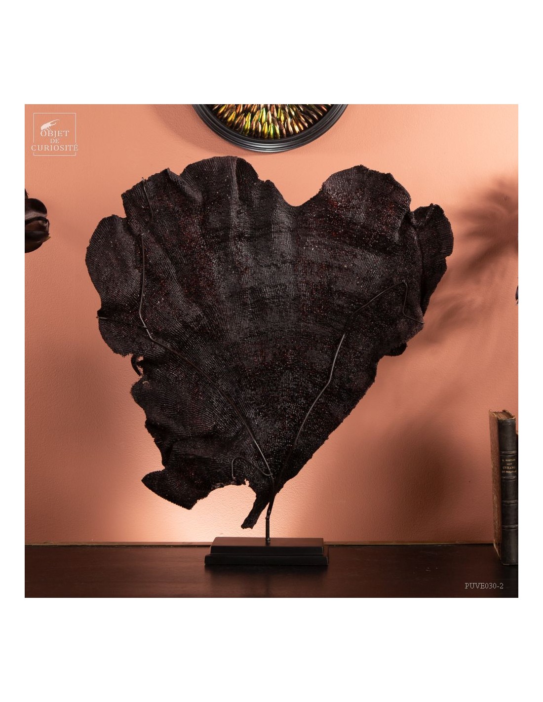 This sponge, which has the flat look of sea fans, has a natural purple color. After a meticulous drying and a stand made to measure, we can propose you this rare curiosity only known by some Indonesian divers.