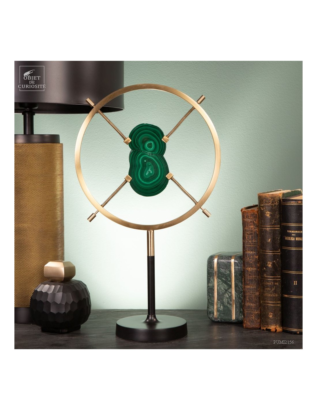 This malachite slice comes from the Congo, from Katanga province. It has been polished on one side to reveal the multitude of shades of green it contains. This natural circle comes from a stalagmite formed in a cavity, below a ceiling loaded with copper ores. The one you see in the last picture. Since ancient times, Malachite has been used as a pigment in the paint for its light and bright blue-green tones, especially in the painting of icons.