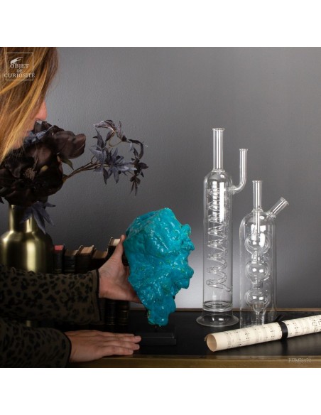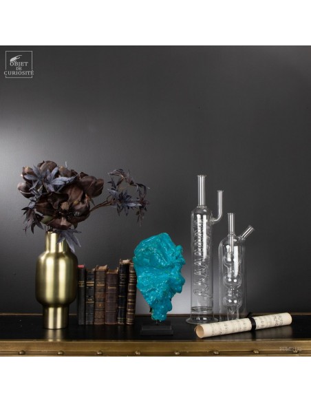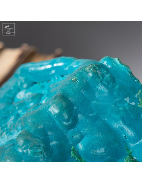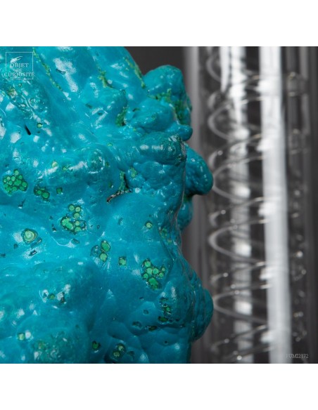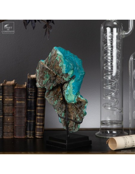 This beautiful turquoise stone was green a long time ago.. Yet it is absolutely natural. Chrysocolla is an evolution of the very green Malachite. This mineral is found in copper mines that underwent oxidation several million years ago. This one comes from the province of Katanga (Congo), more especialy from " l'etoile du Congo" mine in lubumbashi, and its design is of course unique. We see some small tips of the original green.