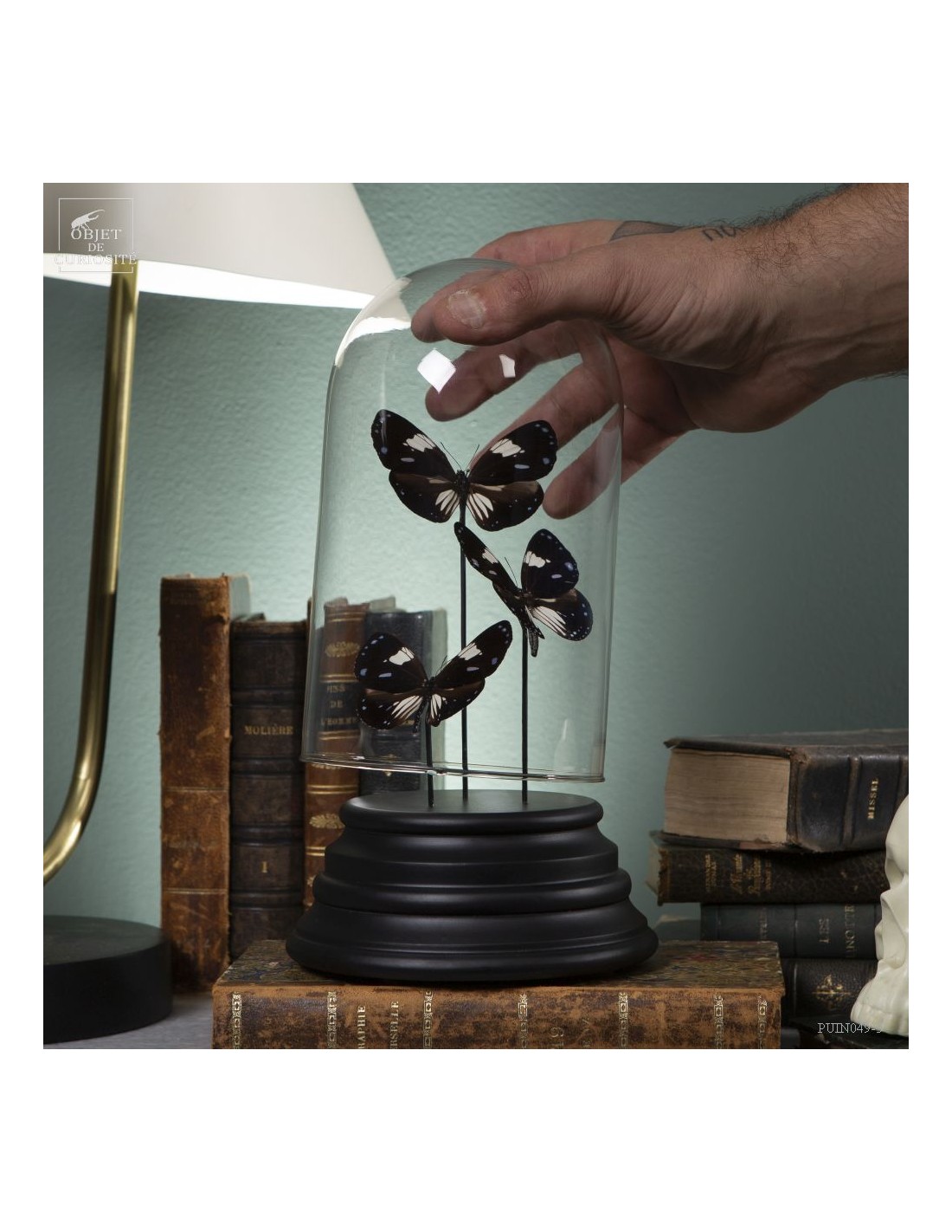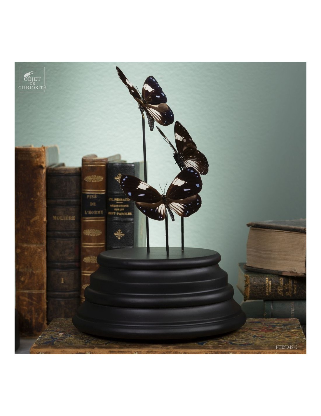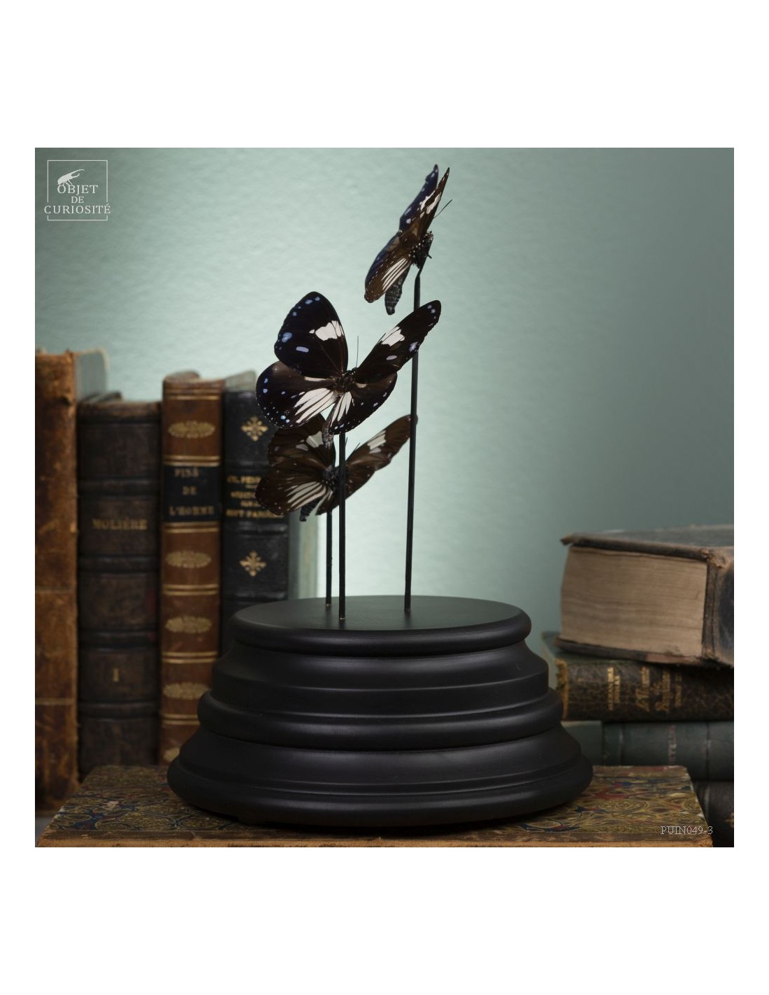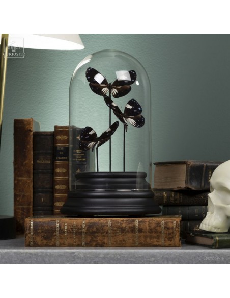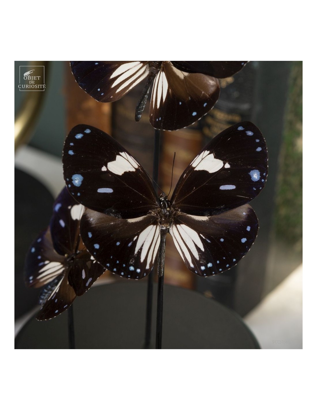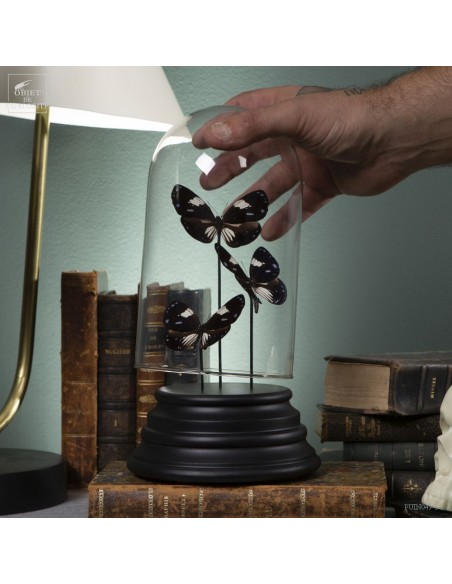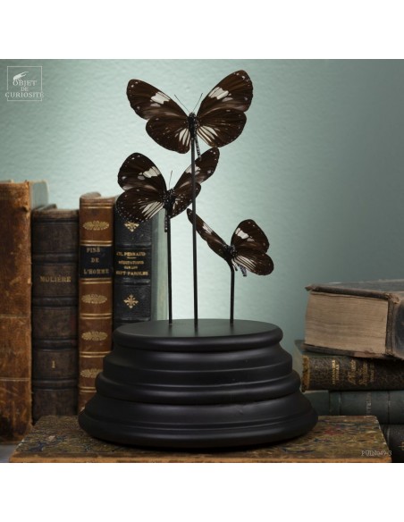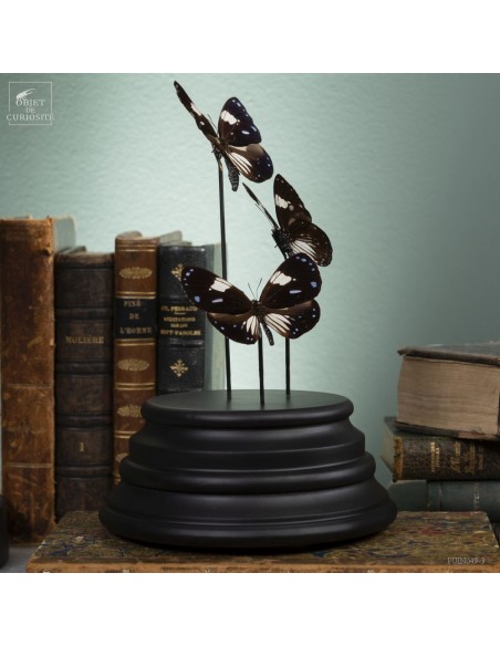 3 black and blue butterflies from Mongoumba under glass
