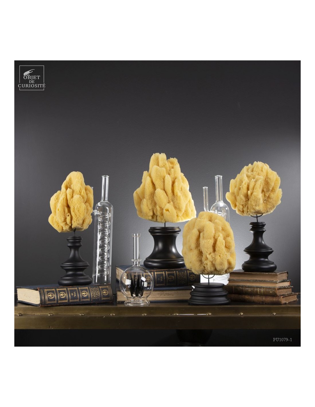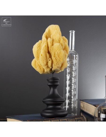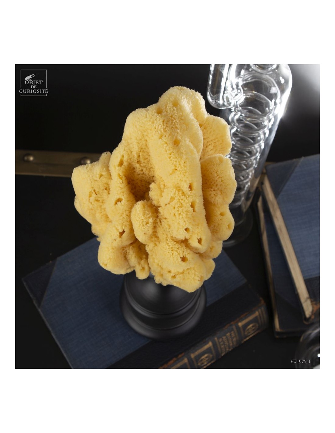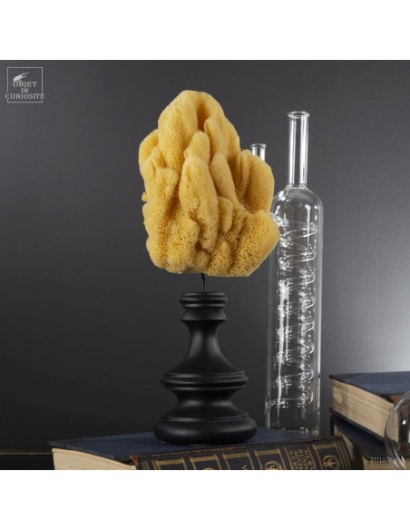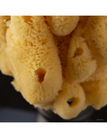 This marine animal from Florida (spongia barbara dura) feeds by filtering the water through the cavities of its body, built with a dense network of resistant and elastic fibers: spongin. It lives on coral reefs where it mixes with gorgonias and corals between 2 and 50 meters deep. Cleaning shrimps often inhabit its outer crevasses. These organisms are fixed in adulthood, but the mobility of the larvae facilitates its dissemination.