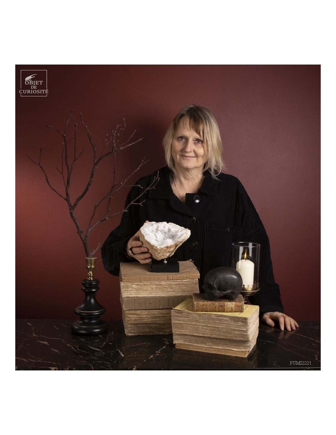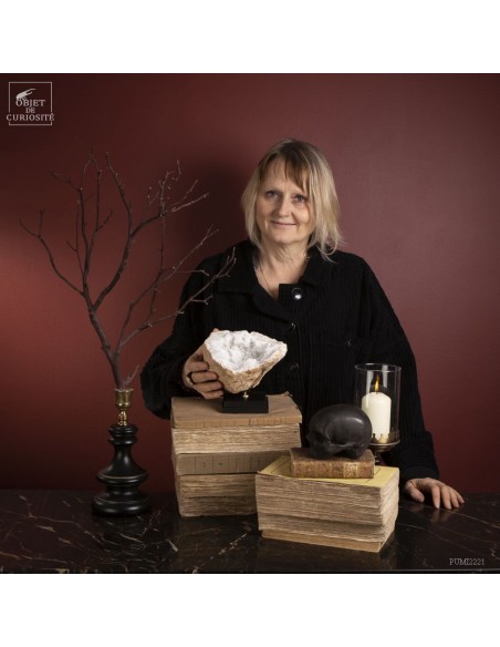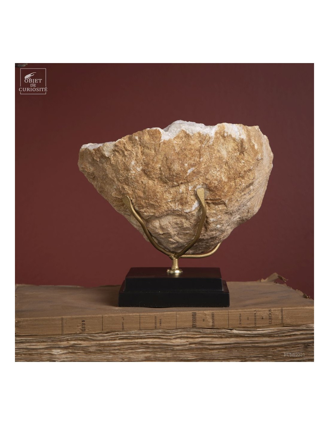 This natural stone from extreme South of Morocco (south of Laâyoune) looks like a simple stone, but inside reveals a full of sparkling natural crystals. A striking contrast with the very simple exterior of this mineral.