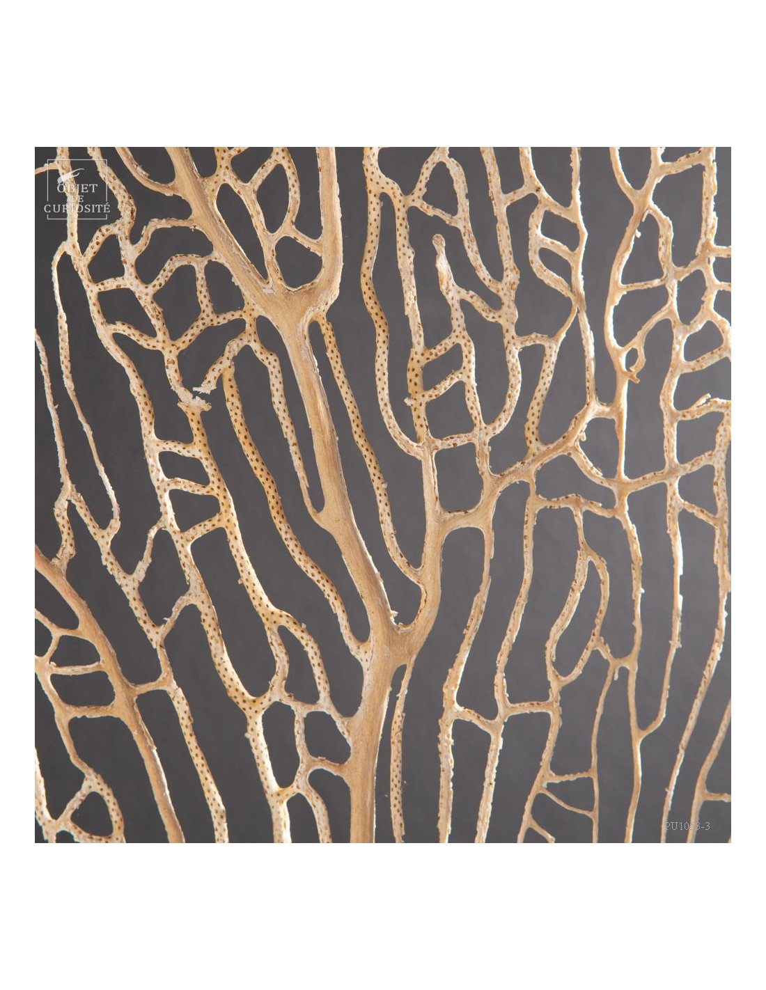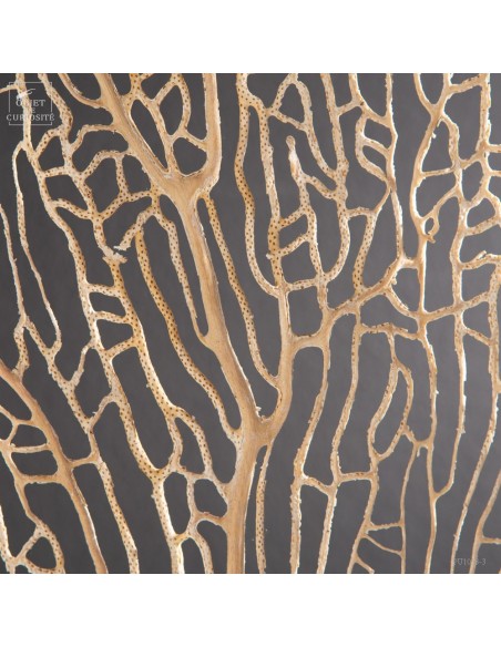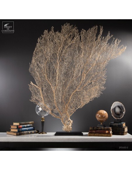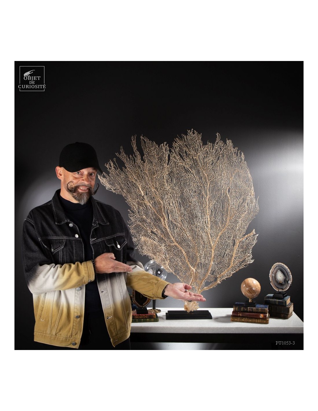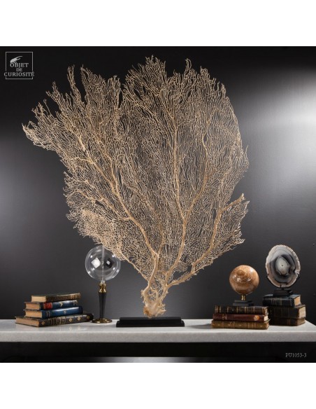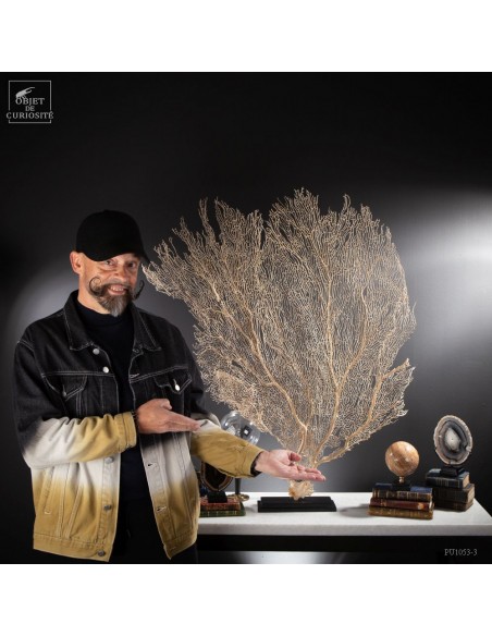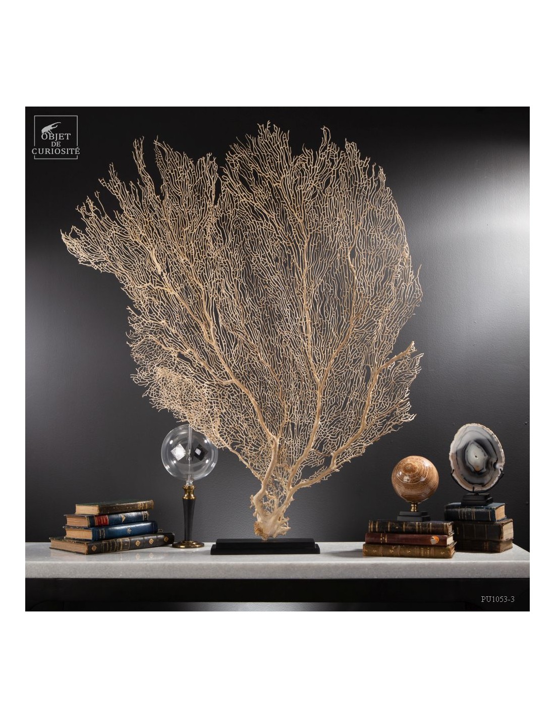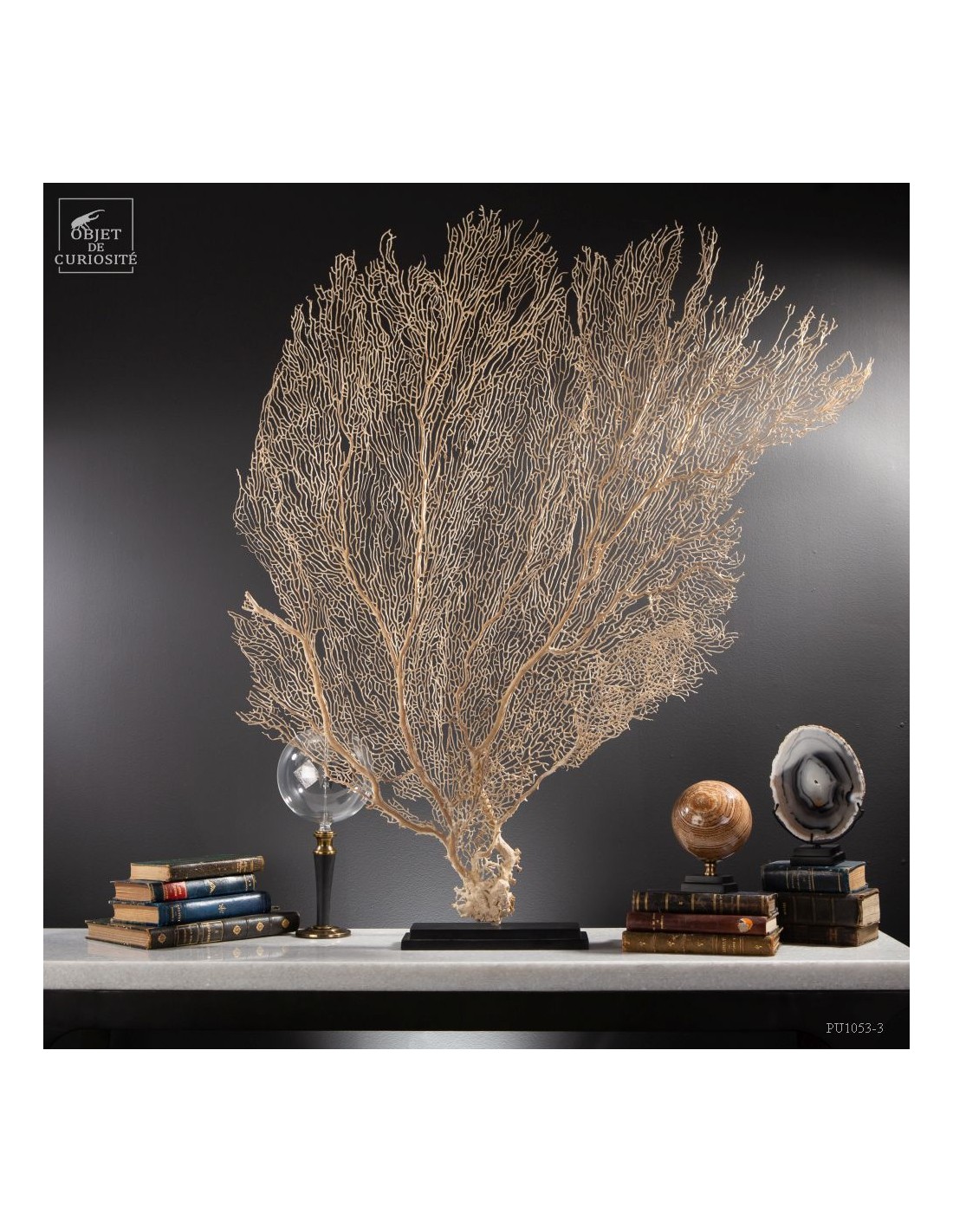 Off-white natural Gorgonia, over 1 meter high, on a black metal base. This beige skeleton look like lace. No wonder why they are called sea-fan: when they reach that size,they look like a screen. They can be a great divider in a room, on a console  and we also have a black spicky species than can reach the same size, also from Micronesia. Bringing some mistery if you look through it, without blocking the light.