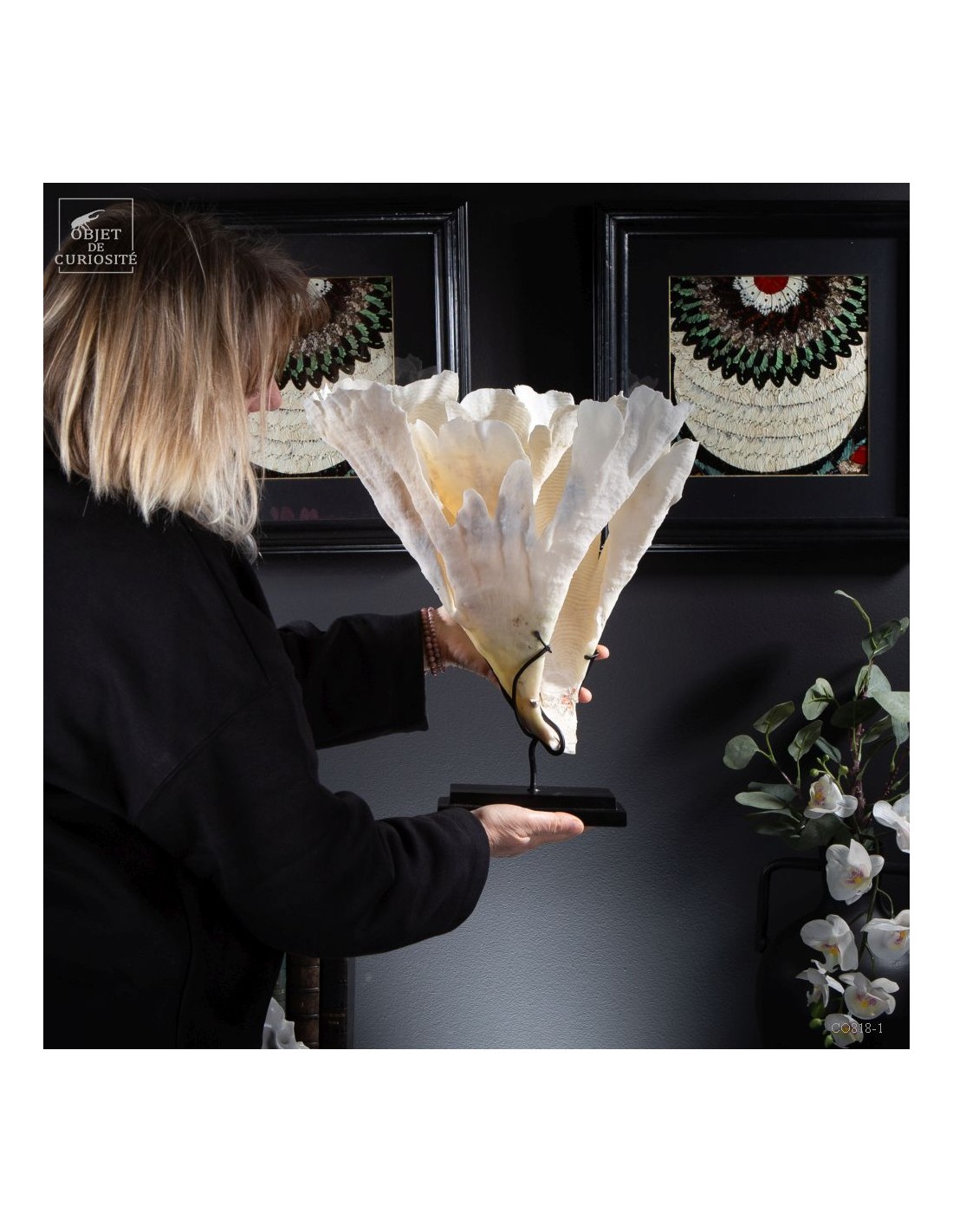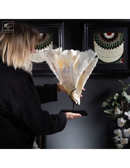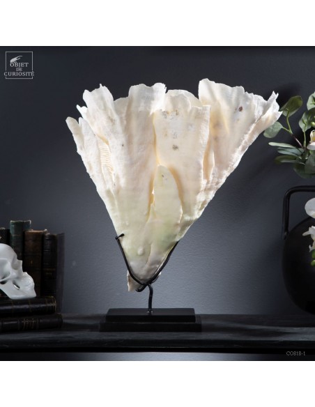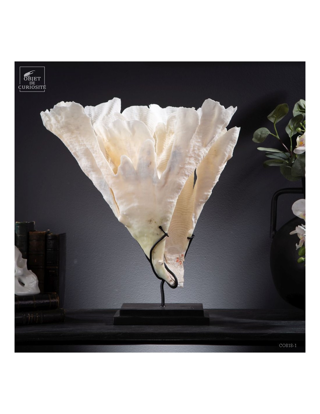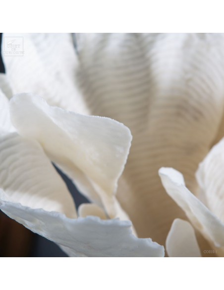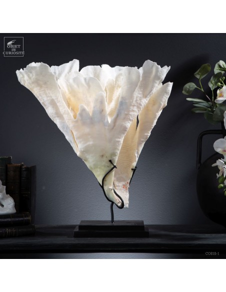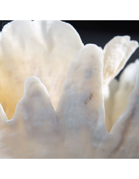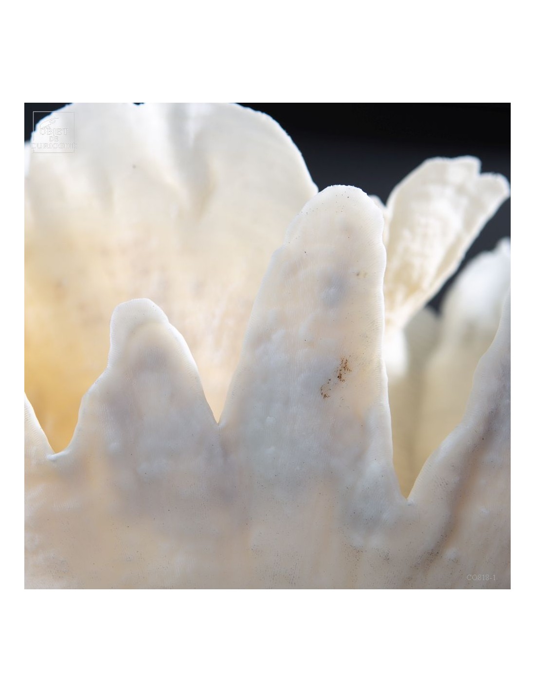 This coral is slightly scratchy, as its name suggests, but it forms above all beautiful jagged waves, sometimes resembling a miniature landscape of terraced rice fields. This one has a perfect shape of tree. In any case, this precious material will attract your eyes to the point of getting lost in these imaginary rice fields... delivered with its own CITES, since it is a species with regulated trade.