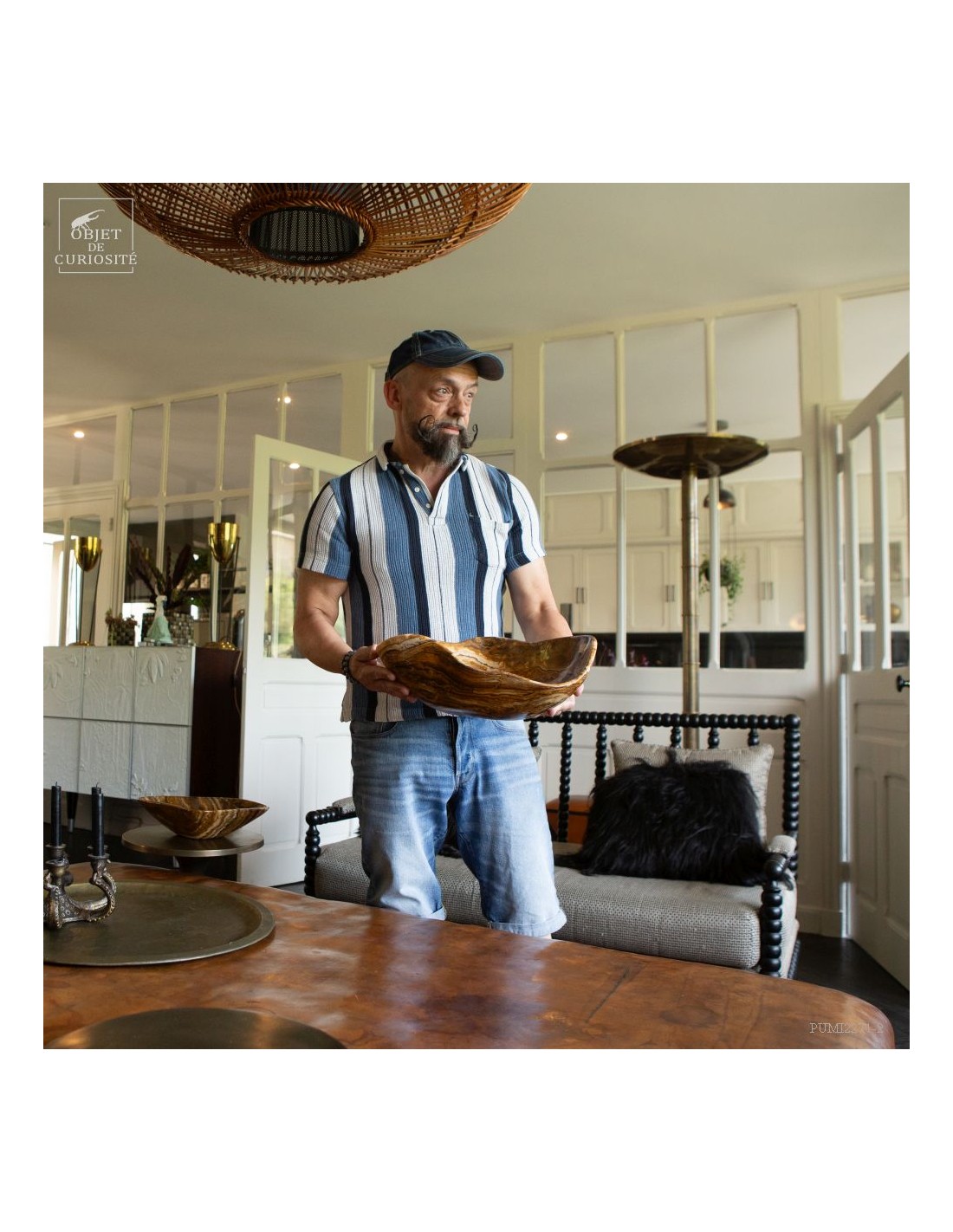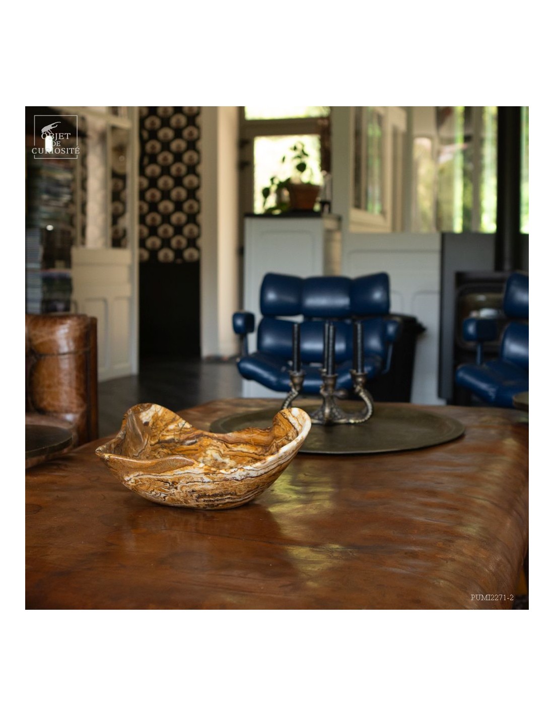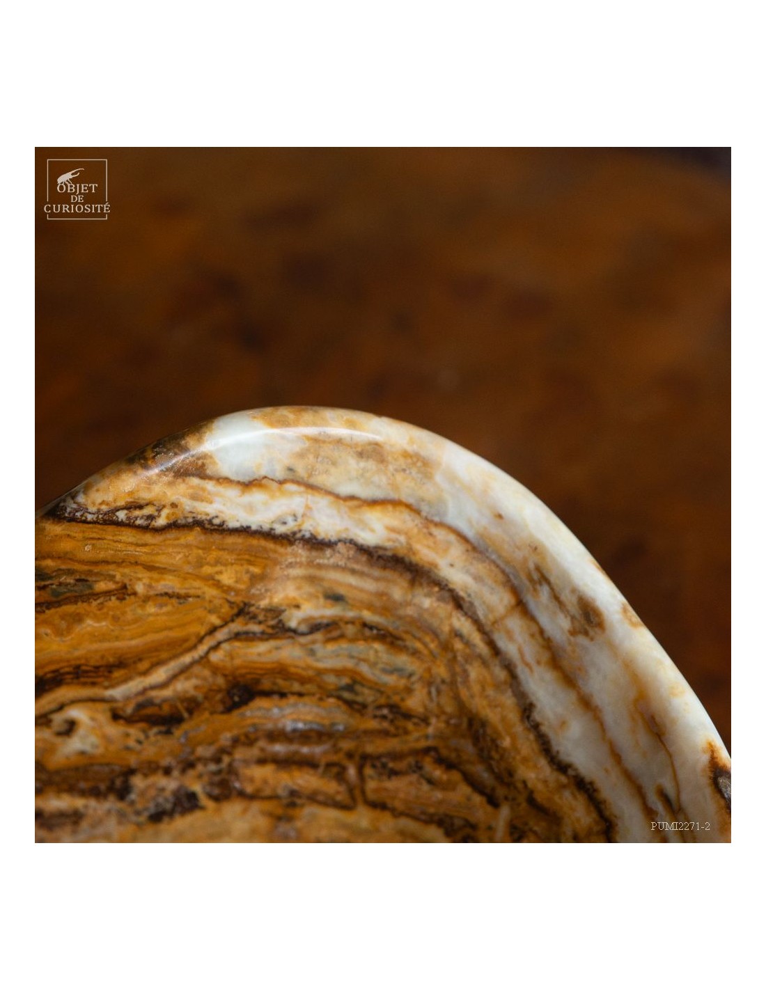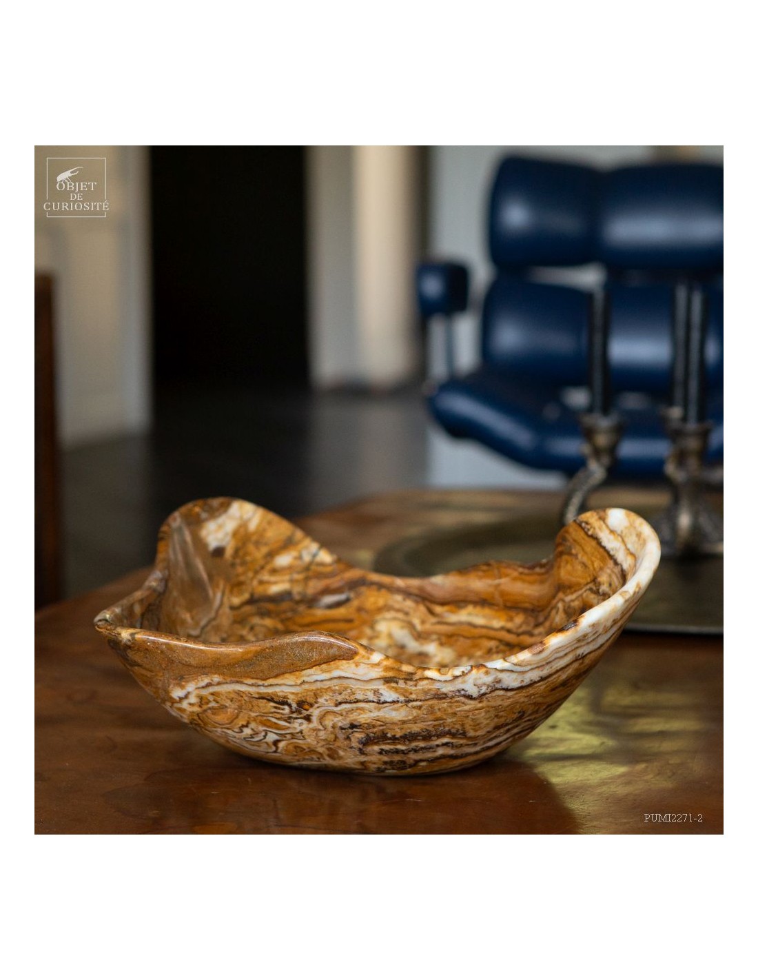 This free-form dish has a beautiful amber color. It comes from Morocco and is in Aragonite. At least we discovered it under that name in 2022. It is a variety of banded Calcite that takes exactly the colors of the famous Moroccan Aragonite which, iusually takes the shape iof tabular crystals that grow in all directions. A Moroccan craftsman from Sefrou was inspired by forms carved by Mexicans in Fluorite.