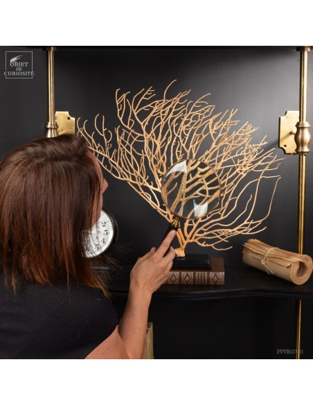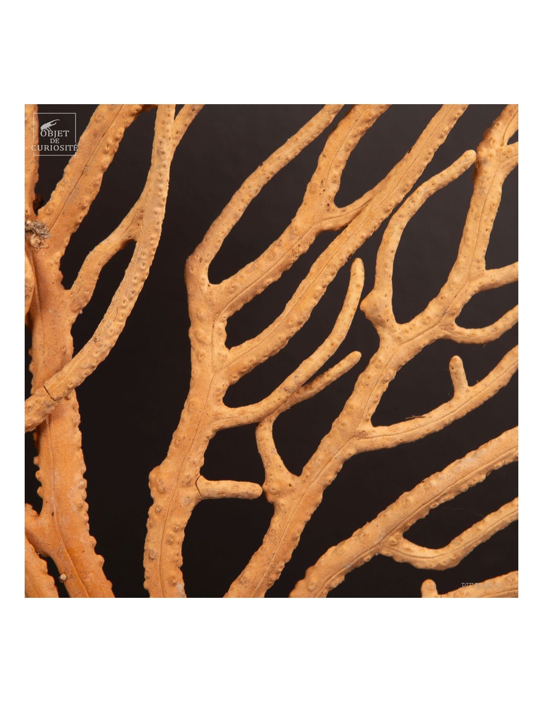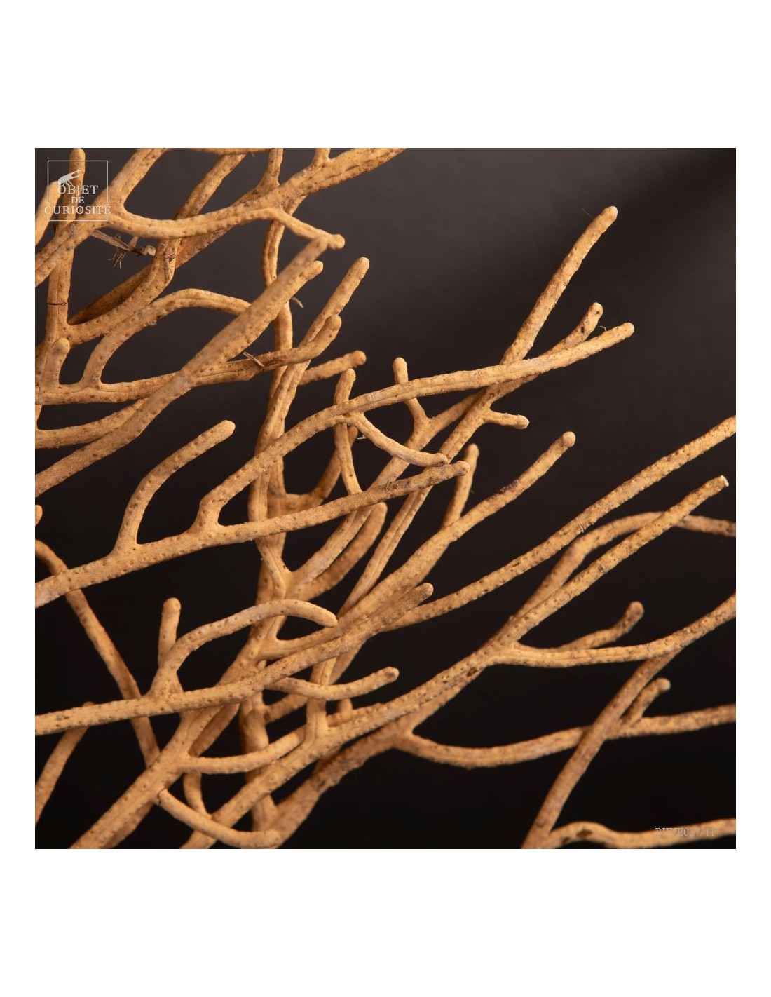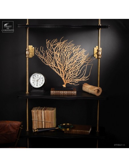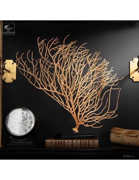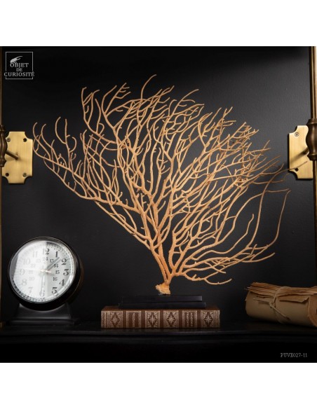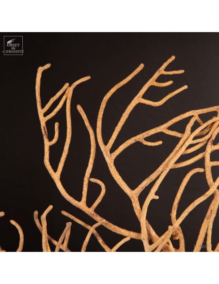 This Gorgonia is rather beige to pale yellowand rather "branched", it nevertheless belongs to the family of Leptogorgia, which includes the gorgonian "comb" and "gorgonians lyre". So more a part the family of "sea whips", made of long and sparsely branched sea fans. The family of gorgonias includes many varieties. This is Leptogorgia Alba on a black metal base.