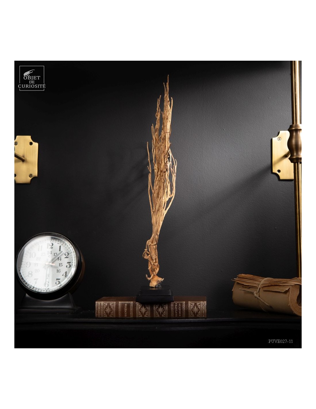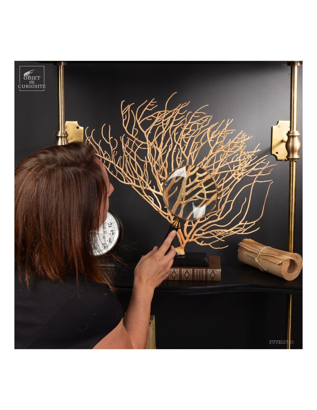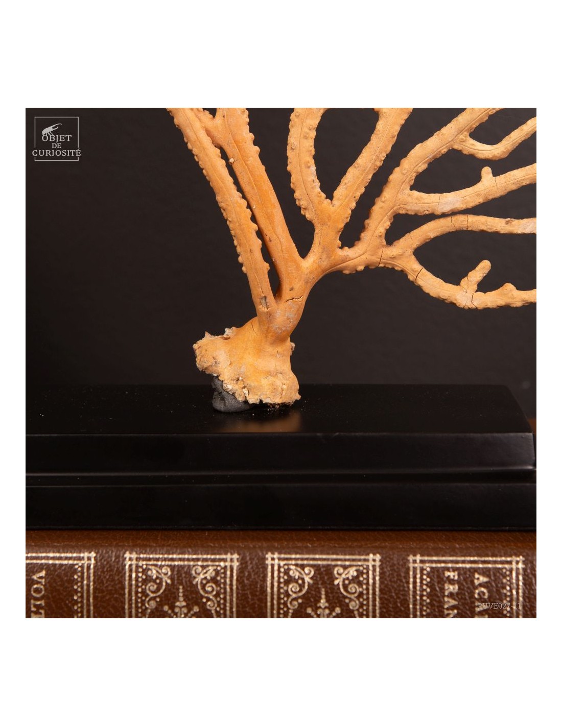 This Gorgonia is rather beige to pale yellowand rather "branched", it nevertheless belongs to the family of Leptogorgia, which includes the gorgonian "comb" and "gorgonians lyre". So more a part the family of "sea whips", made of long and sparsely branched sea fans. The family of gorgonias includes many varieties. This is Leptogorgia Alba on a black metal base.