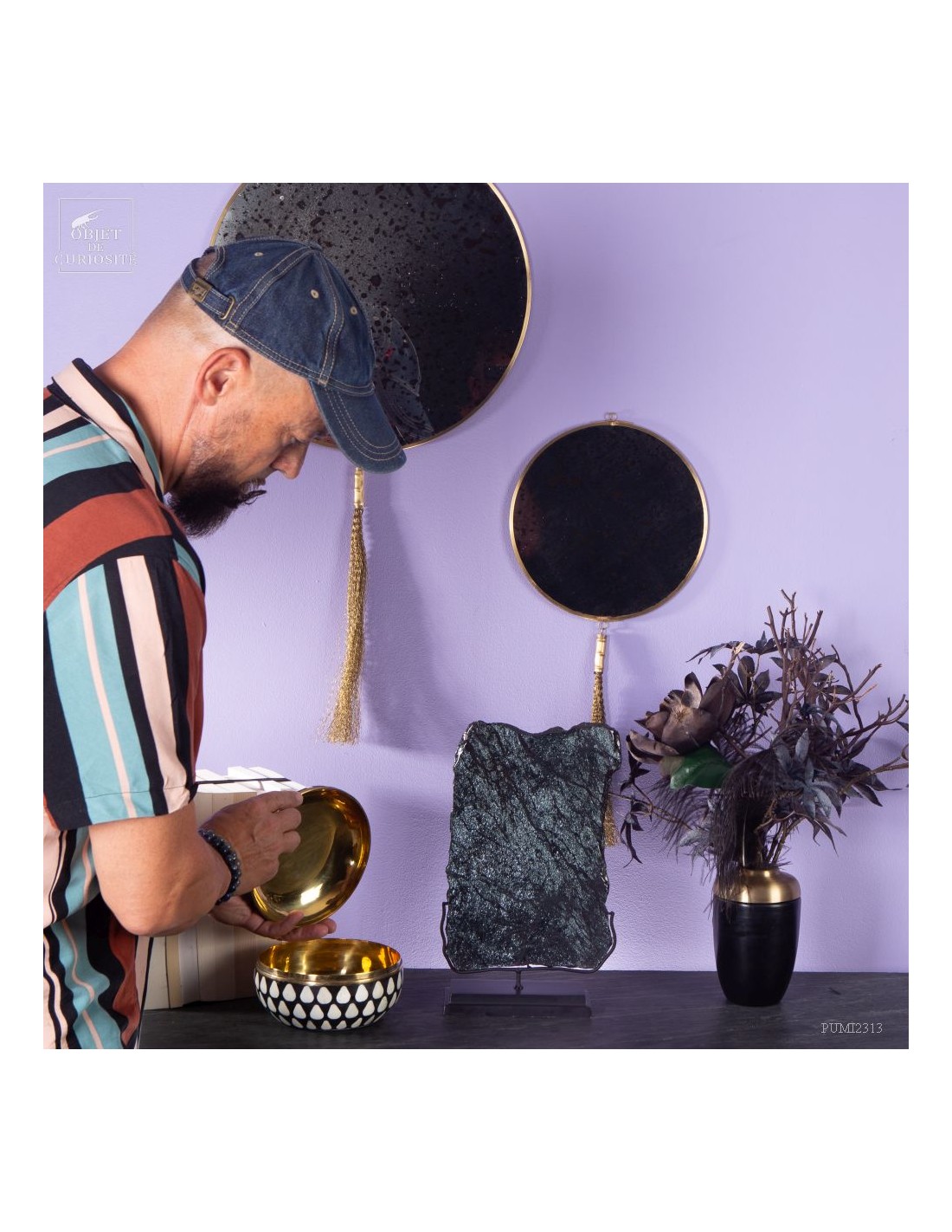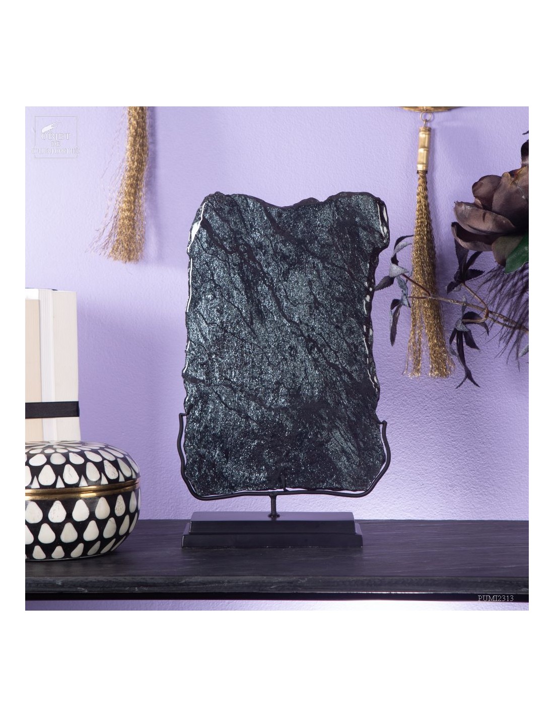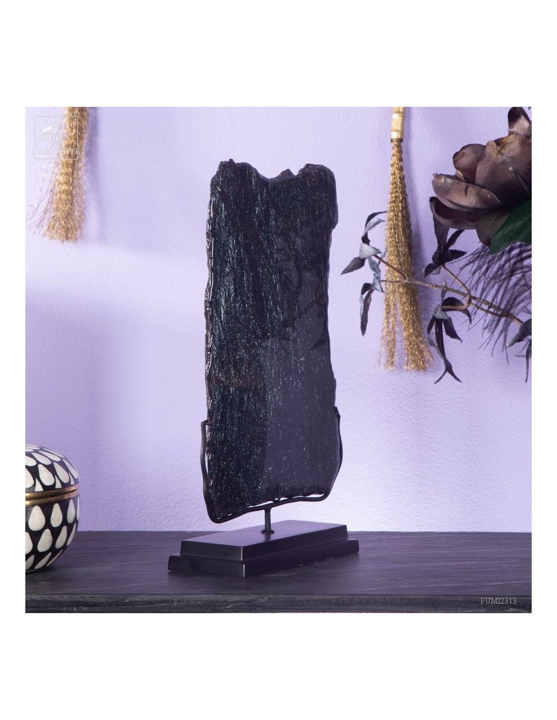 Specular hematite, sometimes called "Specularite" is a highly reflective, "glittery" form that consists of many small flakes of hematite. You could pretend it is the favourite stone of Unicorns...It formed in thin, stacked sheets resembling mica. It can actually be classified as hematite schists. This piece comes from the Republic mine in Michigan - US. It has been varnished to impress you, but even the back that remain natural will astonish you.