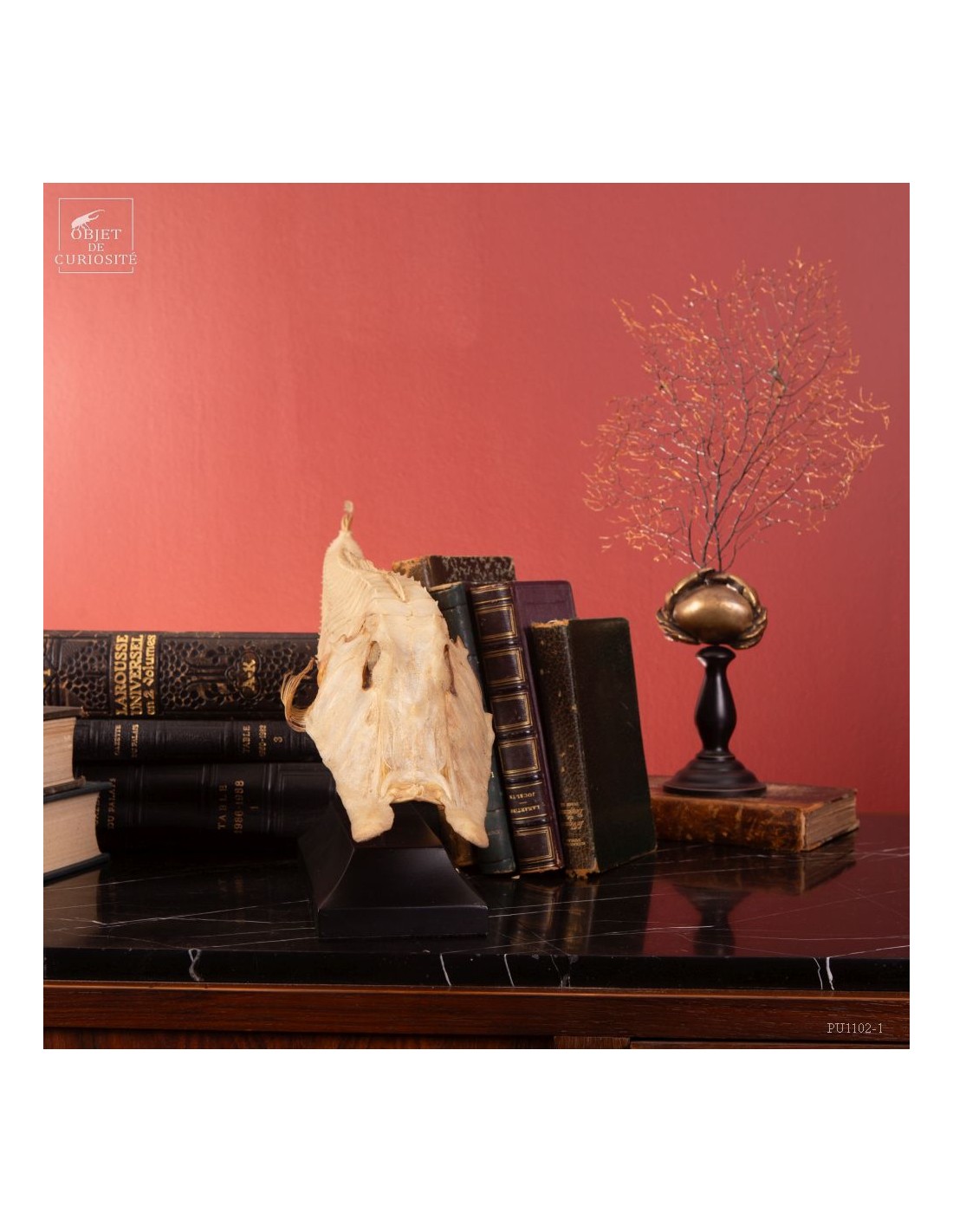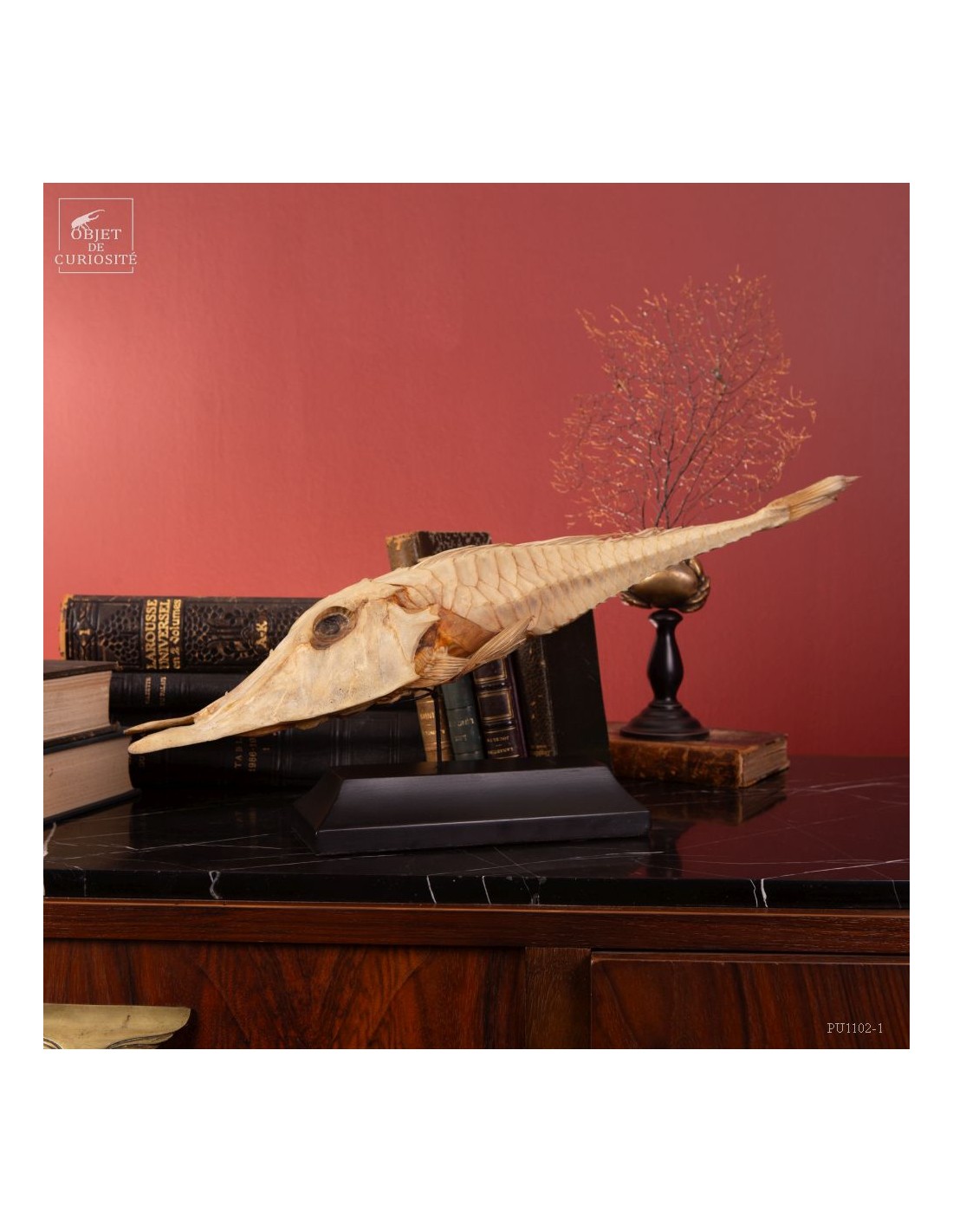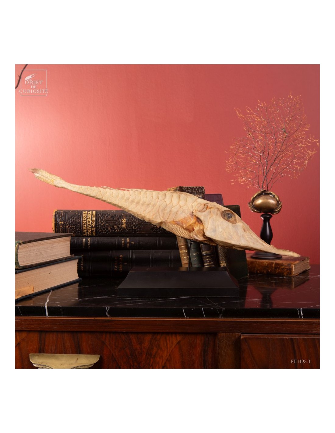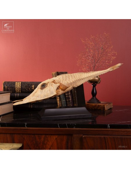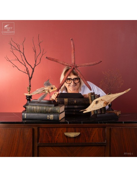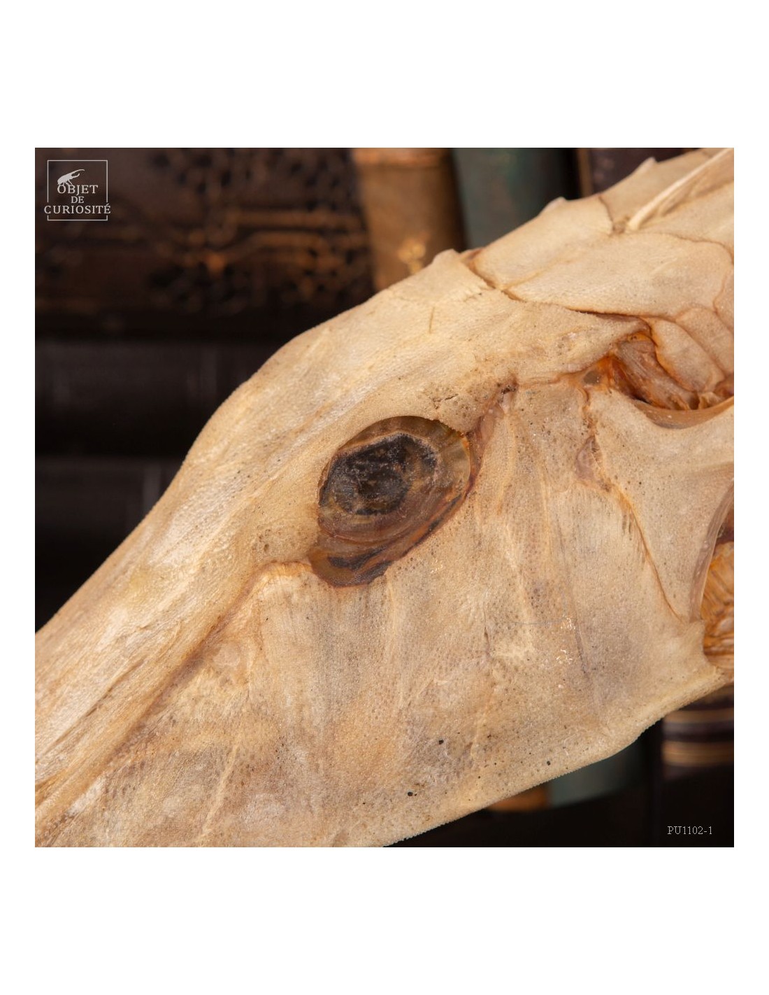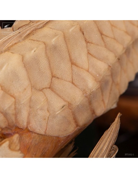 This fish is huge, looking almost like a crocodile: bony scales, eyes perched at the top of the skull: PERISTEDION sp. , the African armored searobin. At least it is larger than the bony searobins that can sometimes be found in the Mediterranean beyond 50 meters deep. It comes from the Philippines, and should therefore be a Peristedion orientale, but it was determined that their maximum size was 40cm, and this one exceeds 50cm. So would that be a record? That’s how far we are in our research.