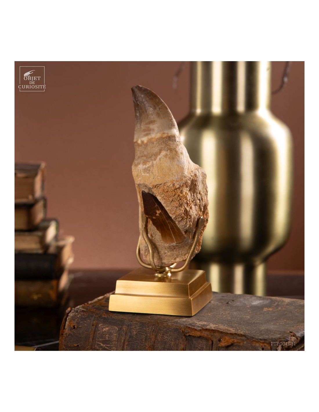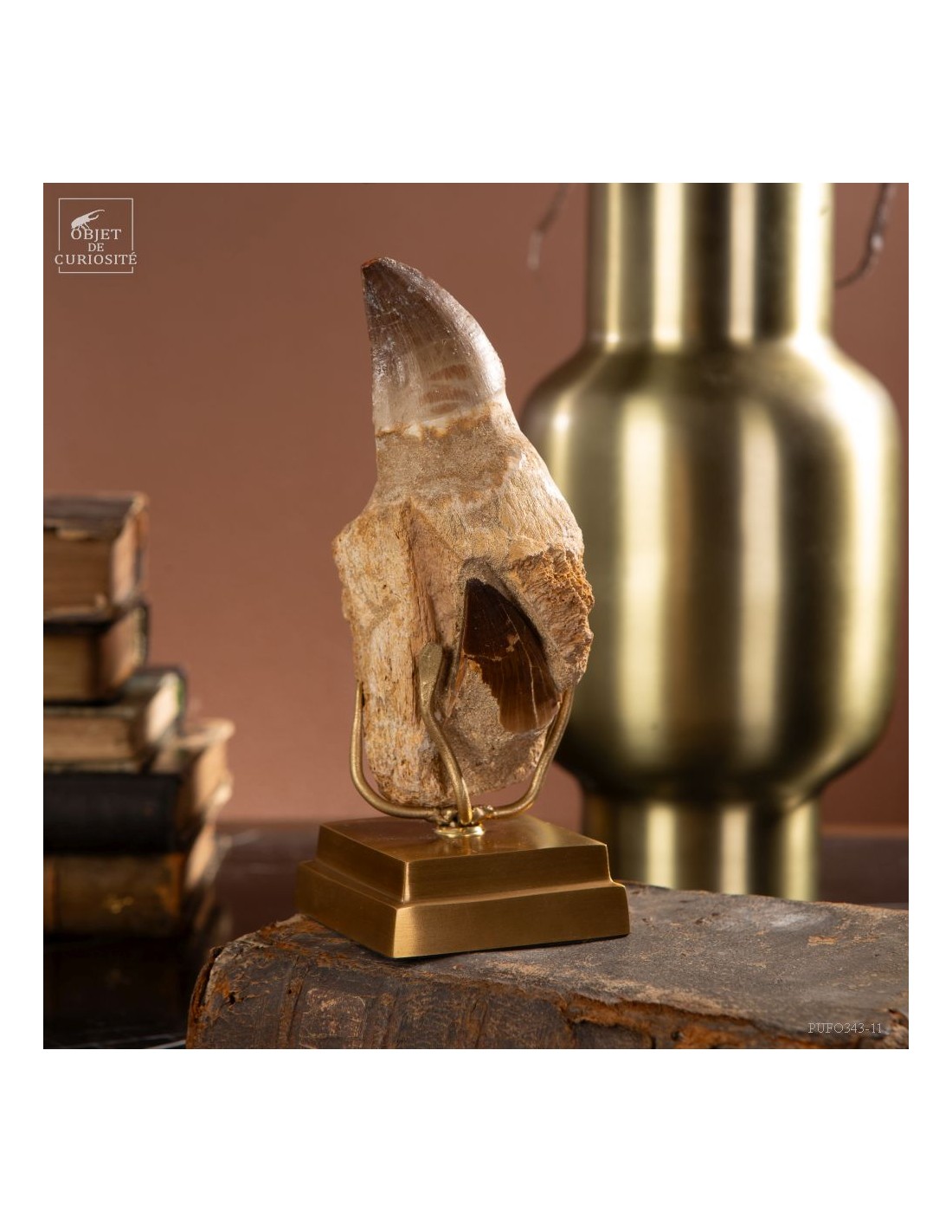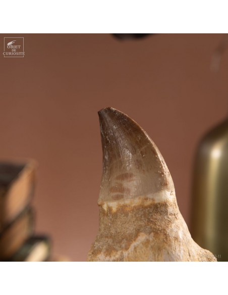The Mosasaurus was not related to sharks, but this giant marine reptile -17 meters long- had something in common with sharks: like sharks, being able to bite a pray was crucial to feed, so he had replacement tooth in stock in his jaw. This beautifull specimen fom the phosphate mine of Khouribga in Morocco have been perfectly prepared to discover that teeth waiting since 70 million years to hatch!