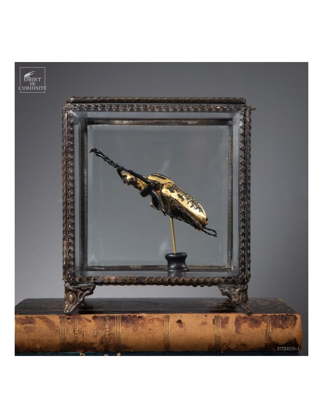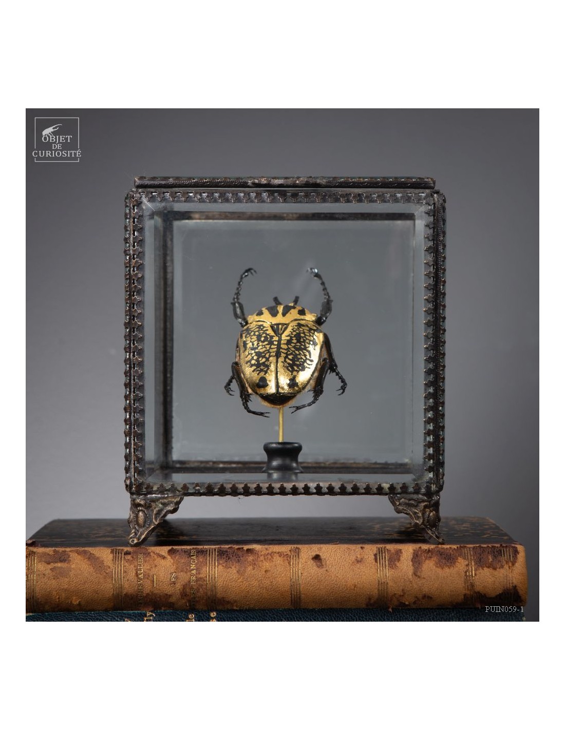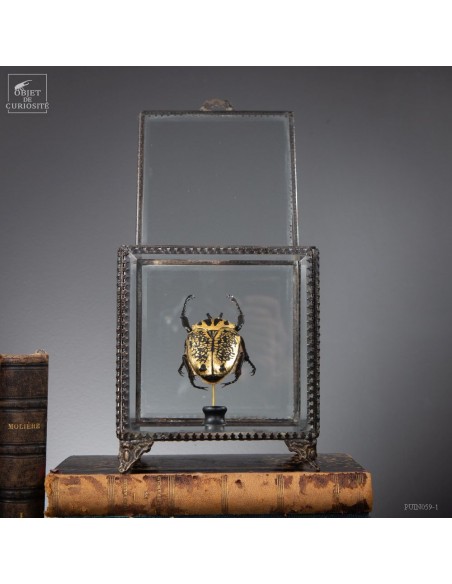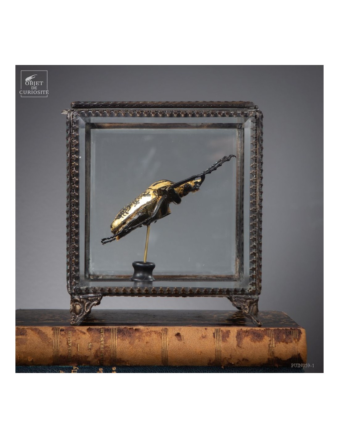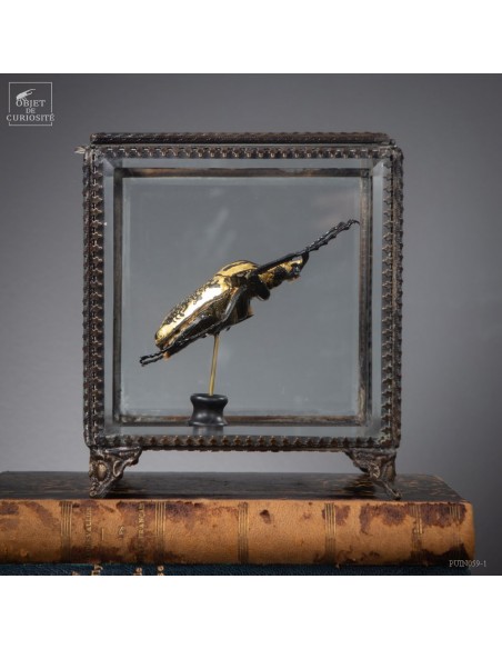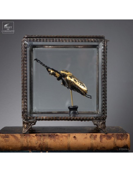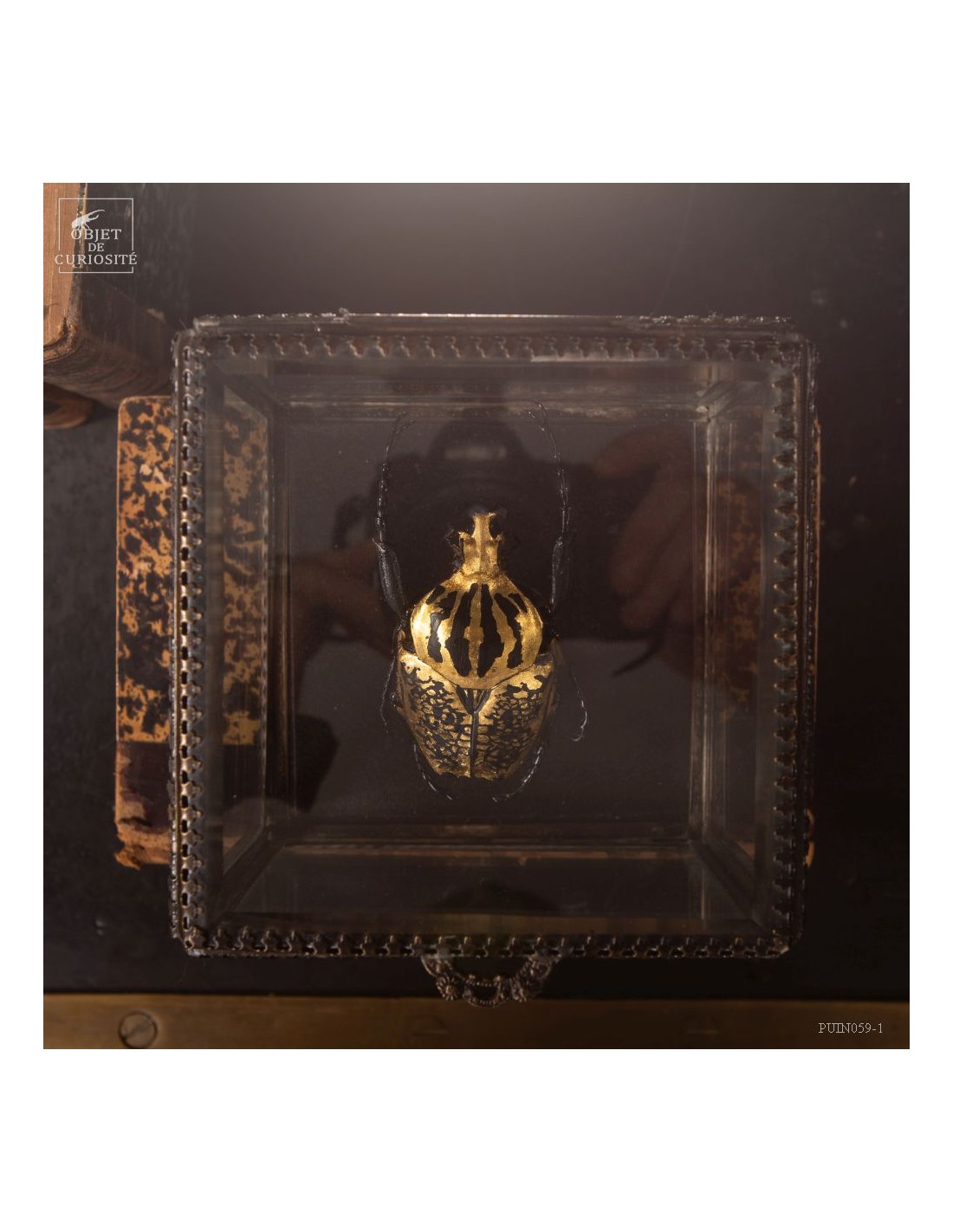 Real Goliathus Orientalis from Congo, the heaviest species of beetles of the world! But with a special treatment: 24K gold leaf applied on the clear parts of its exoskeleton (elytra). The result is a precious natural beetle from Africa , with a little luxury touch made in France...