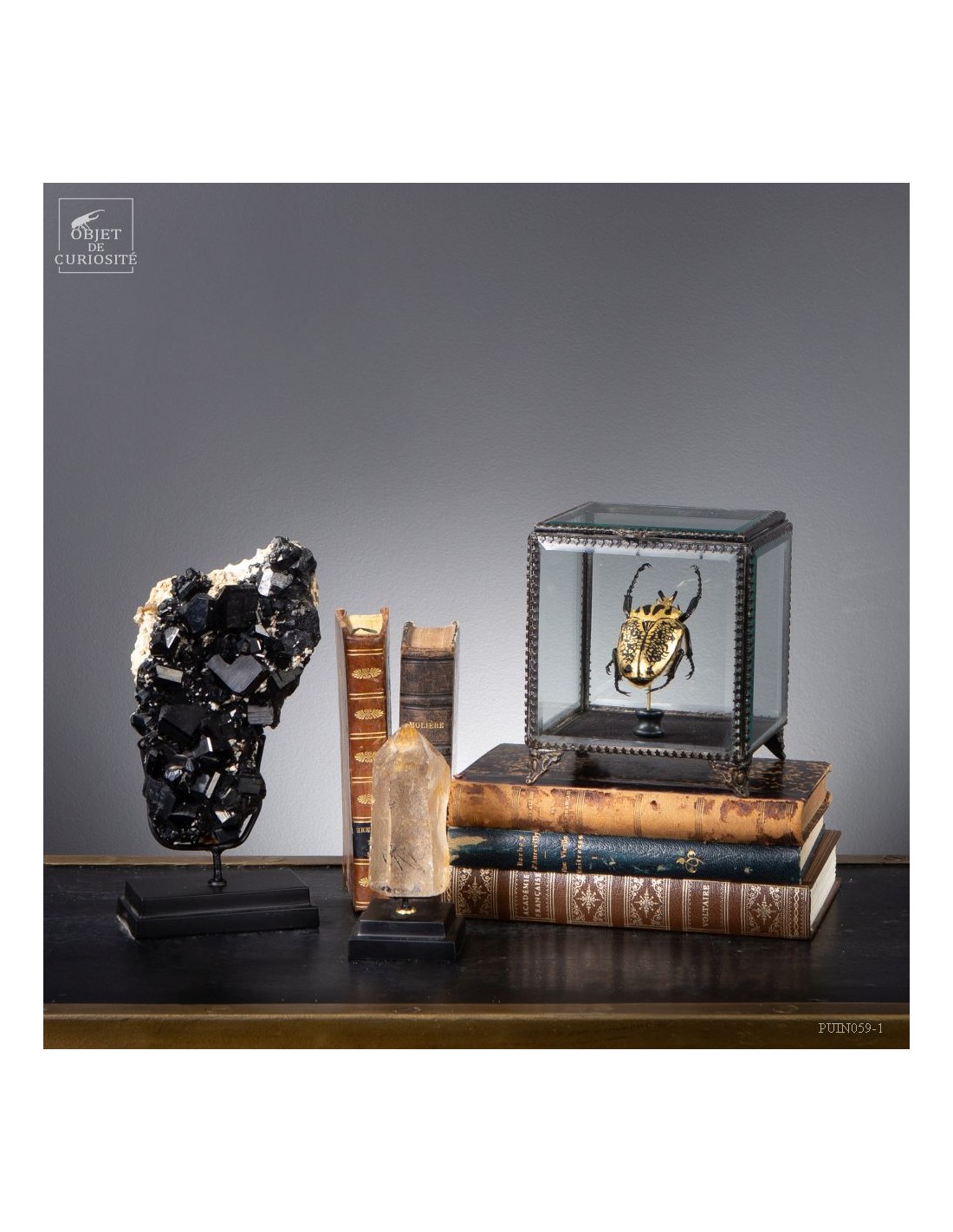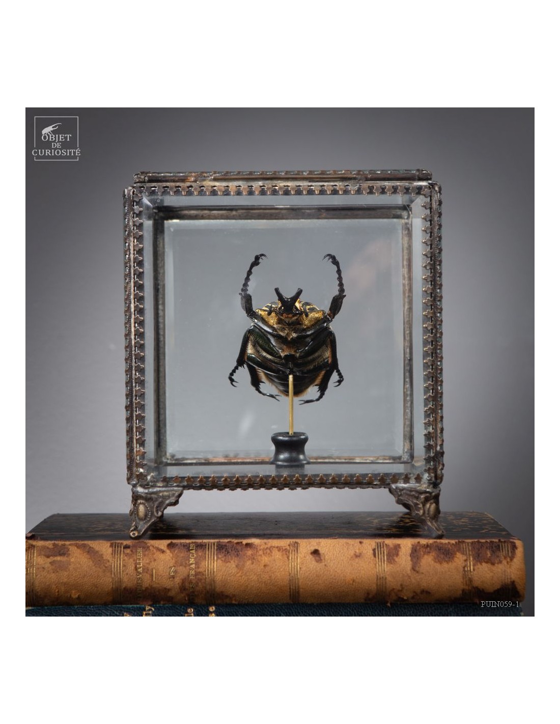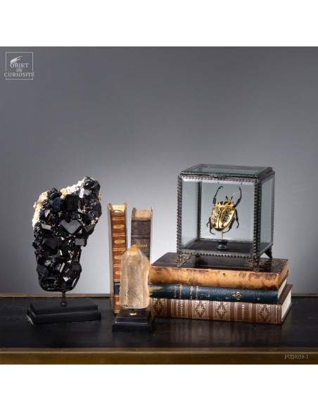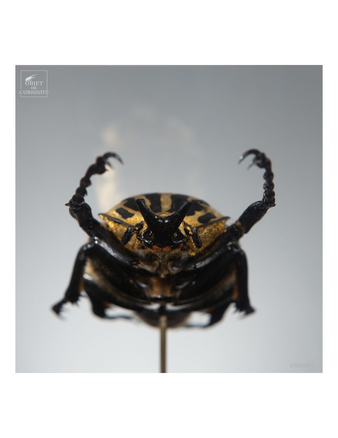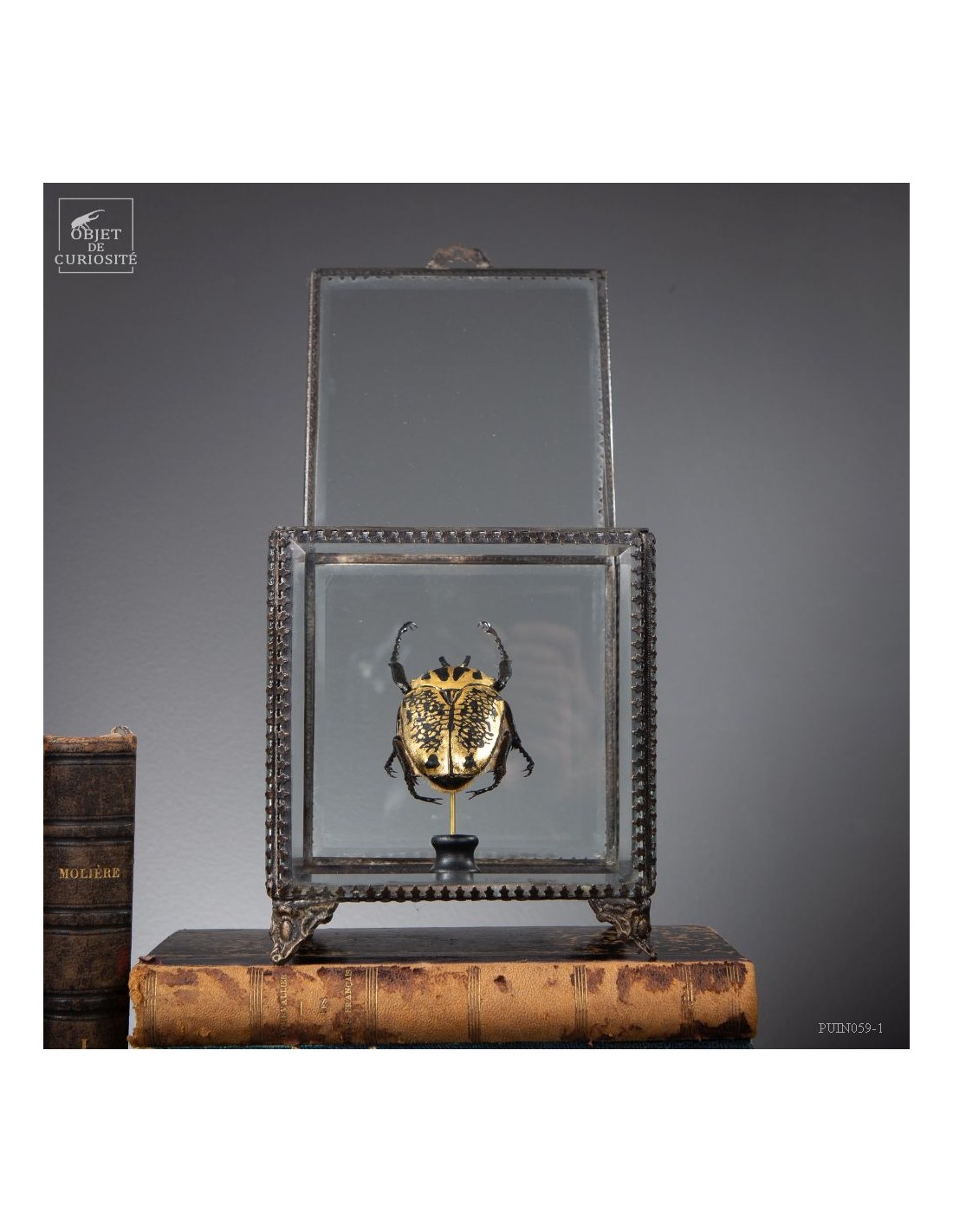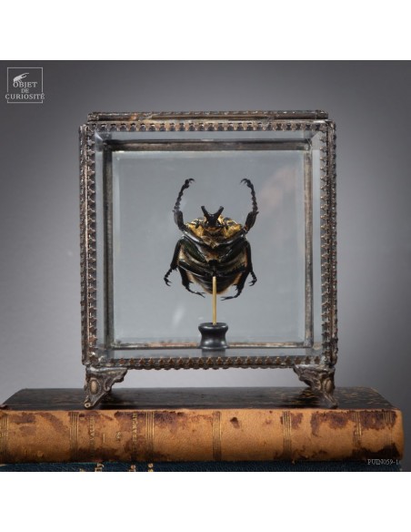Real Goliathus Orientalis from Congo, the heaviest species of beetles of the world! But with a special treatment: 24K gold leaf applied on the clear parts of its exoskeleton (elytra). The result is a precious natural beetle from Africa , with a little luxury touch made in France...