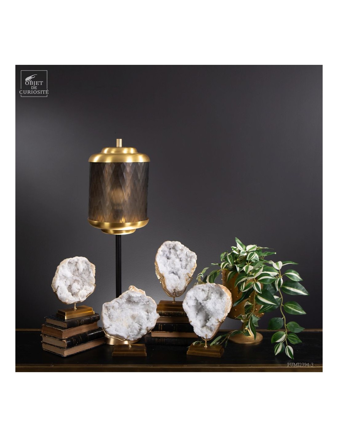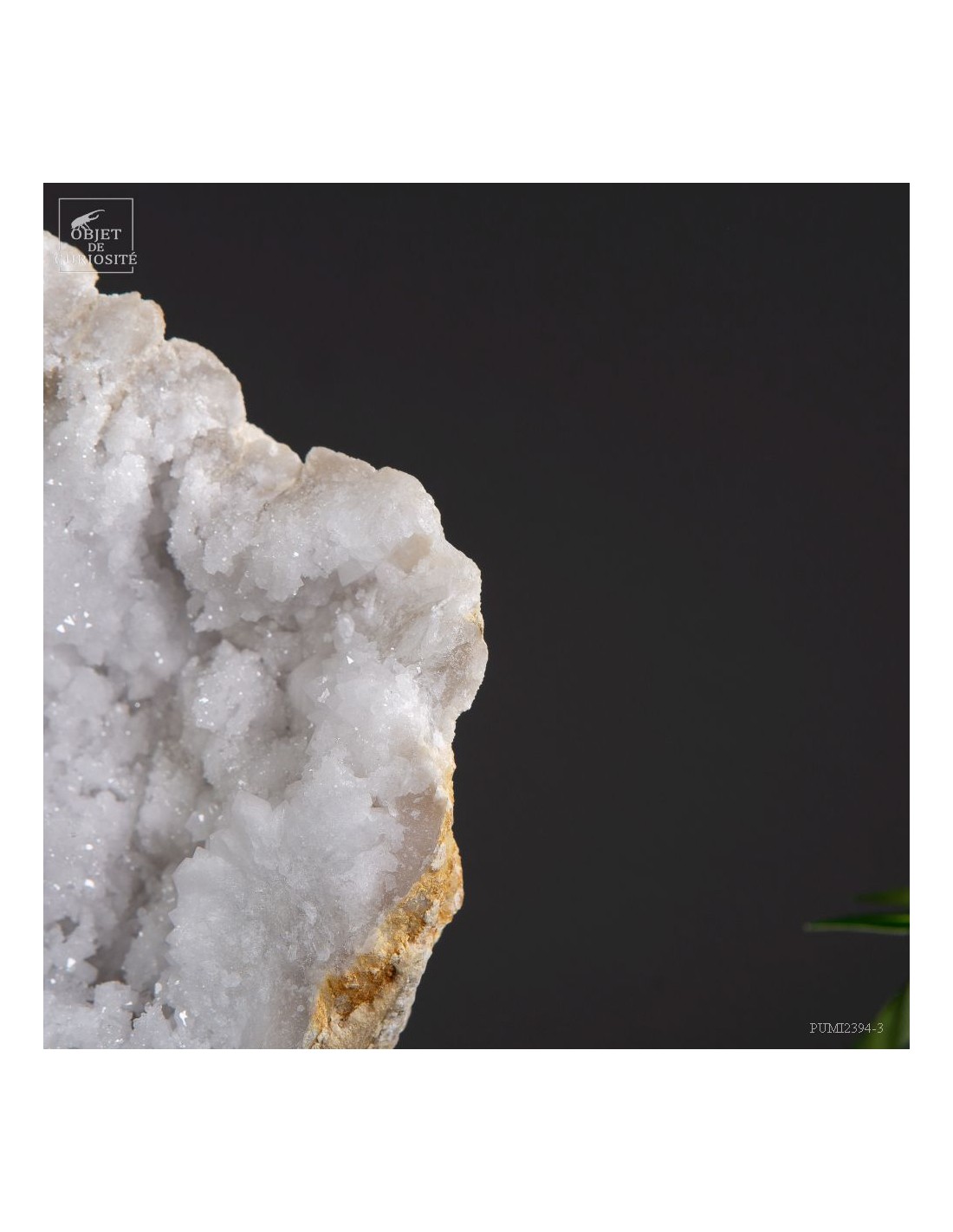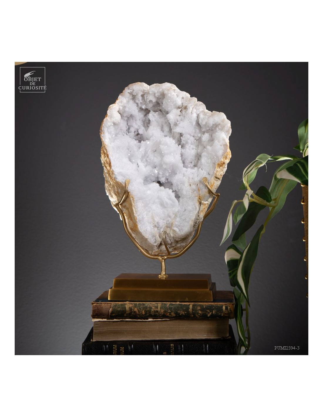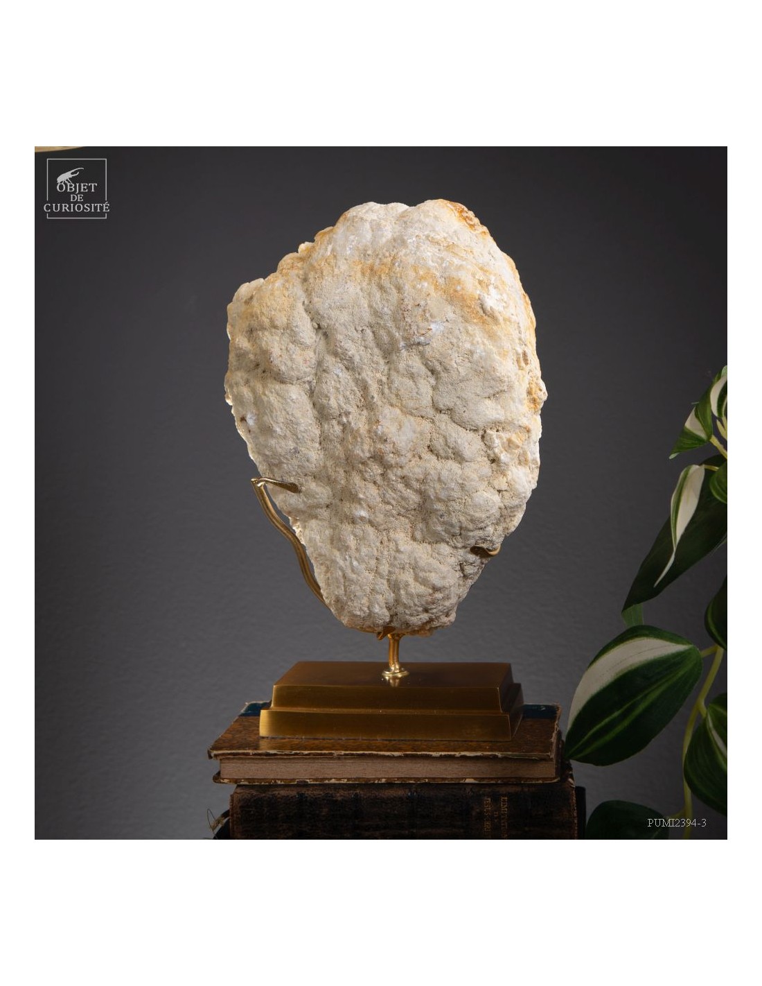 This mineral is a white quartz geode from the extreme south of Morocco - near Laâyoune - and which looks like a simple ball of natural stone, but inside reveals a geode full of sparkling natural crystals. A striking contrast with the very simple exterior of this mineral. In the group photo, it’s on the top right, in the hands of Lilau.