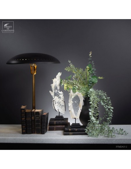 This complete crystal of Gypsum is French, and comes from the village with the evocative name of Caress in the southwest. The very high transparency of this crystal is the signature of the most beautiful Gypsum found in this mine. As it is a floating crystal, it was not connected to a mother-rock by any point and therefore shows perfect terminations. And this one has more complex tips than any we’ve seen in this mine. On a black base.