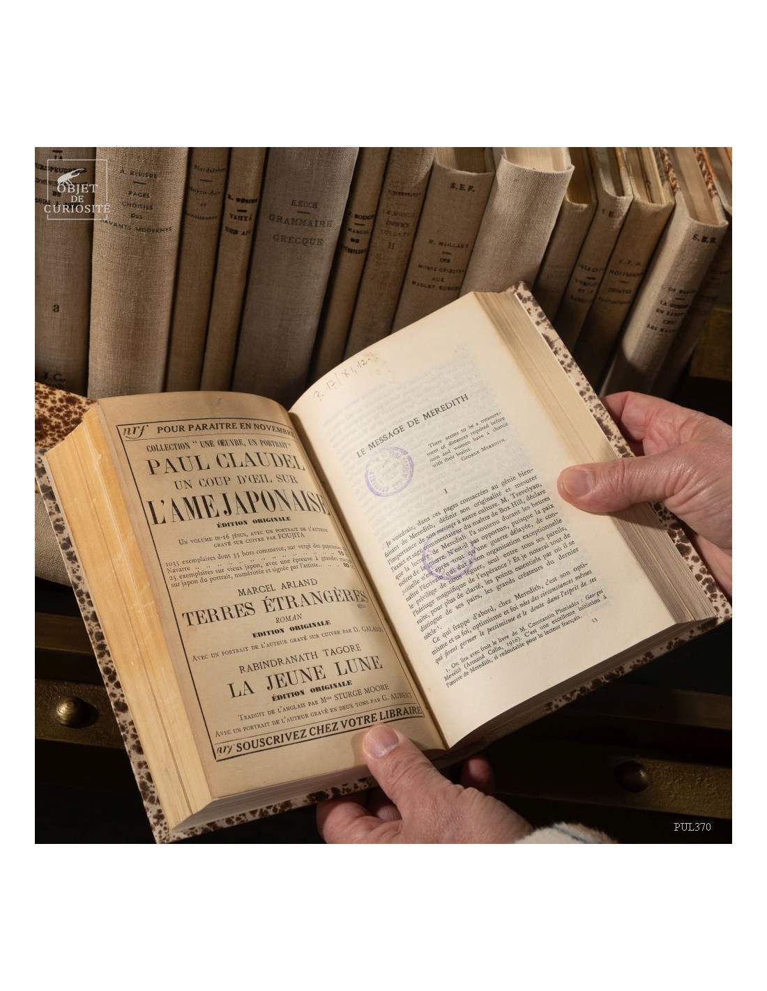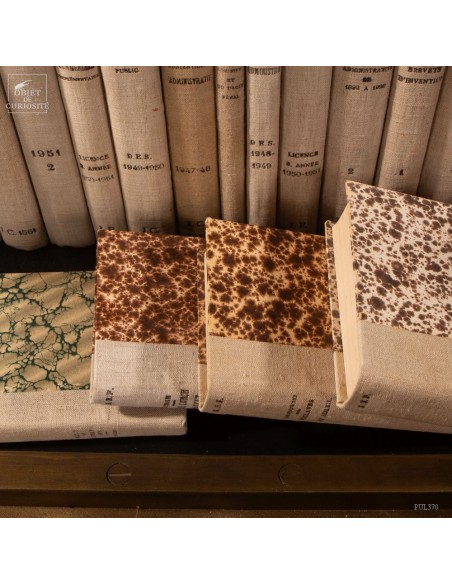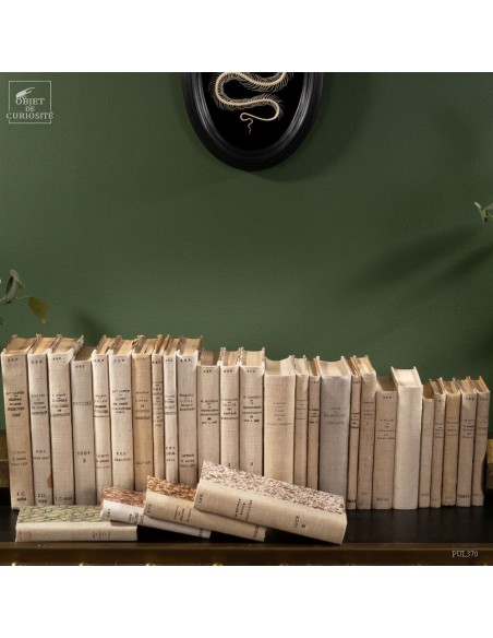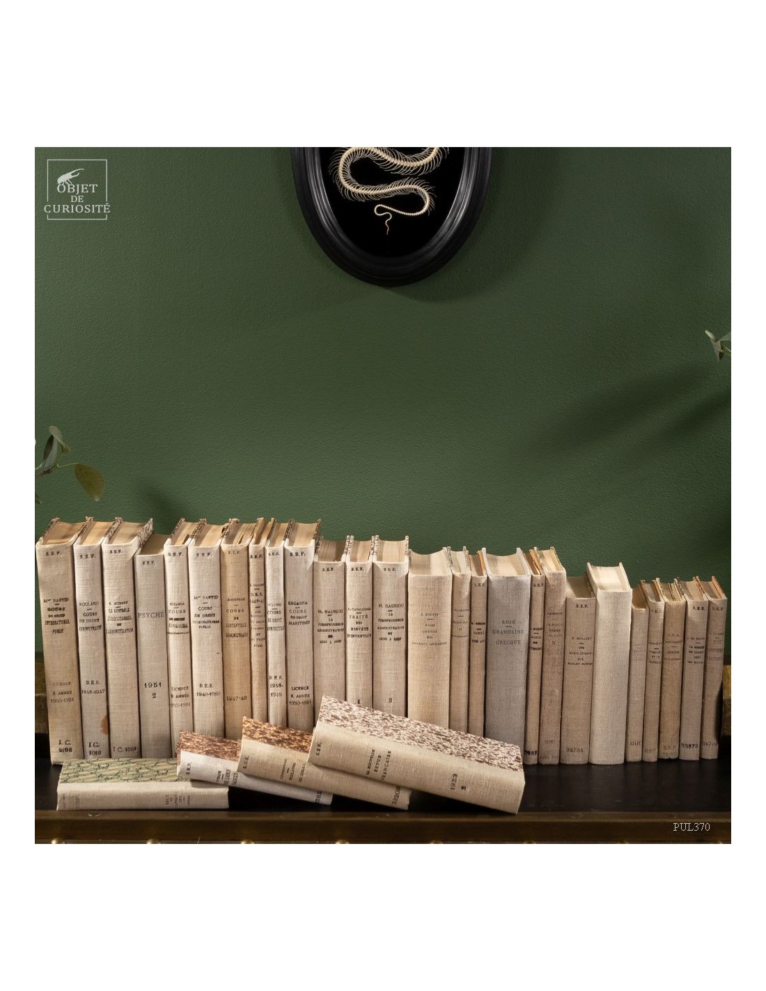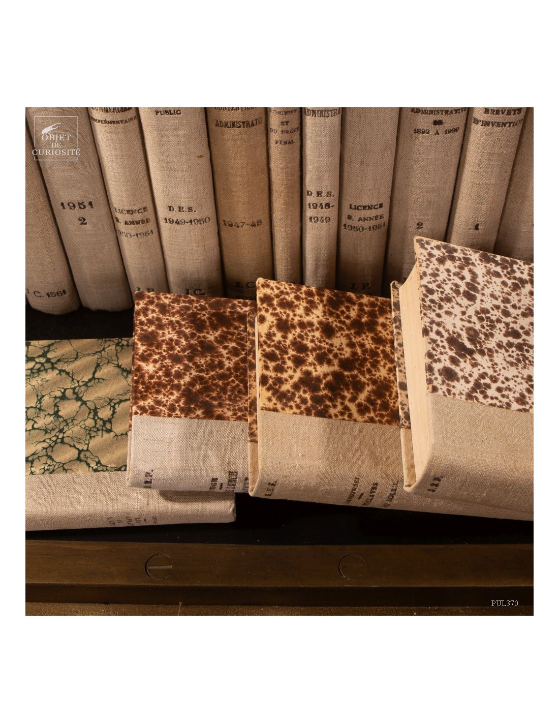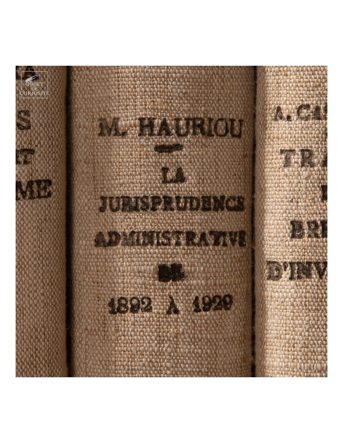 Covering the books with this beige canvas was the signature of the library of a sanatorium for students in the 1930s. This library was originally made up of donations from the Sorbonne University in Paris (some books bear the seal of the Ministry of the Interior stipulating a donation by the government in 1936). A library composed of novels but also legal works. 30 volumes.